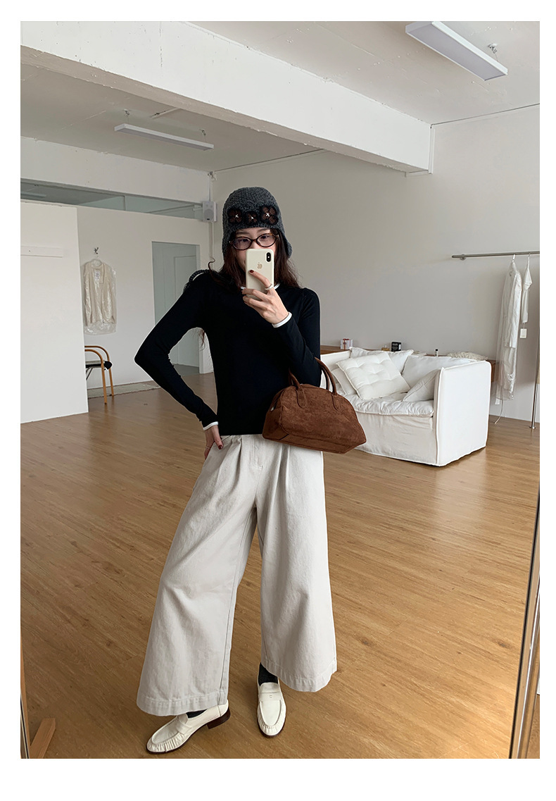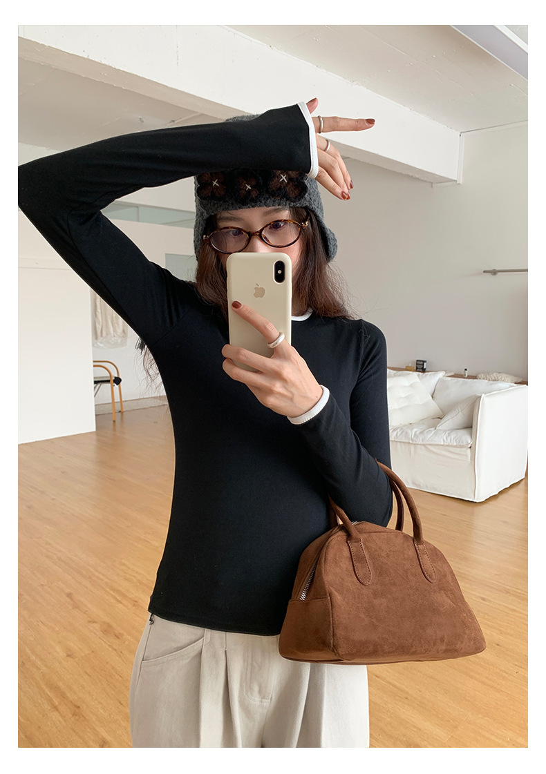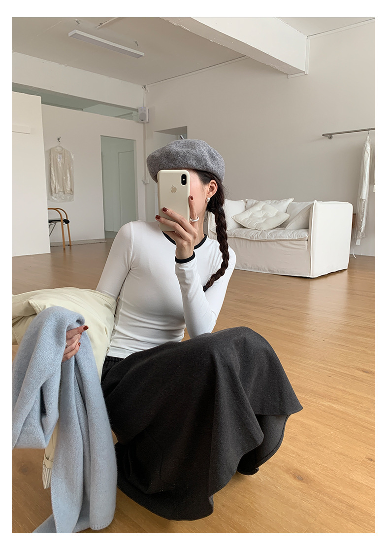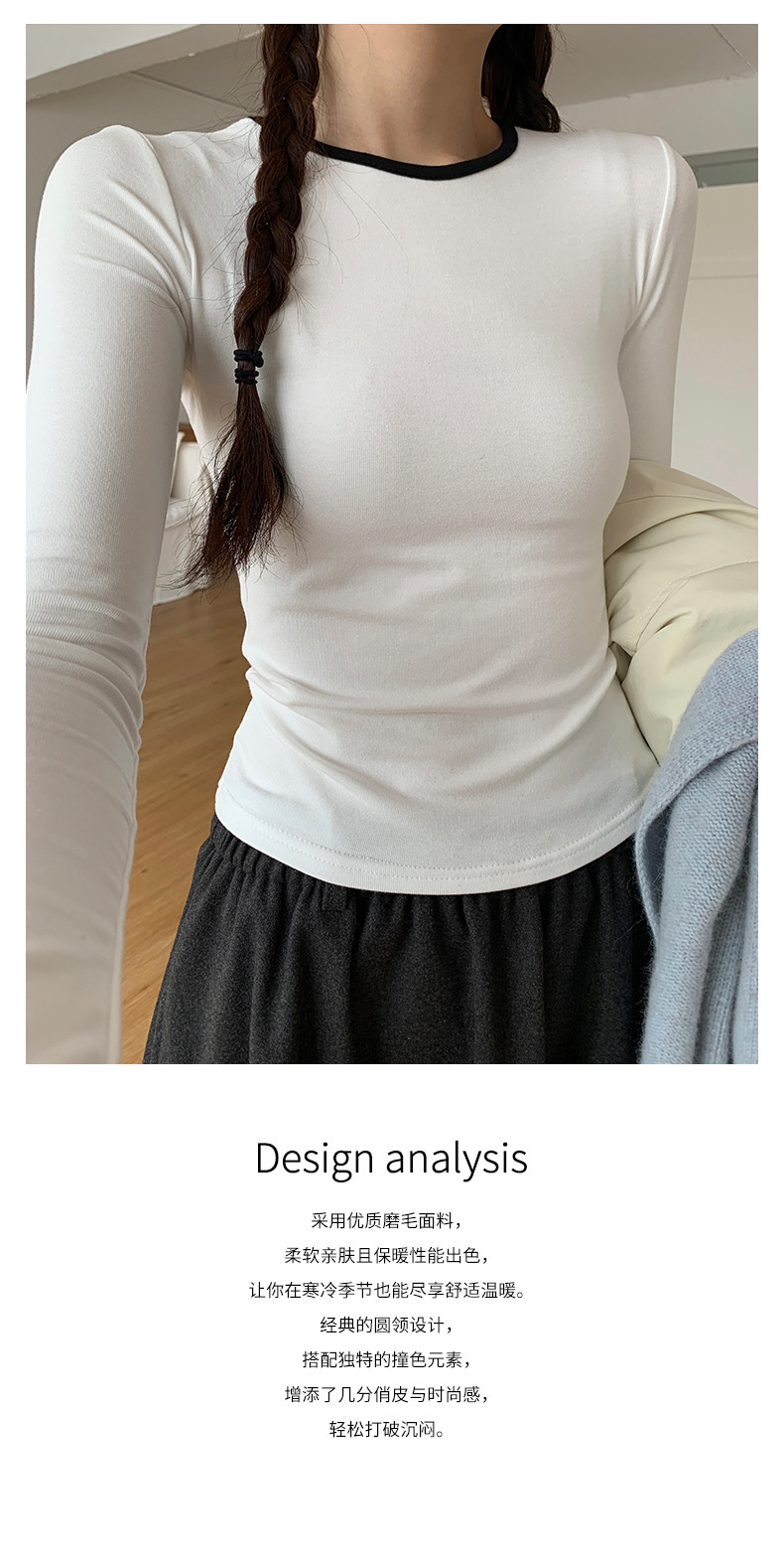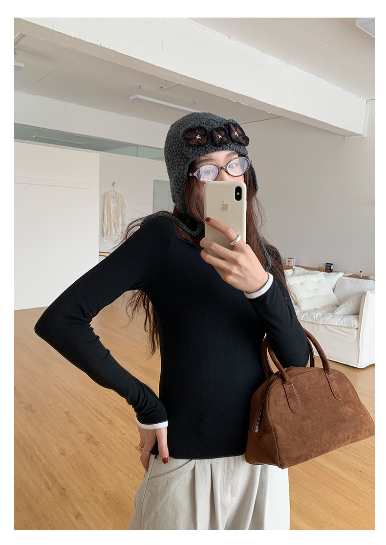 *o-ha-you*【FHZH1EE5041080】韓系磨毛圓領撞色內搭打底衫秋冬修身休閒長袖T恤上衣-2色