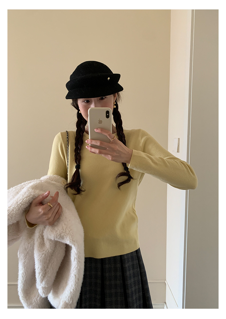 *o-ha-you*【FHZH1EE5041098】簡約5色雙層領毛針織內搭打底衫女冬季修身長袖T卹上衣