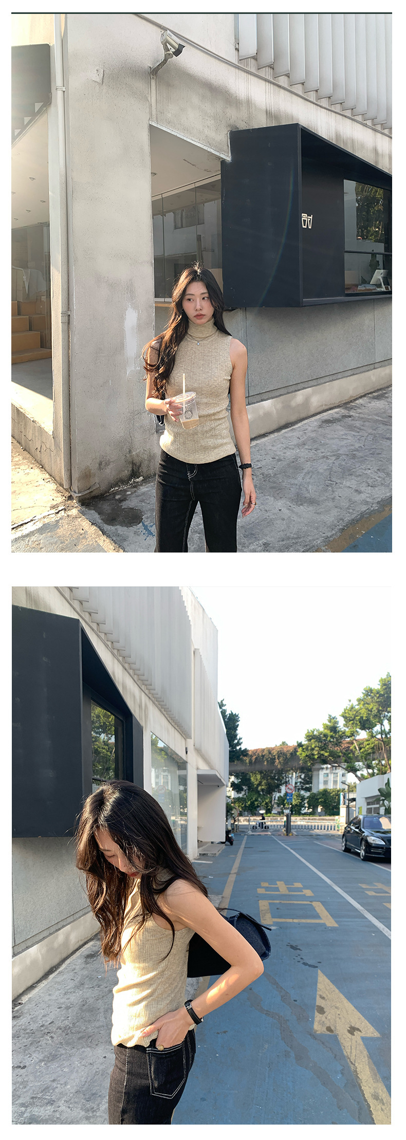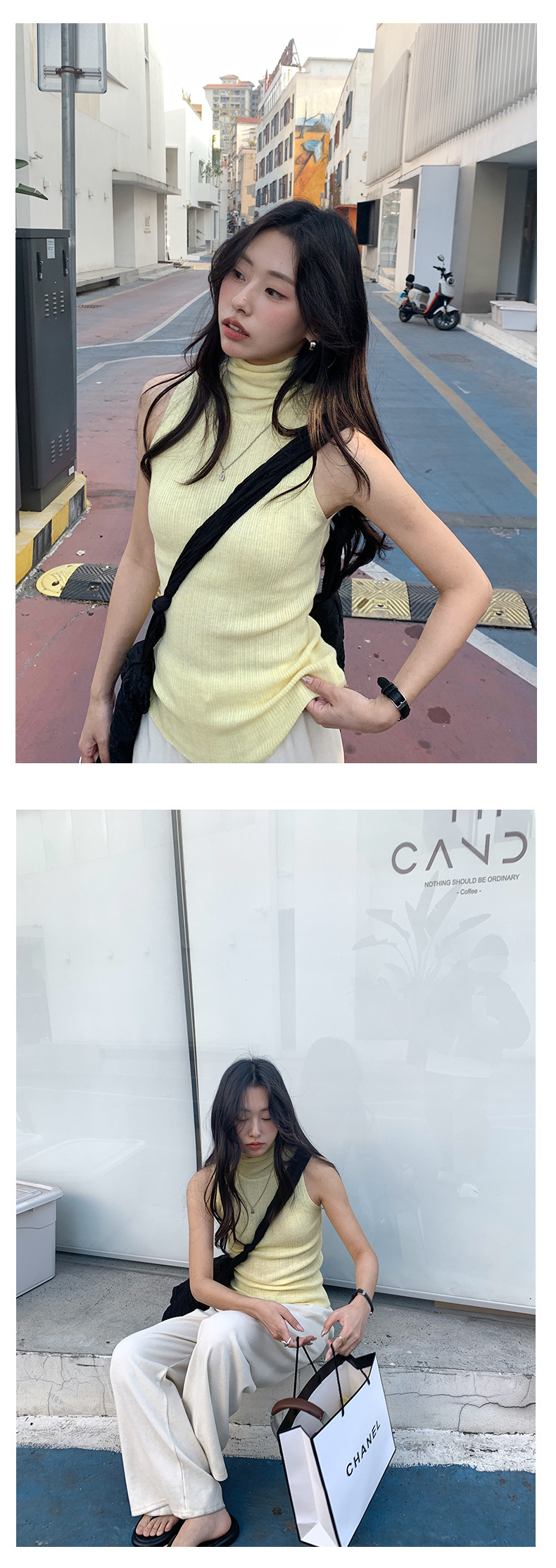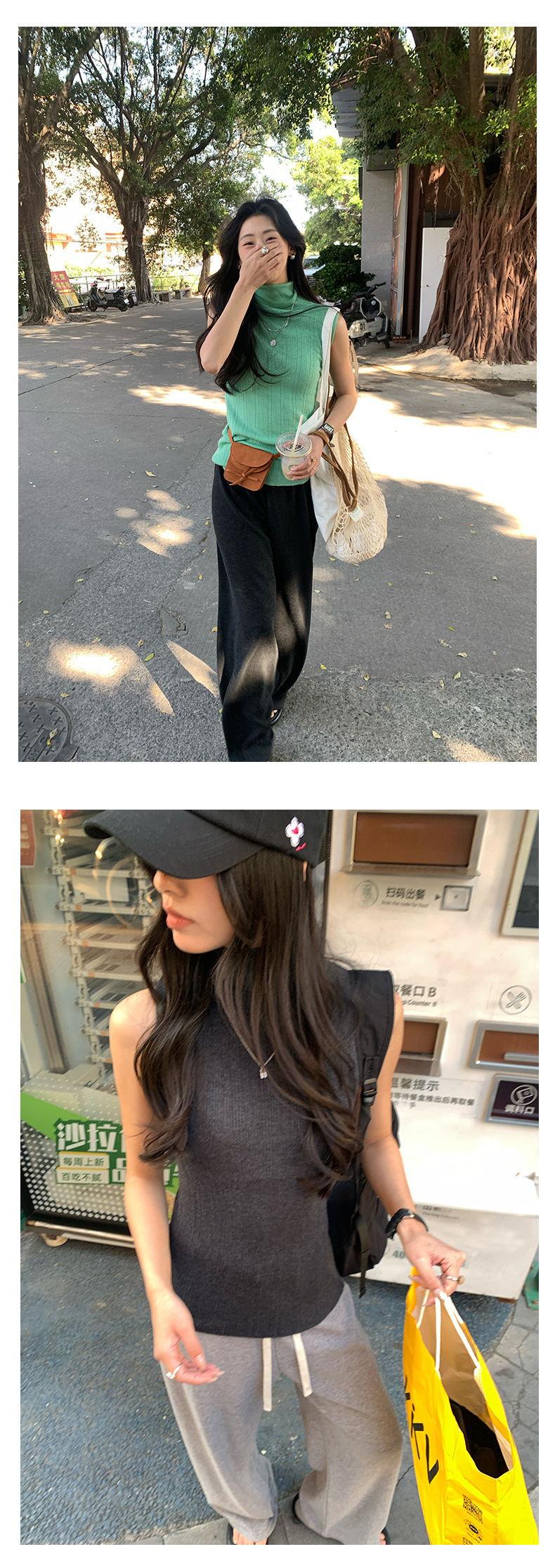 *o-ha-you*【FHZH1EF5010045】9色高領無袖彈性毛針織背心2025春夏韓版內搭T恤-如有需要請先諮詢