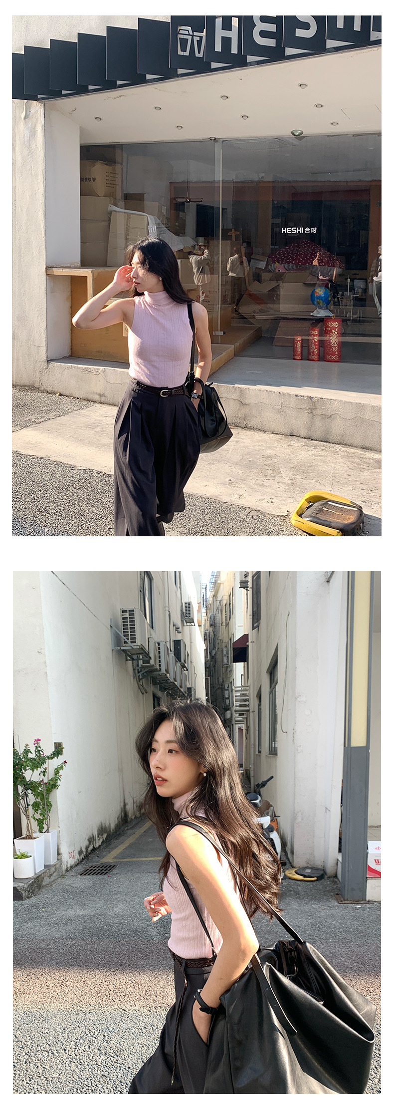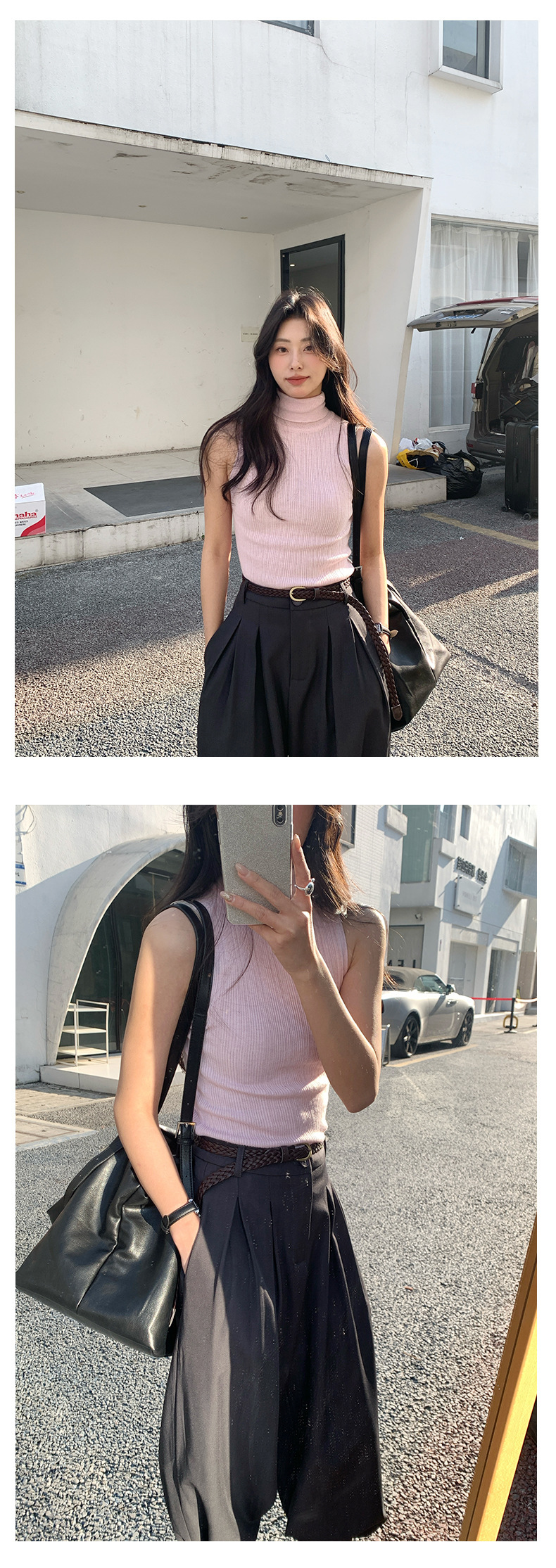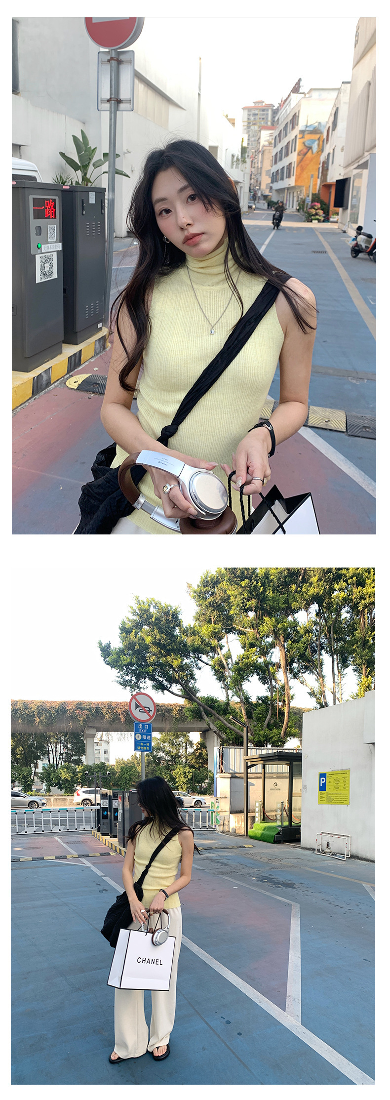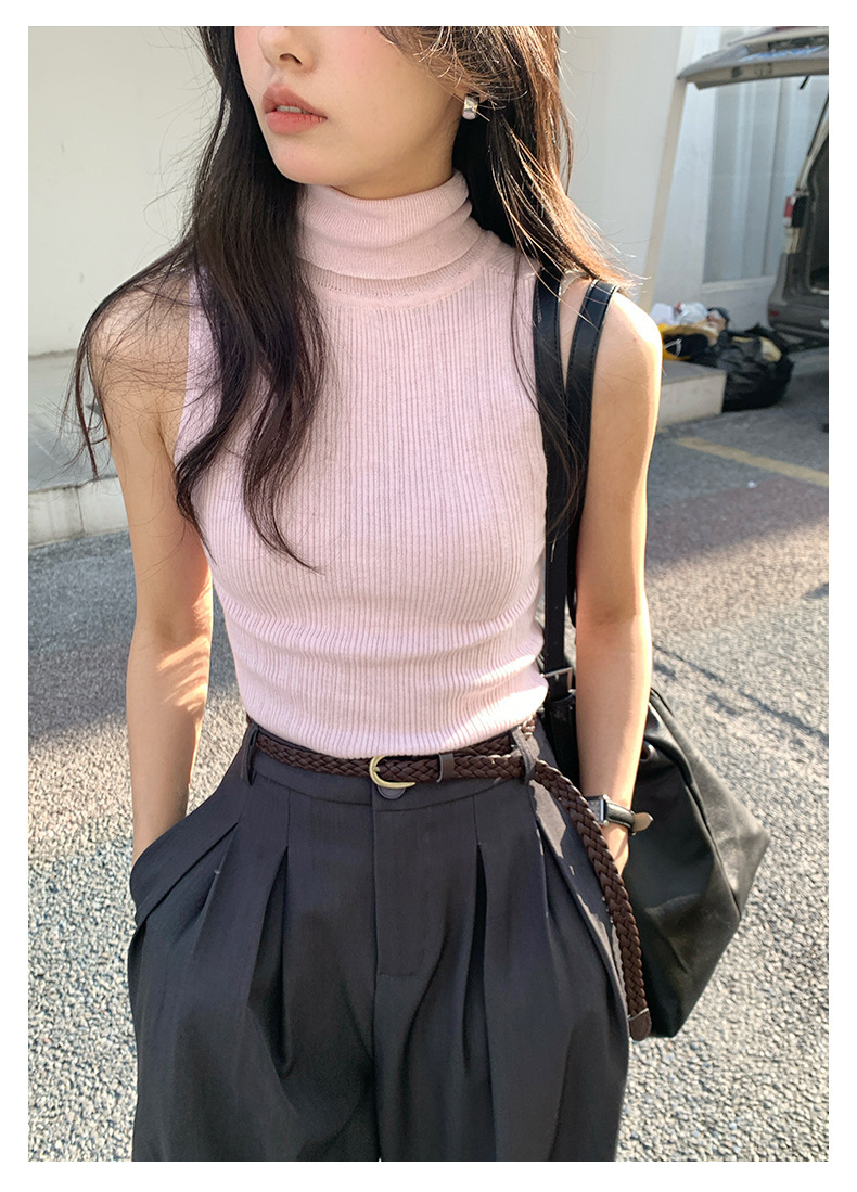 *o-ha-you*【FHZH1EF5010045】9色高領無袖彈性毛針織背心2025春夏韓版內搭T恤-如有需要請先諮詢