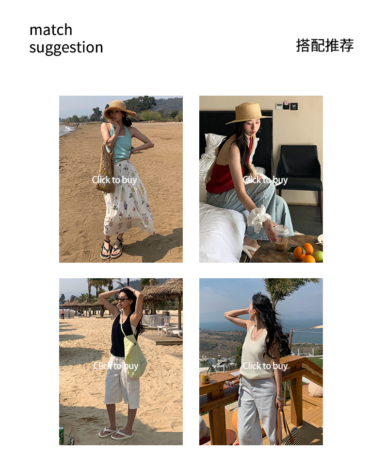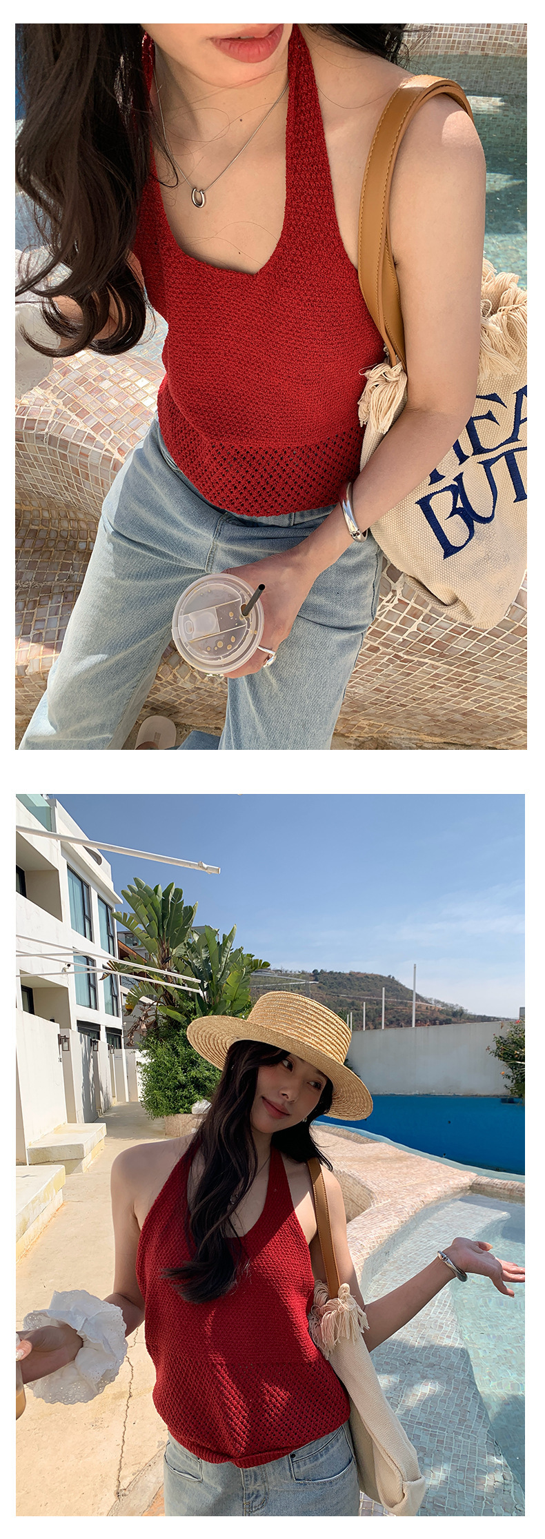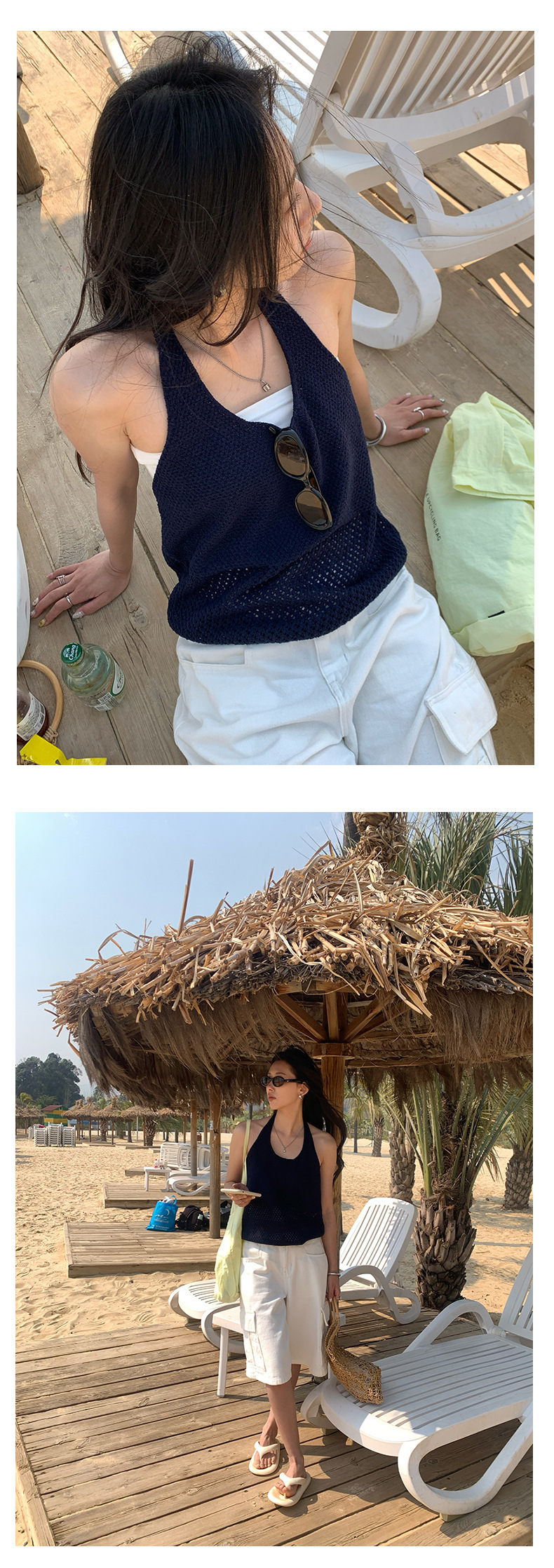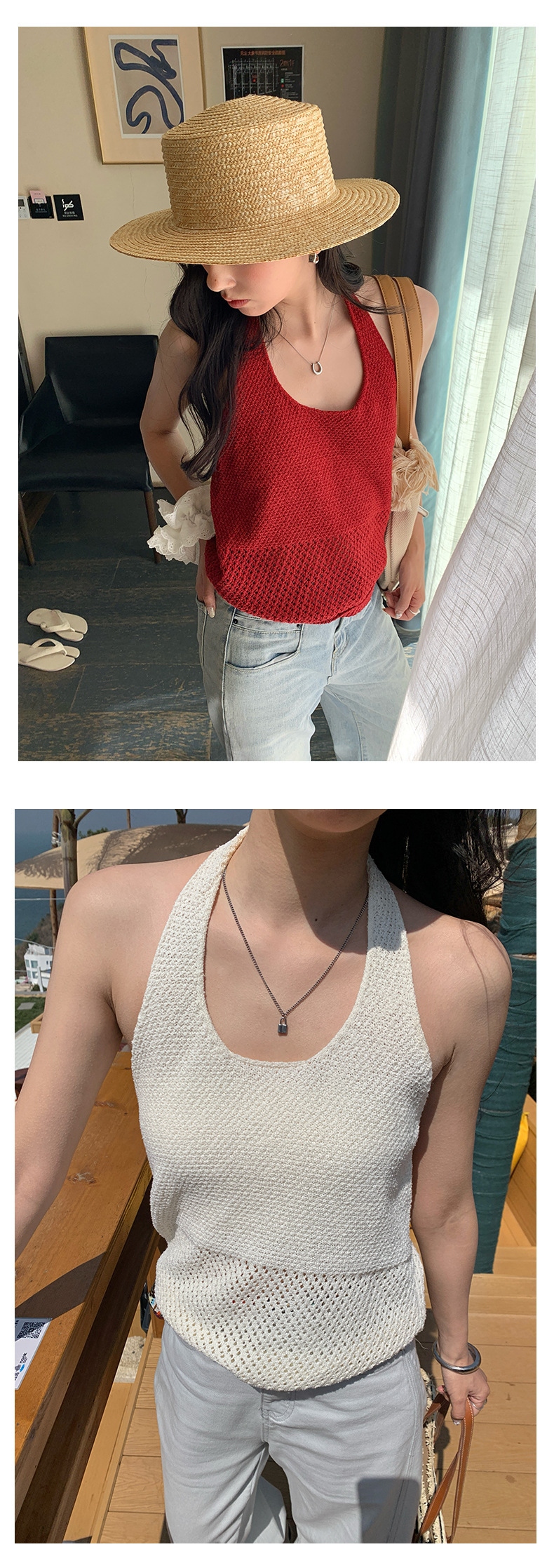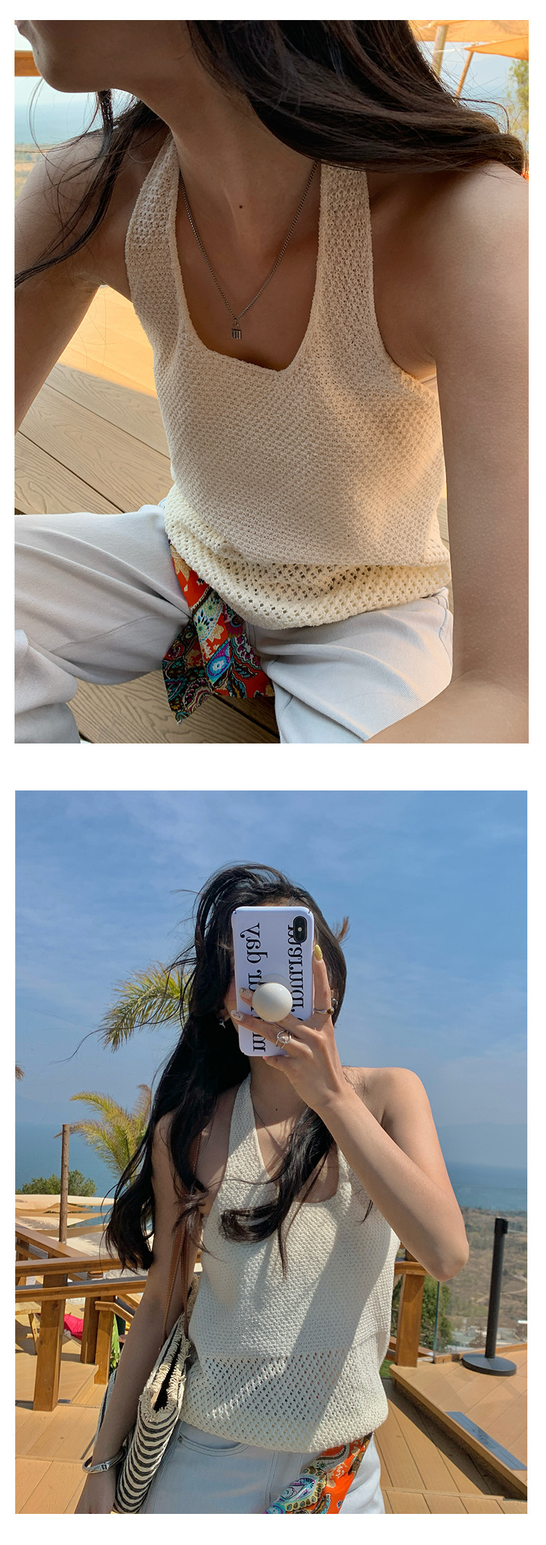 *o-ha-you*【FHZH1EF5020275】鏤空拼接掛脖設計針織背心2025夏時尚清涼上衣-4色-如有需要請先諮詢