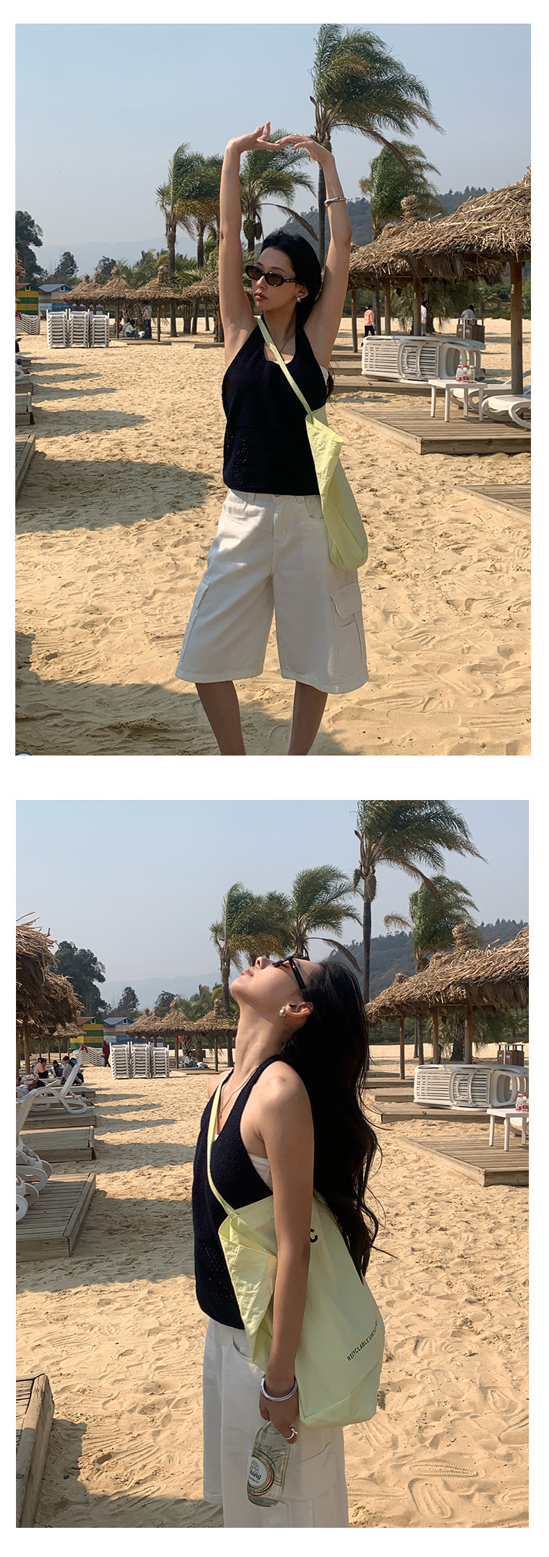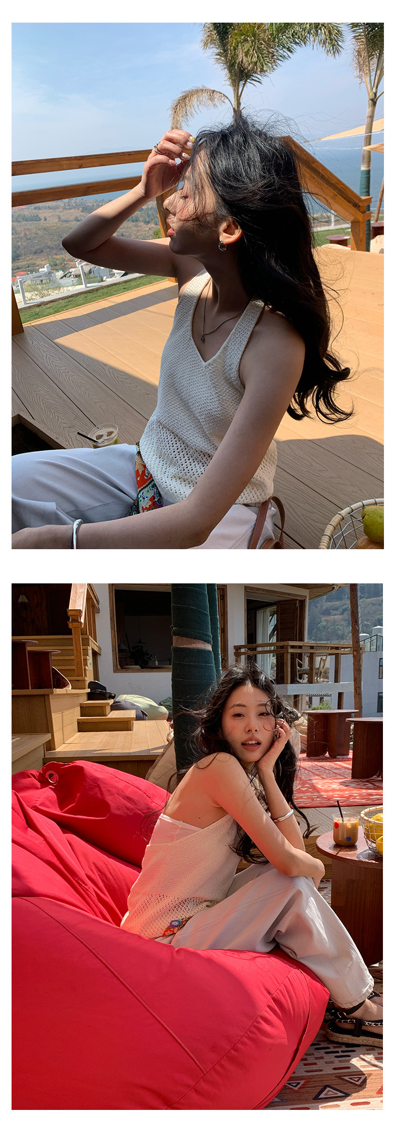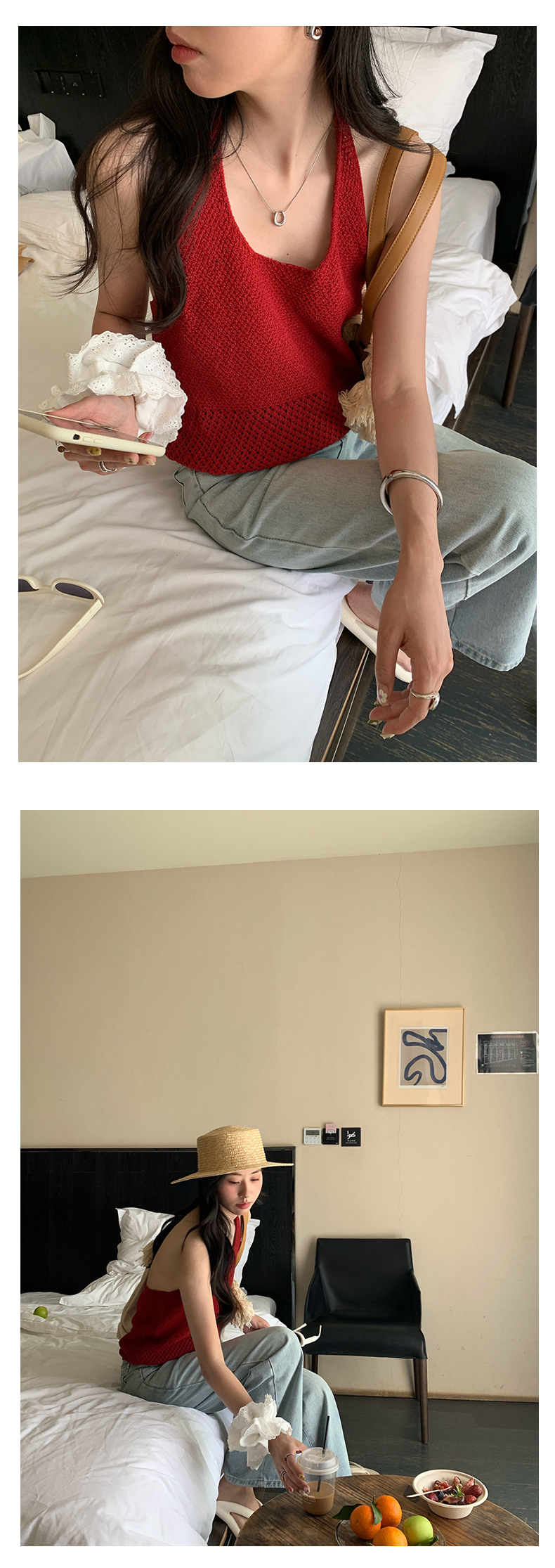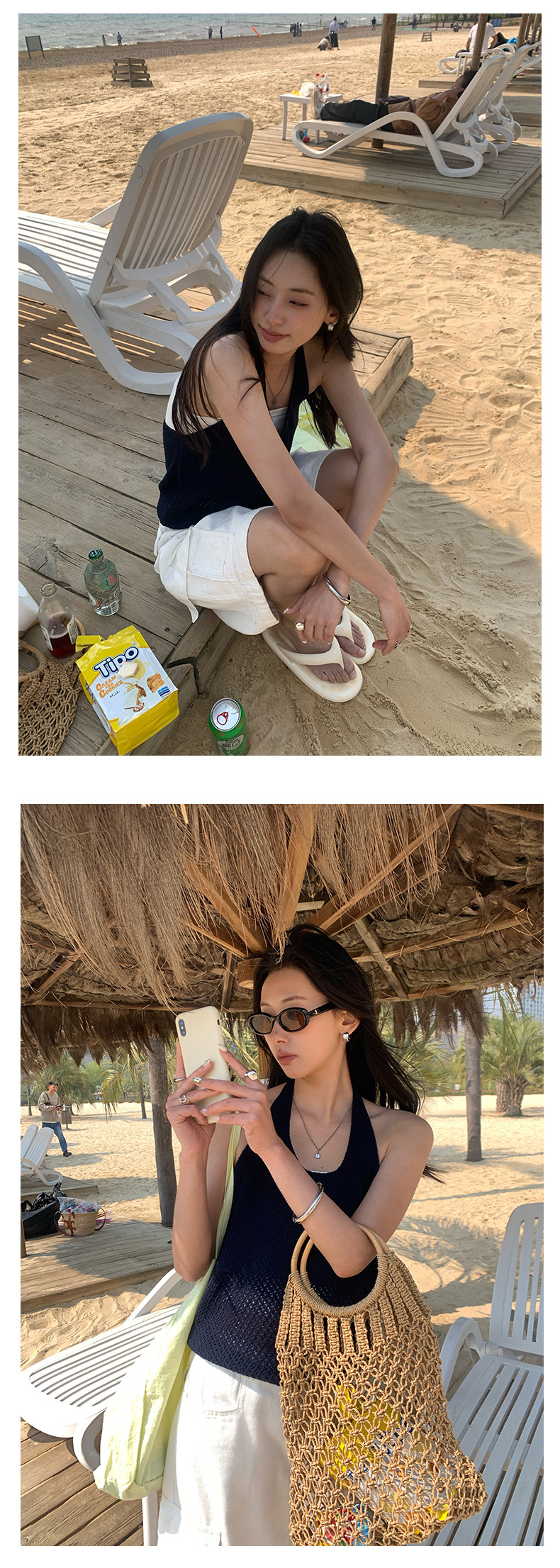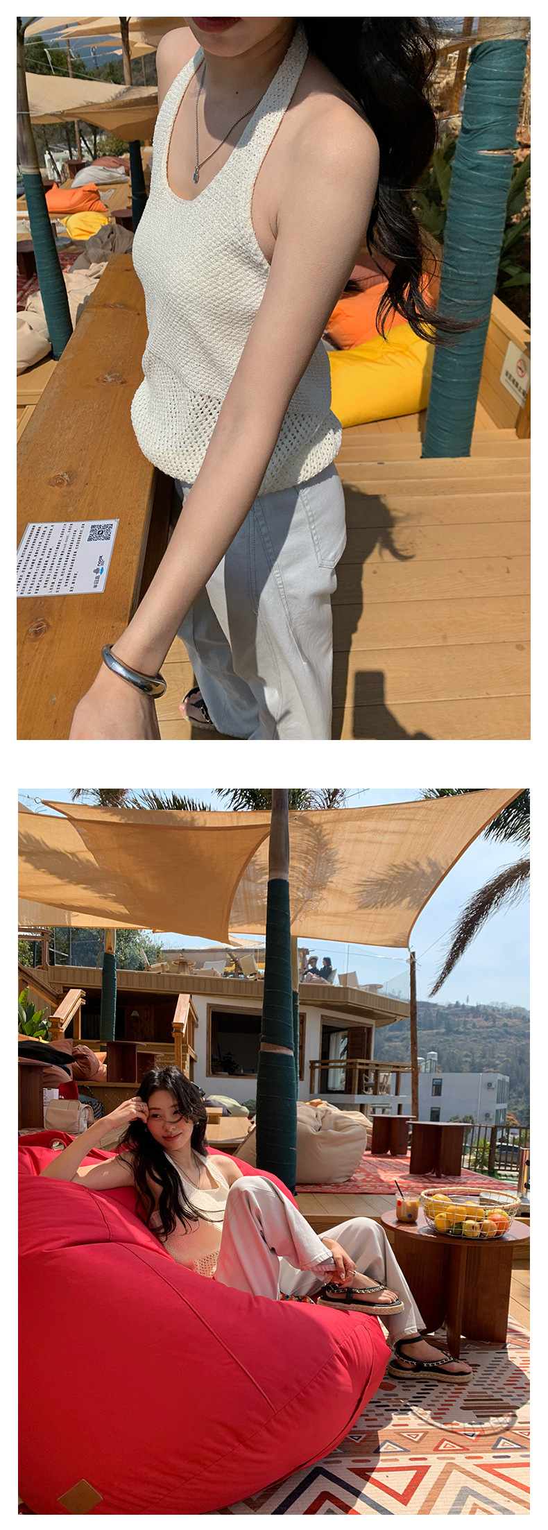 *o-ha-you*【FHZH1EF5020275】鏤空拼接掛脖設計針織背心2025夏時尚清涼上衣-4色-如有需要請先諮詢