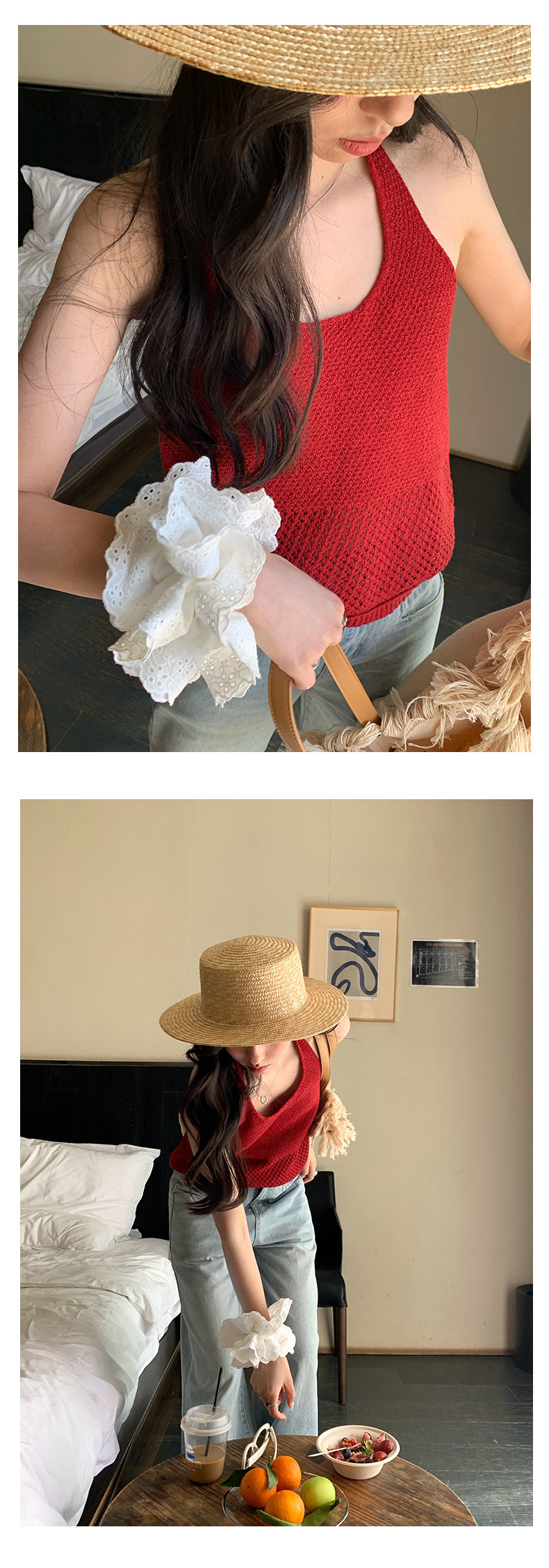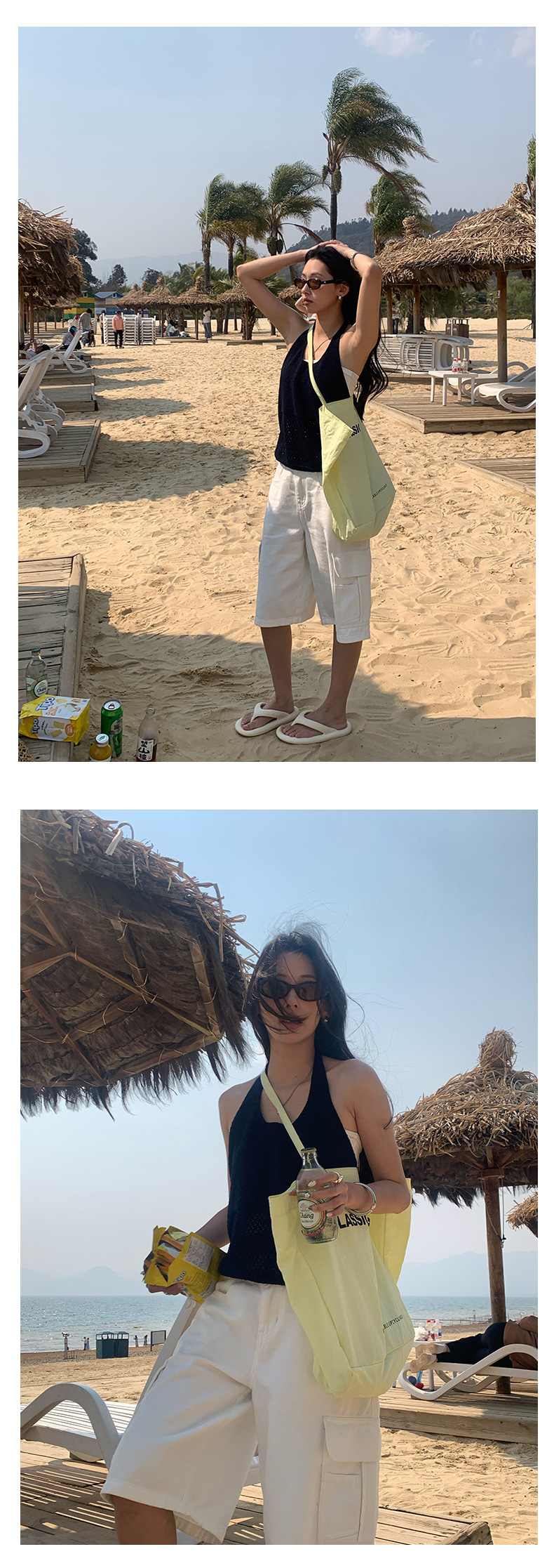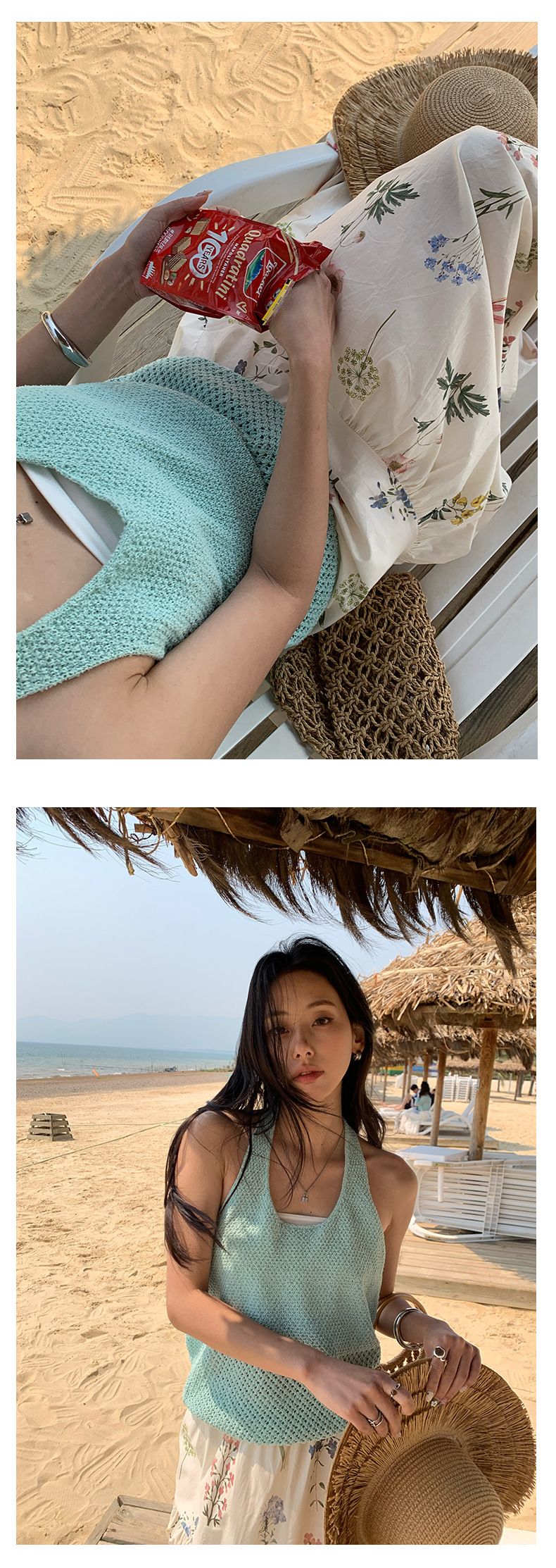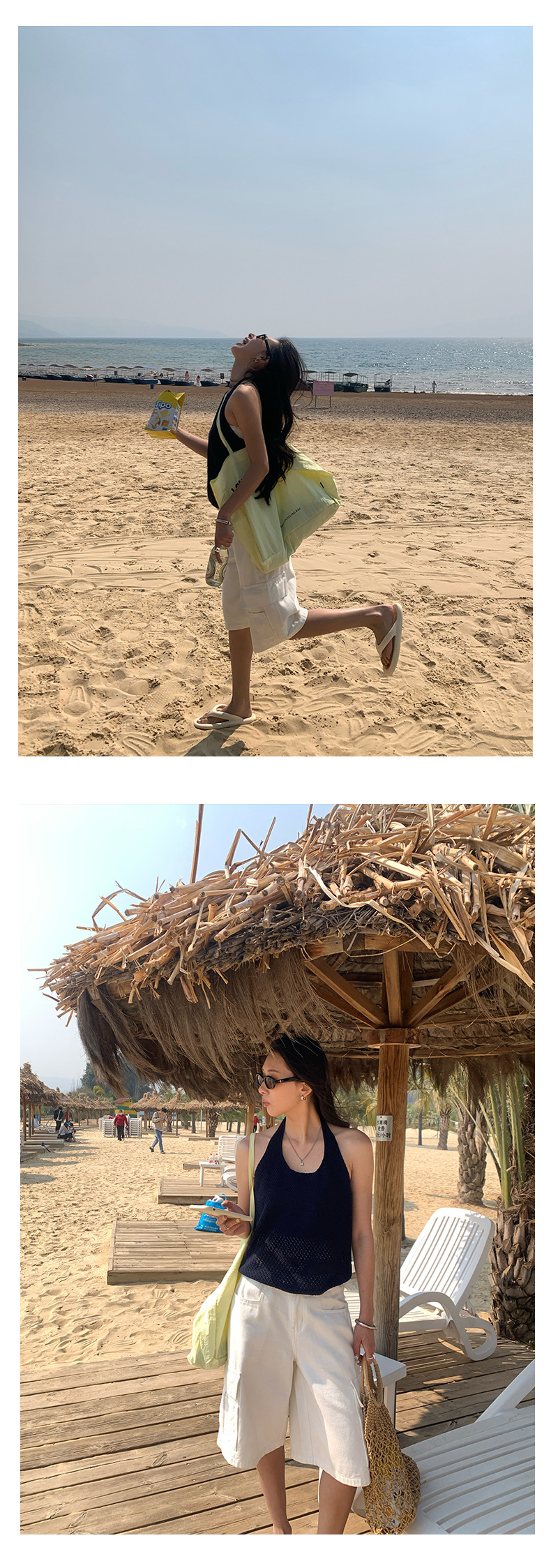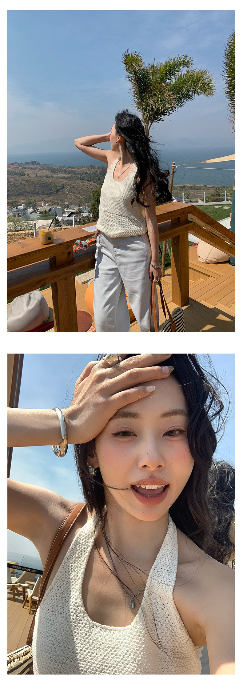 *o-ha-you*【FHZH1EF5020275】鏤空拼接掛脖設計針織背心2025夏時尚清涼上衣-4色-如有需要請先諮詢