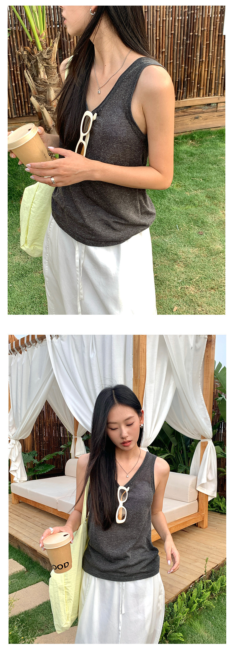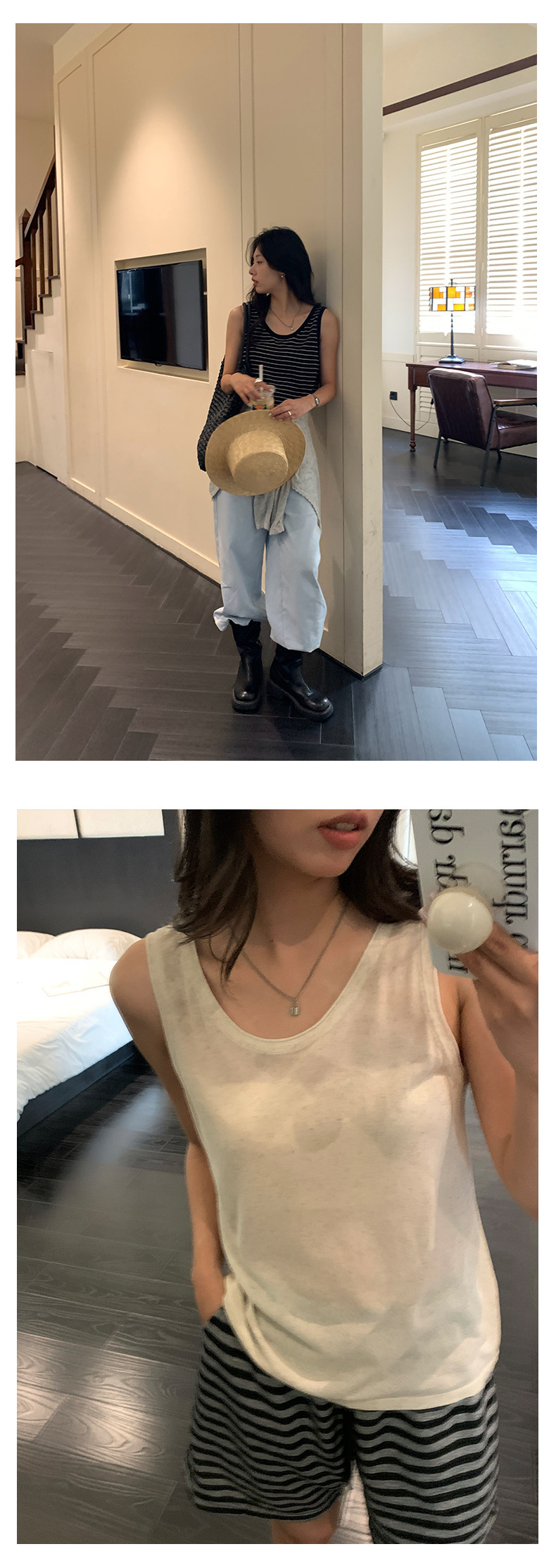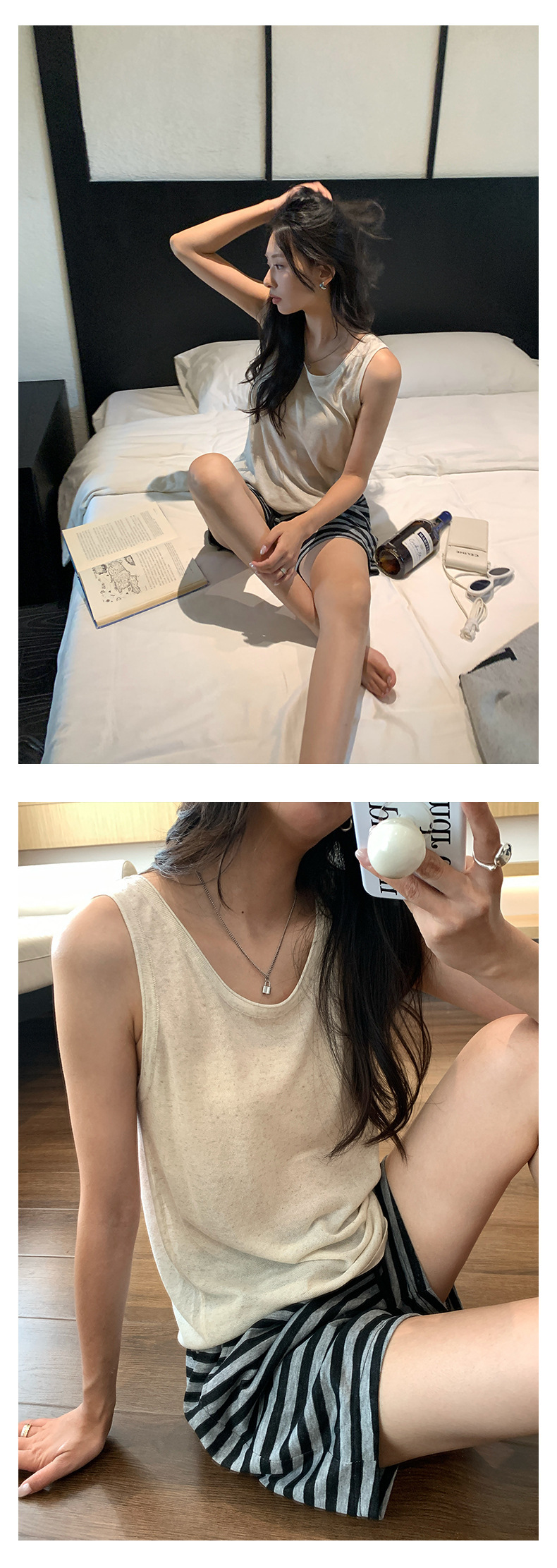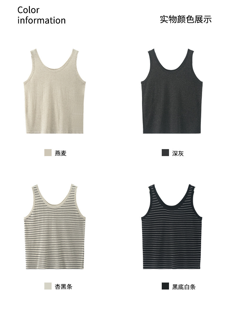 *o-ha-you*【FHZH1EF5020505】輕薄含亞麻U領背心夏季經典款藏肉內搭純色打底針織衫-4色-如有需要請先諮詢