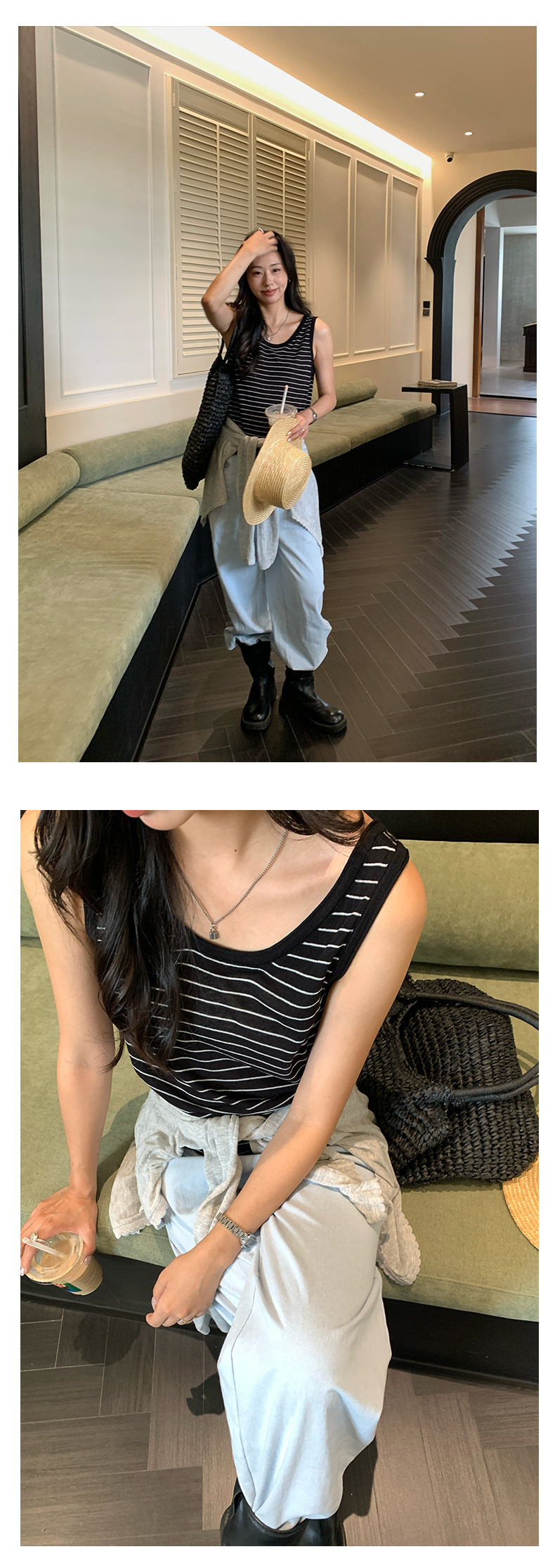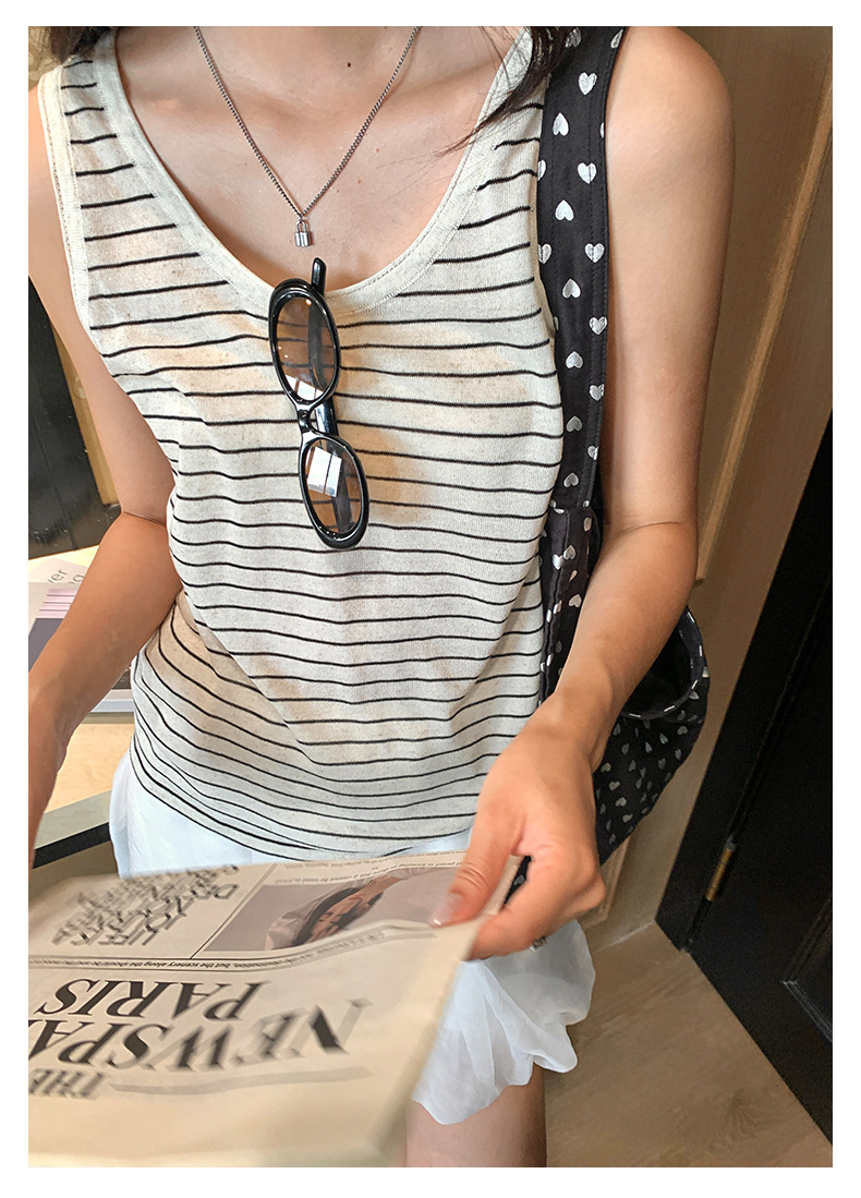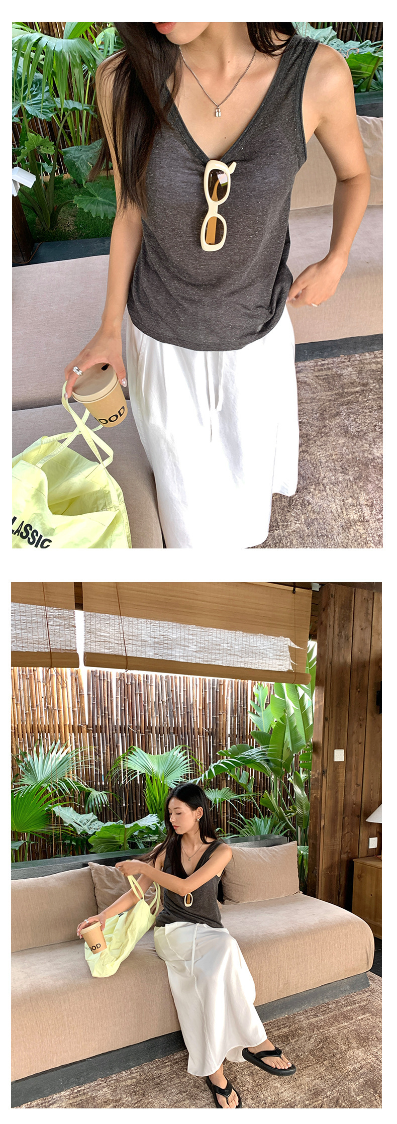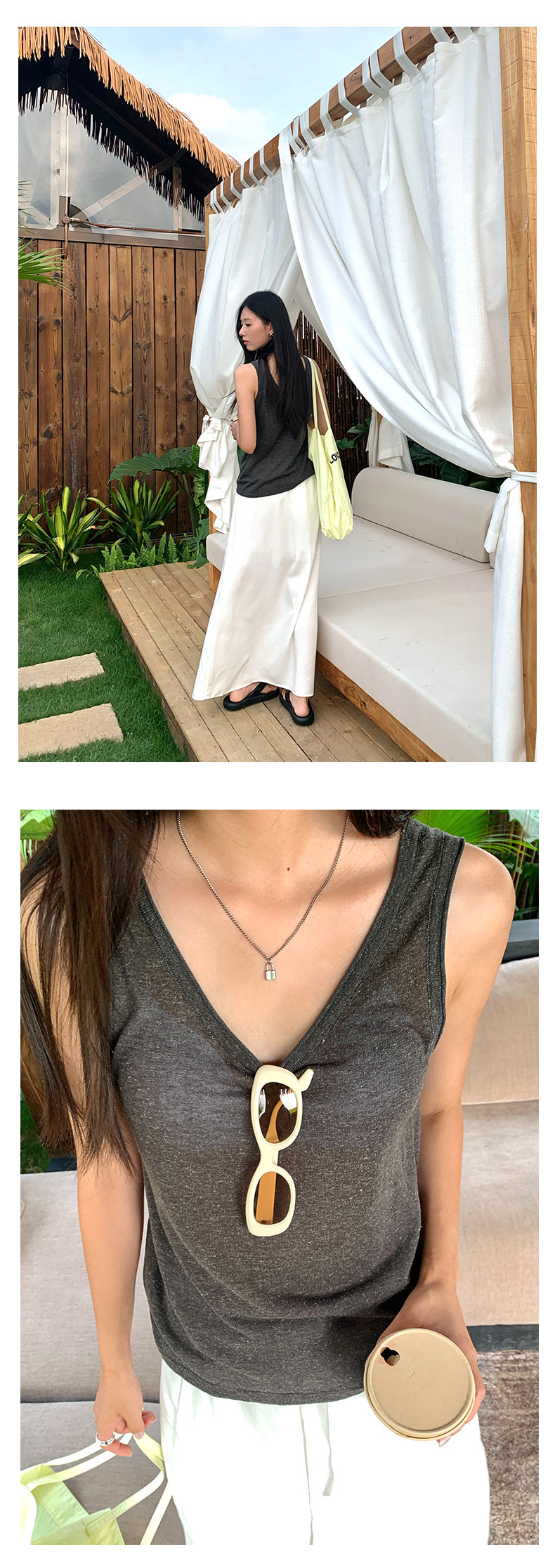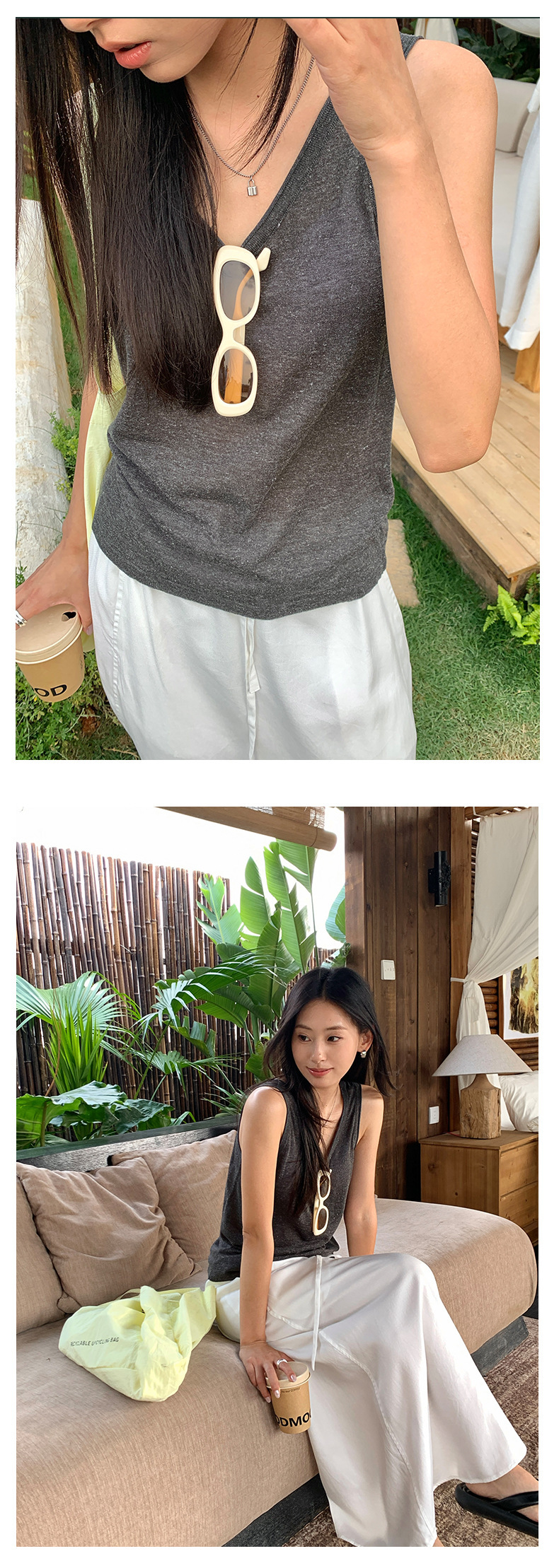 *o-ha-you*【FHZH1EF5020505】輕薄含亞麻U領背心夏季經典款藏肉內搭純色打底針織衫-4色-如有需要請先諮詢