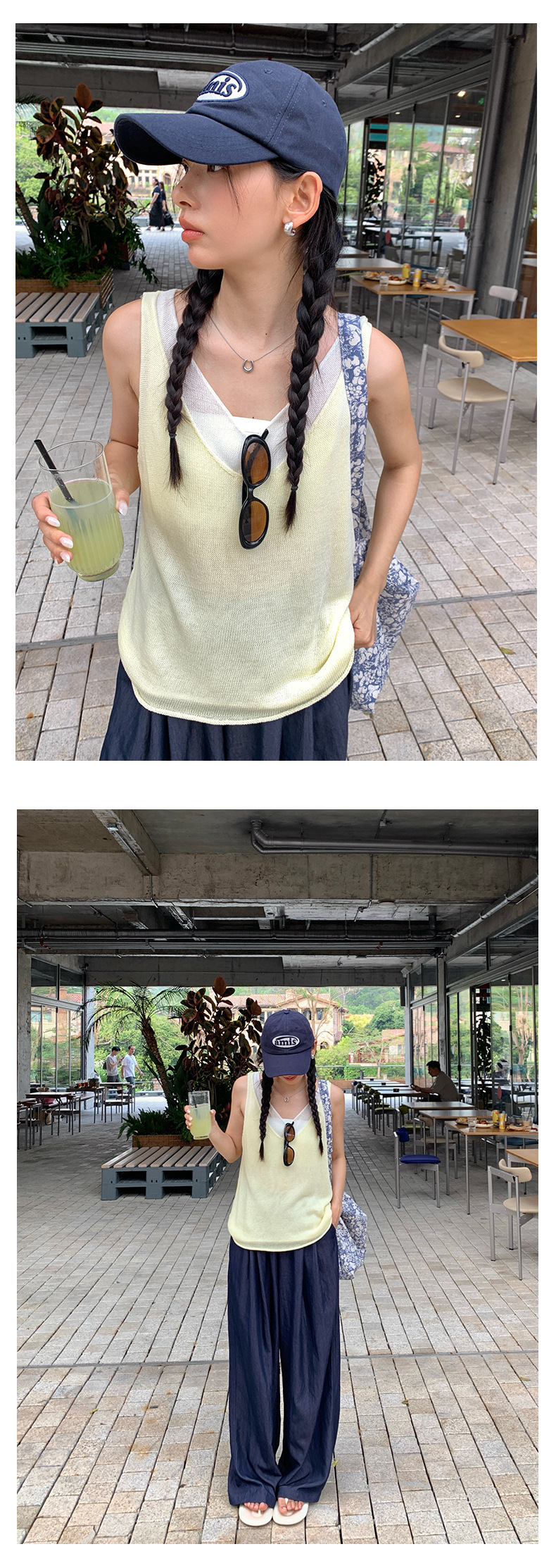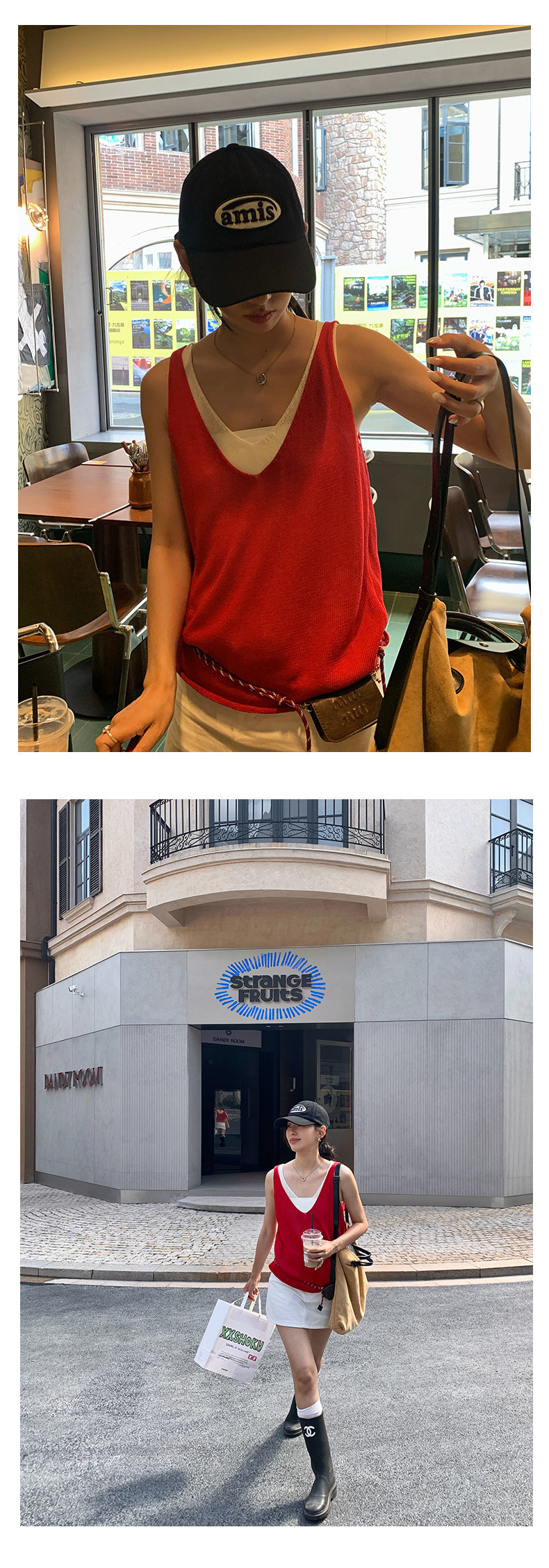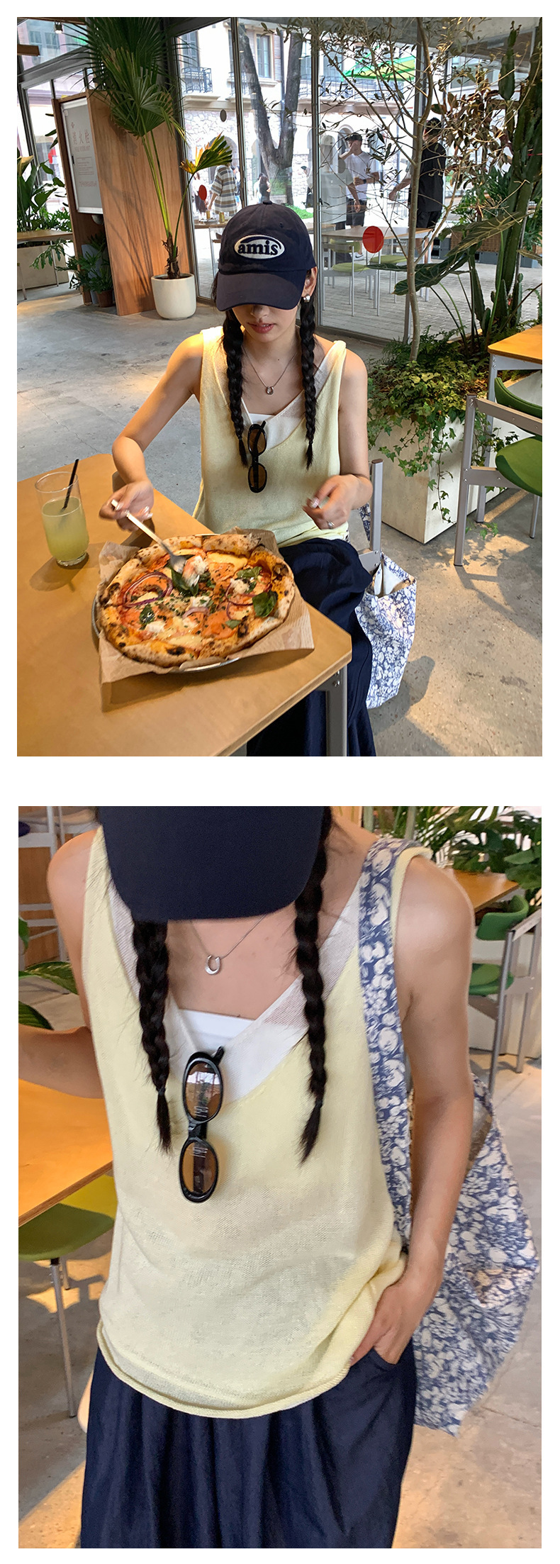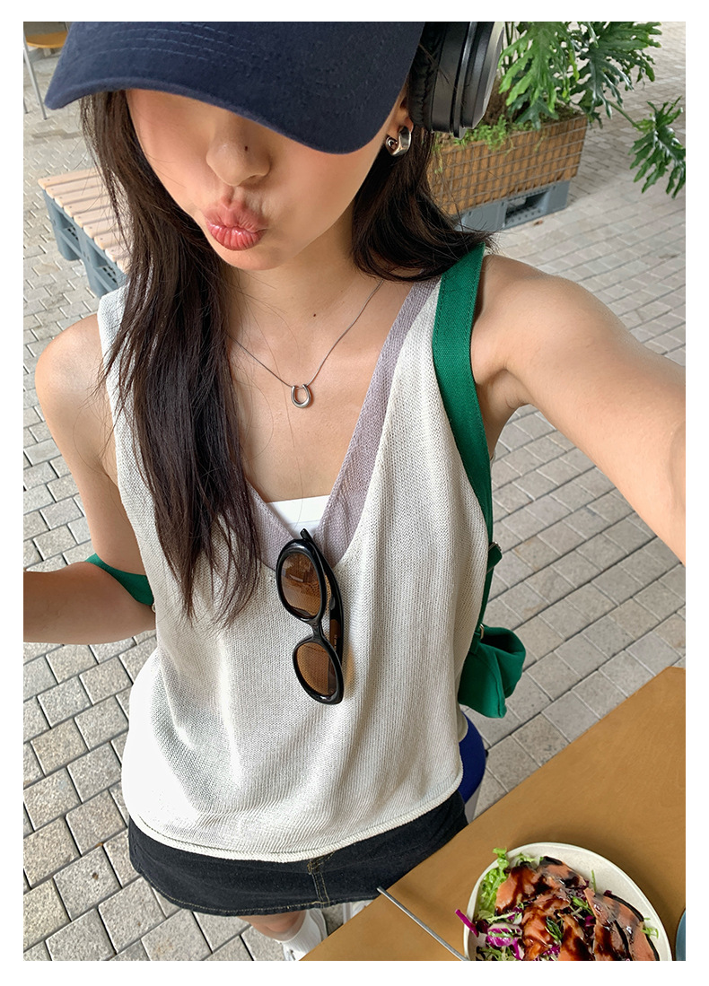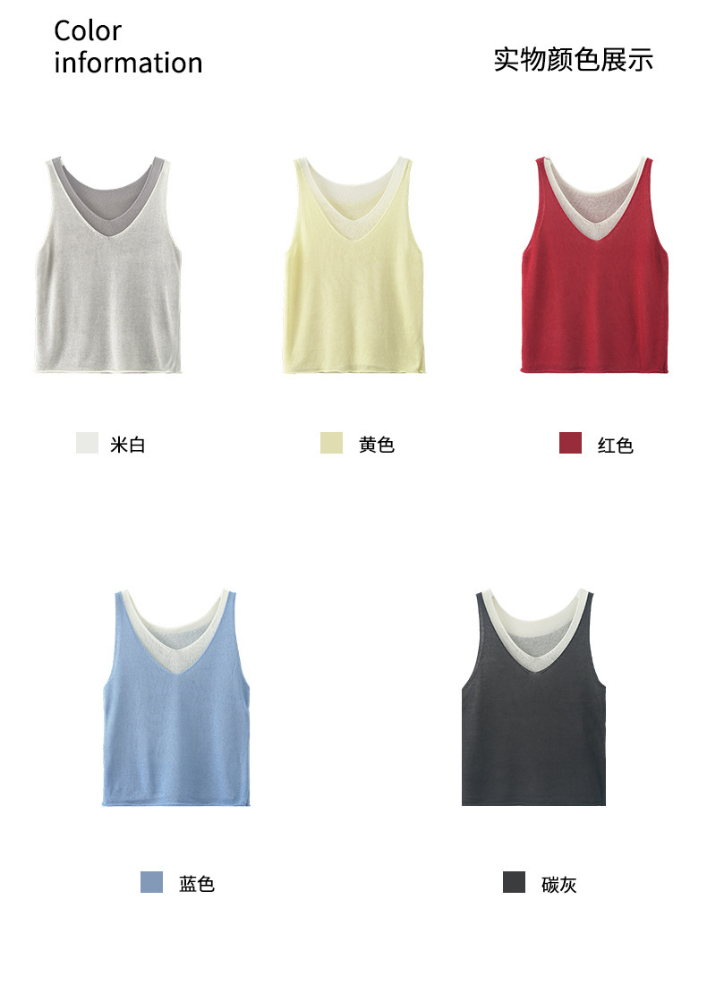 *o-ha-you*【FHZH1EF5020512】毛織假兩件V領無袖背心2025夏時尚休閒顯瘦百搭上衣-5色-如有需要請先諮詢