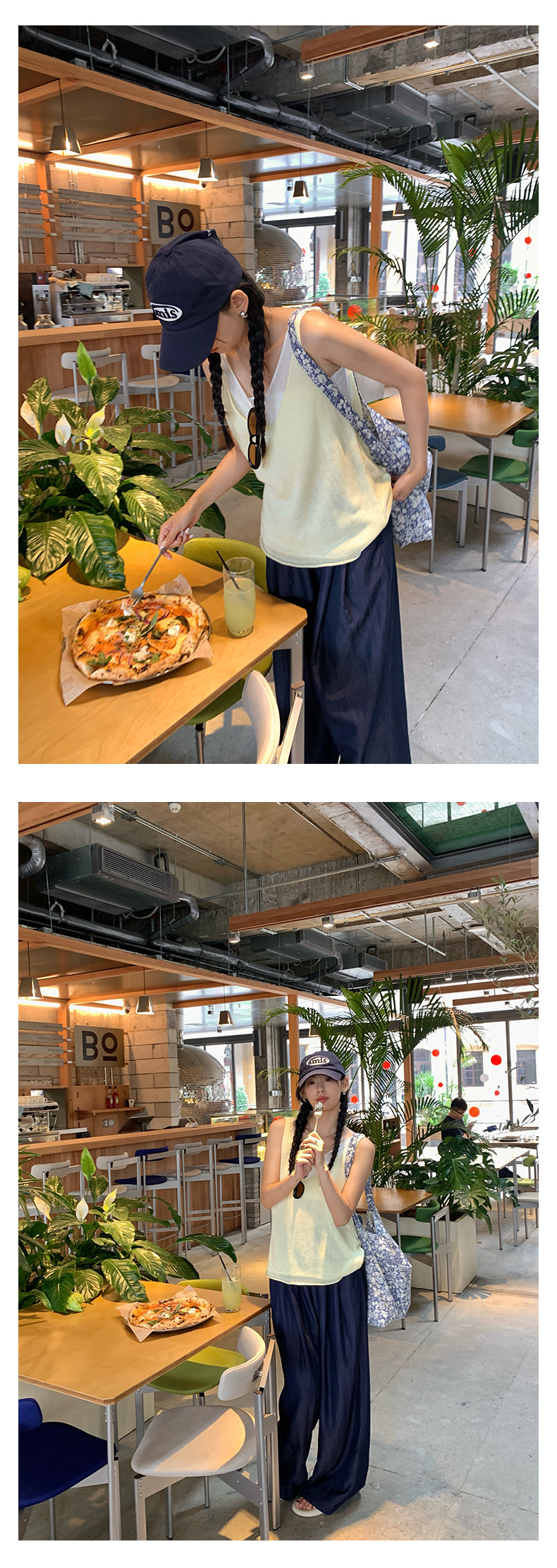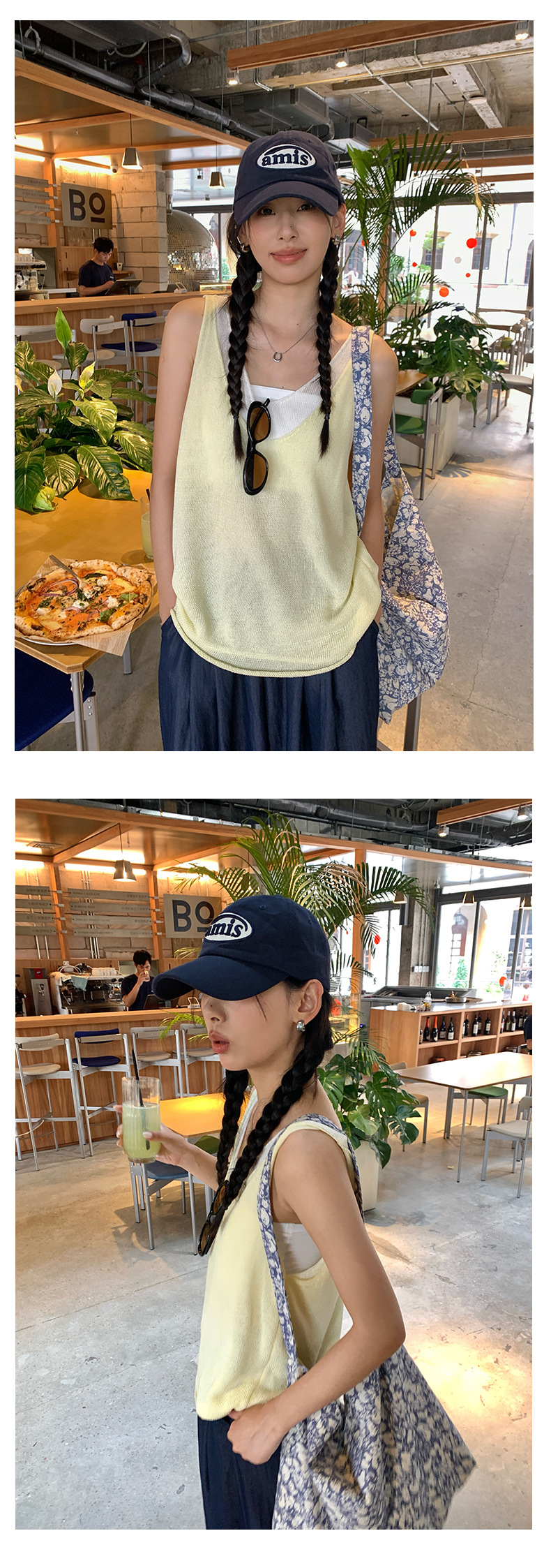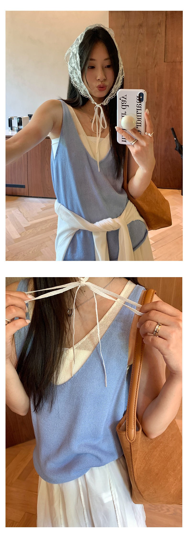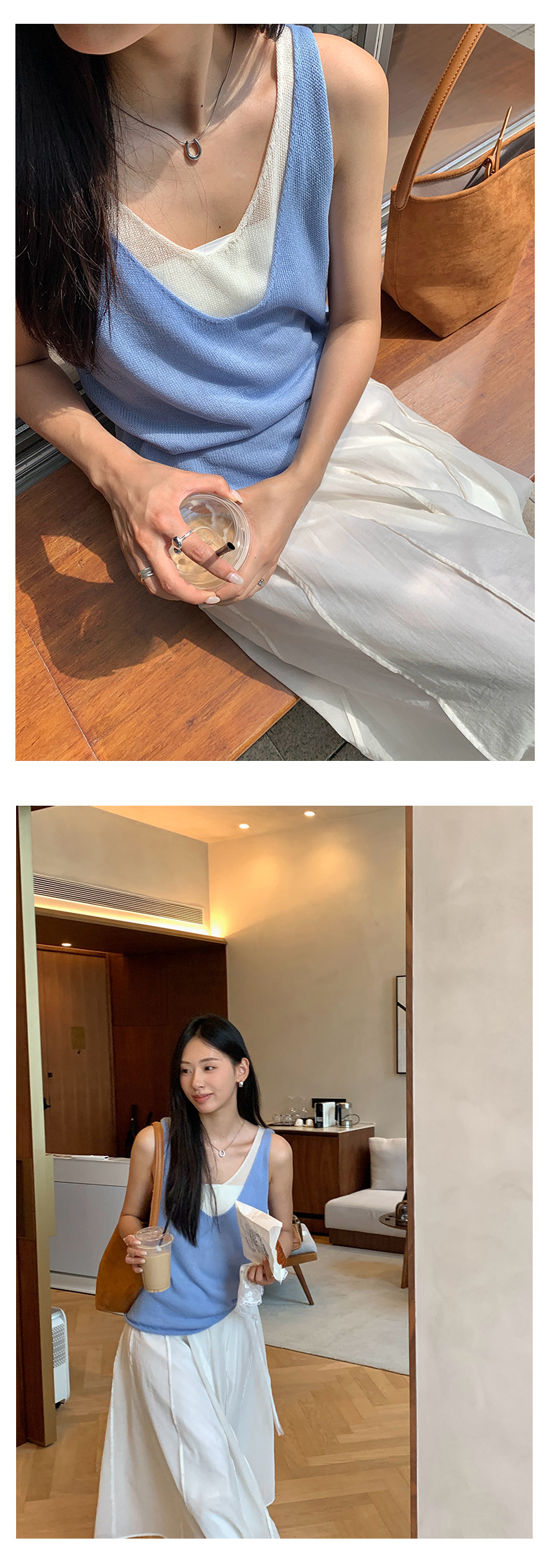*o-ha-you*【FHZH1EF5020512】毛織假兩件V領無袖背心2025夏時尚休閒顯瘦百搭上衣-5色-如有需要請先諮詢