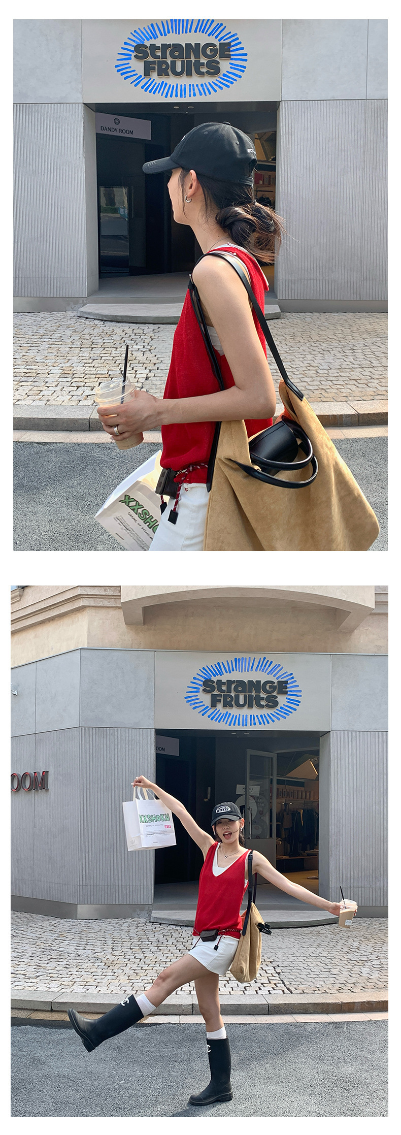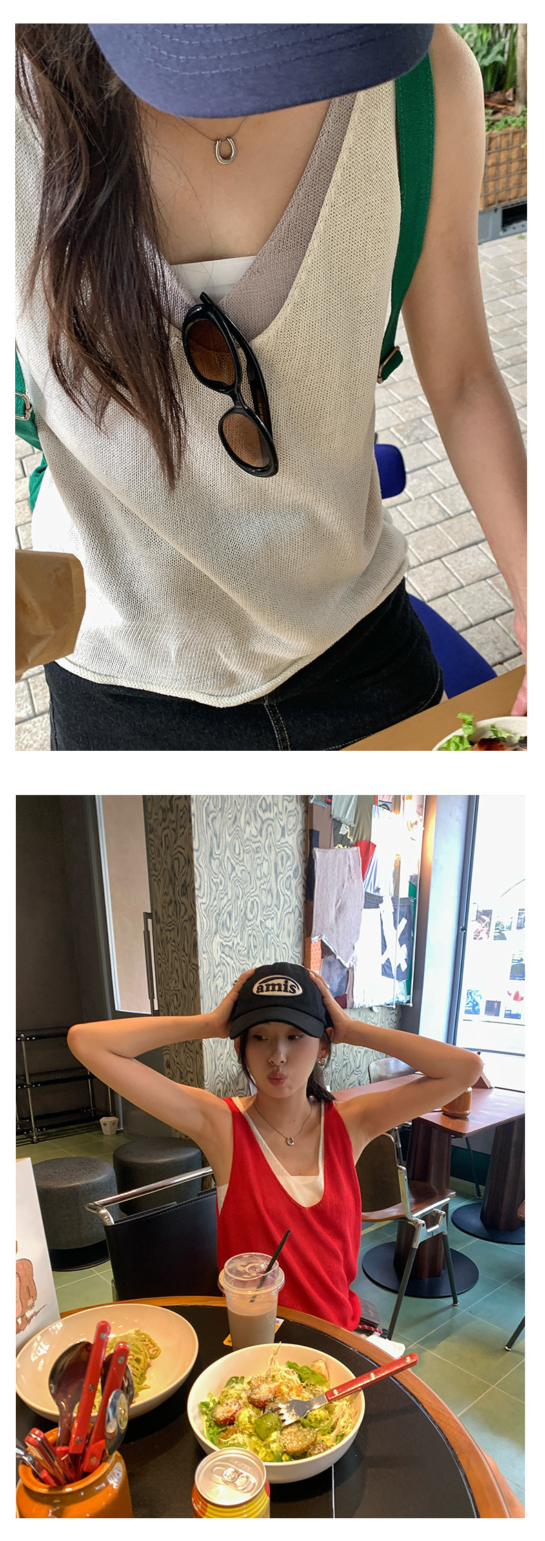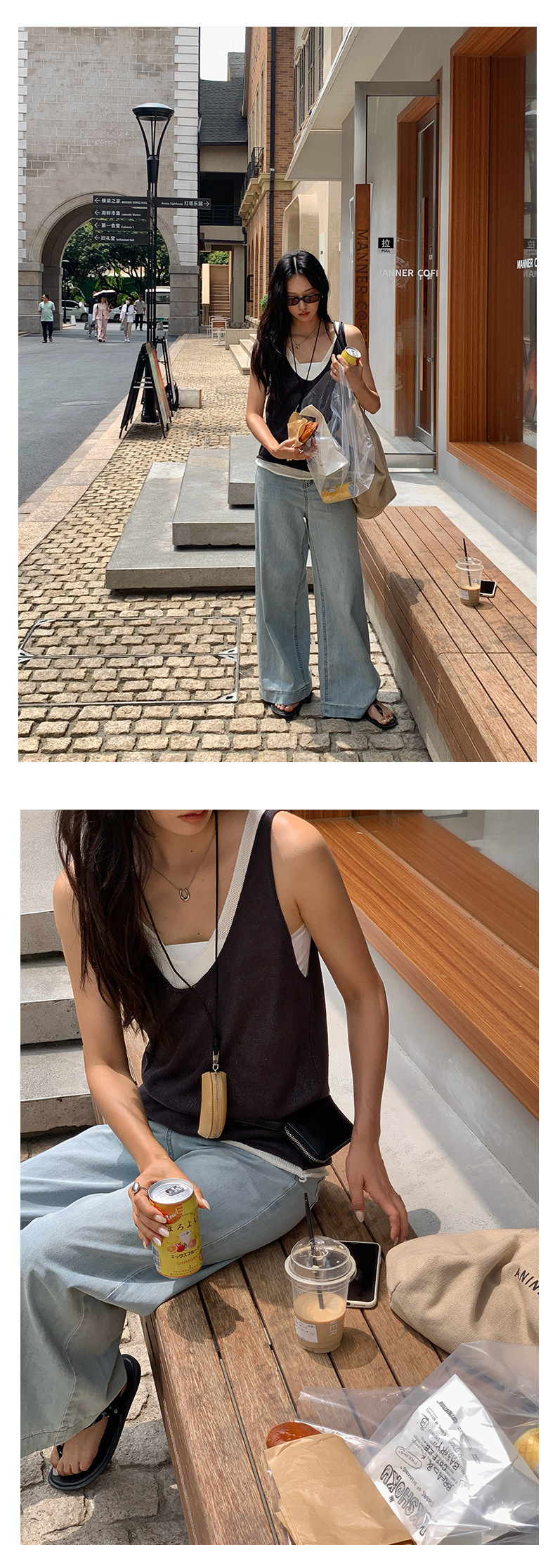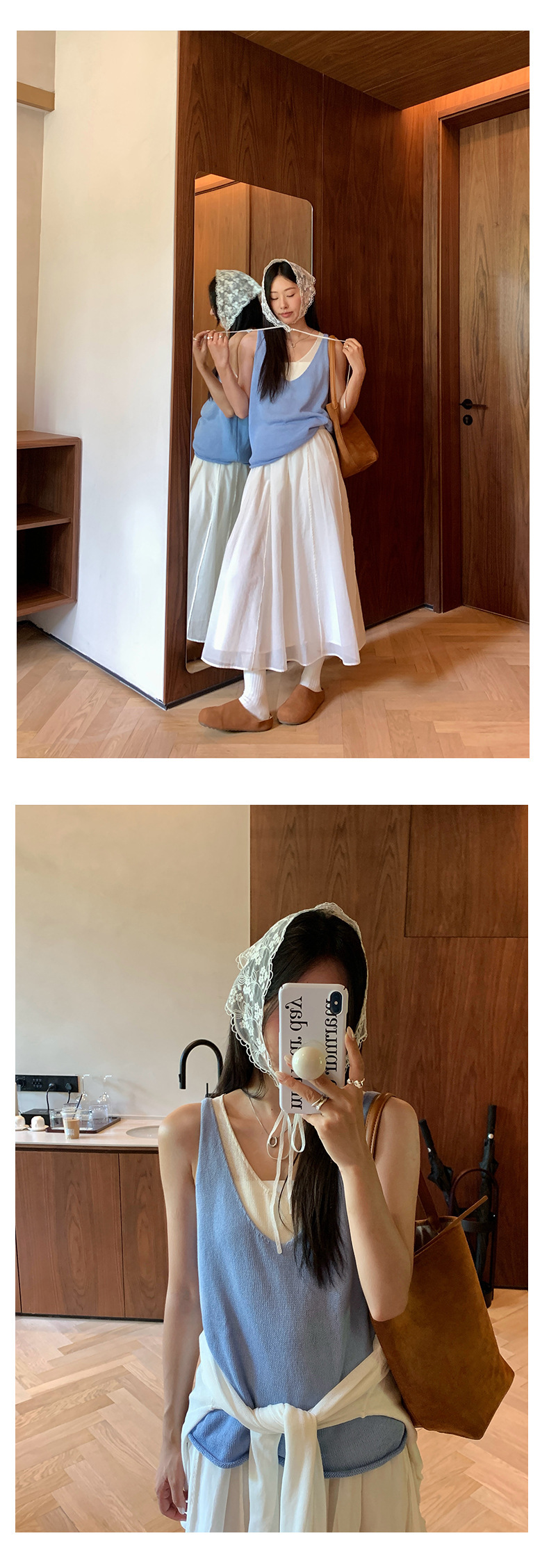 *o-ha-you*【FHZH1EF5020512】毛織假兩件V領無袖背心2025夏時尚休閒顯瘦百搭上衣-5色-如有需要請先諮詢