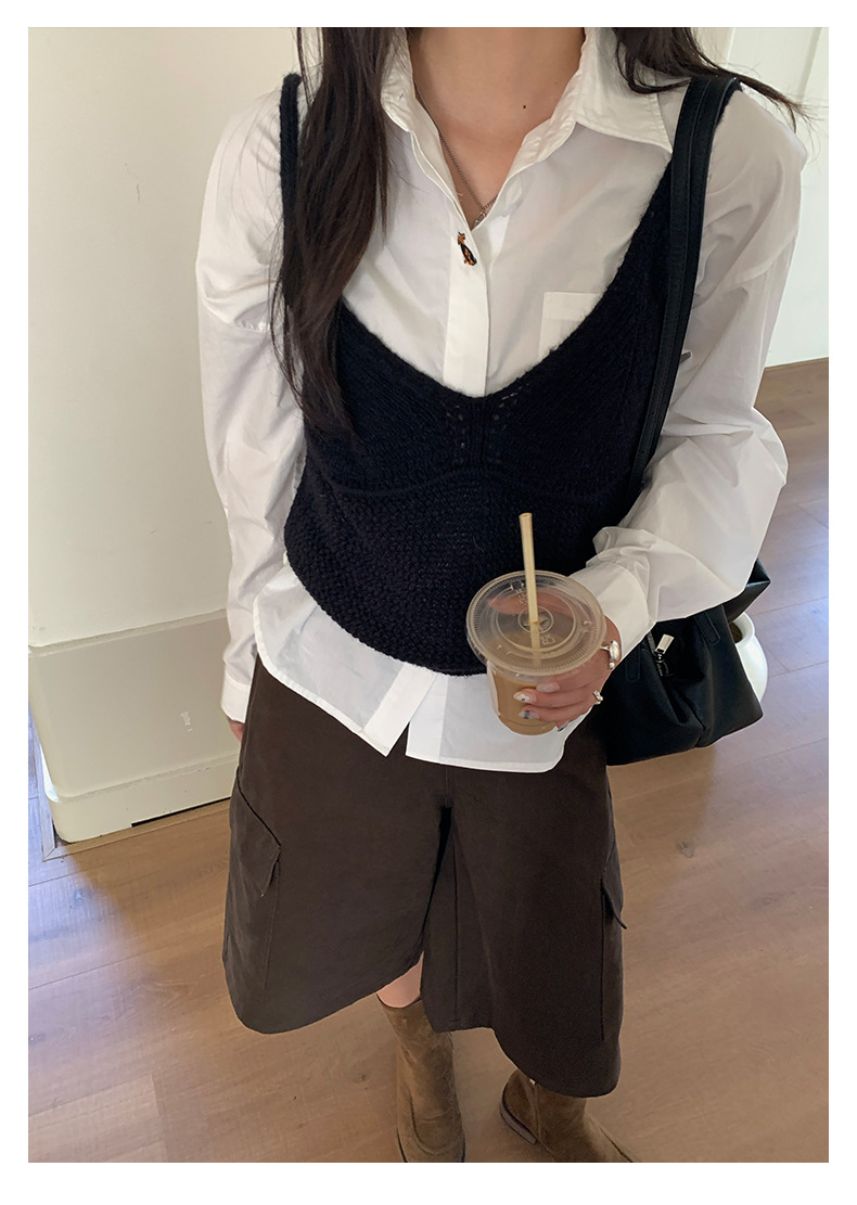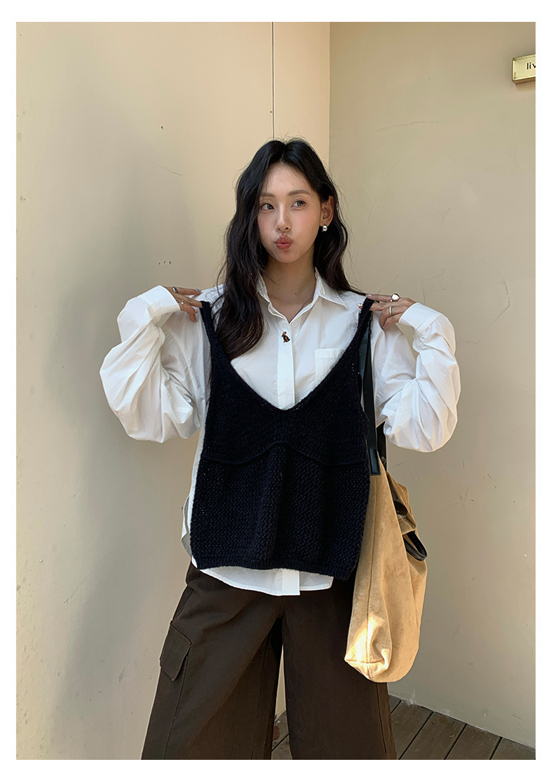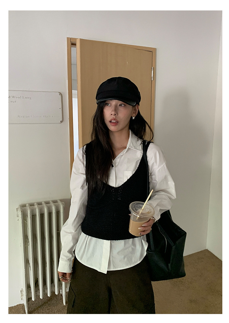 *o-ha-you*【FHZH1EF5030071】氣質簡約百搭顯瘦鏤空吊帶背心短款疊穿顯瘦上衣-2色