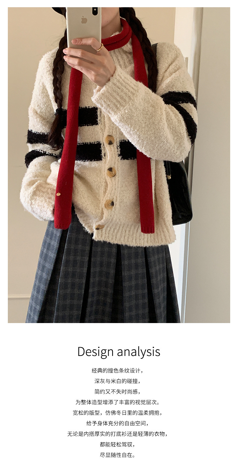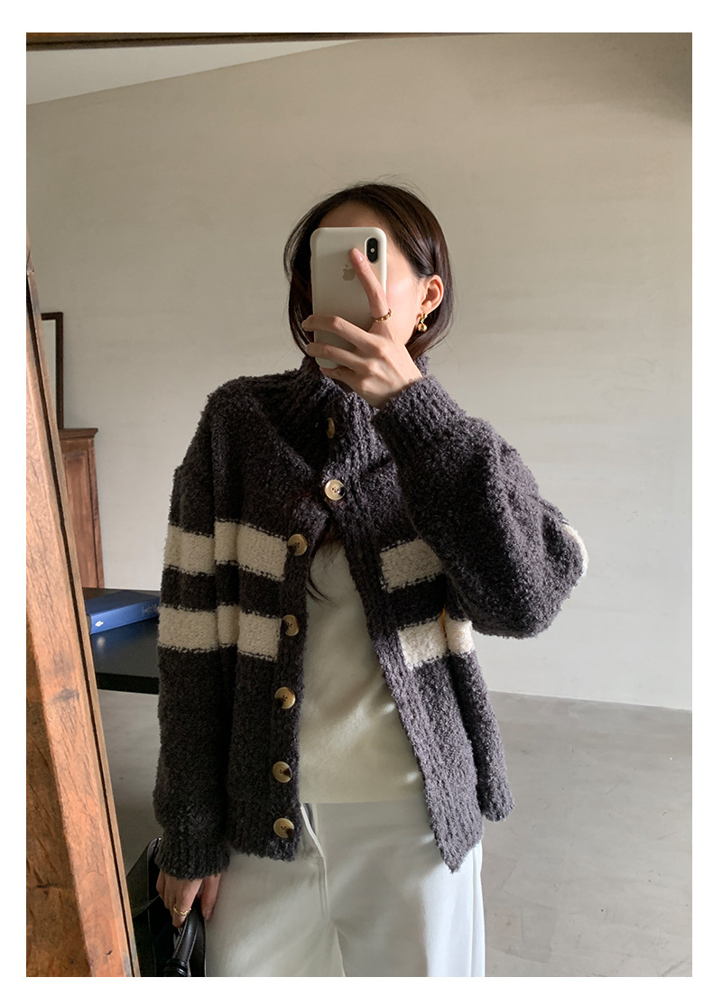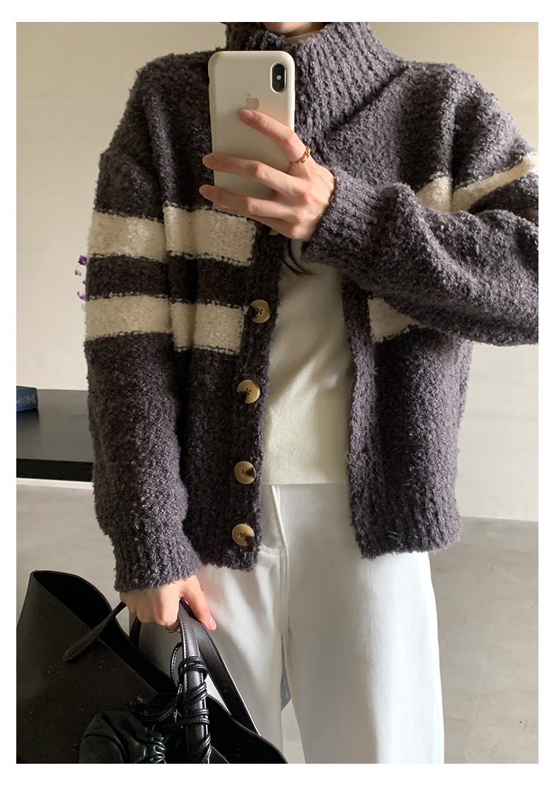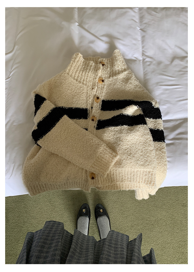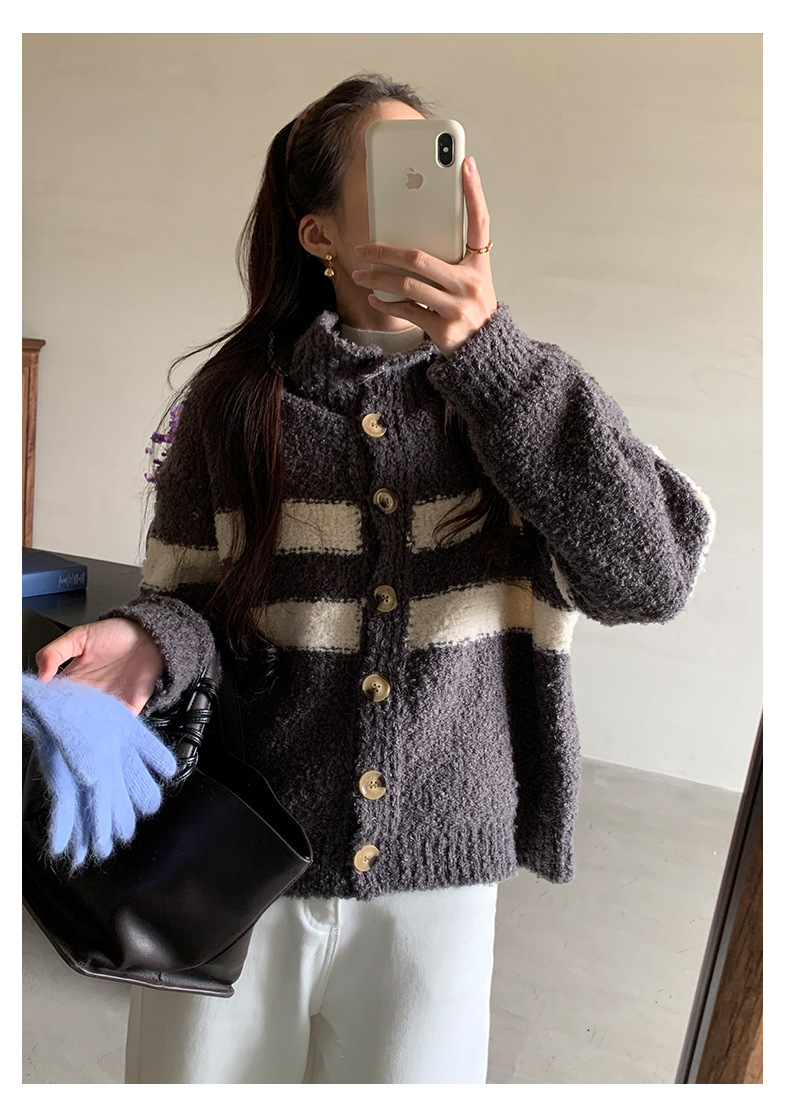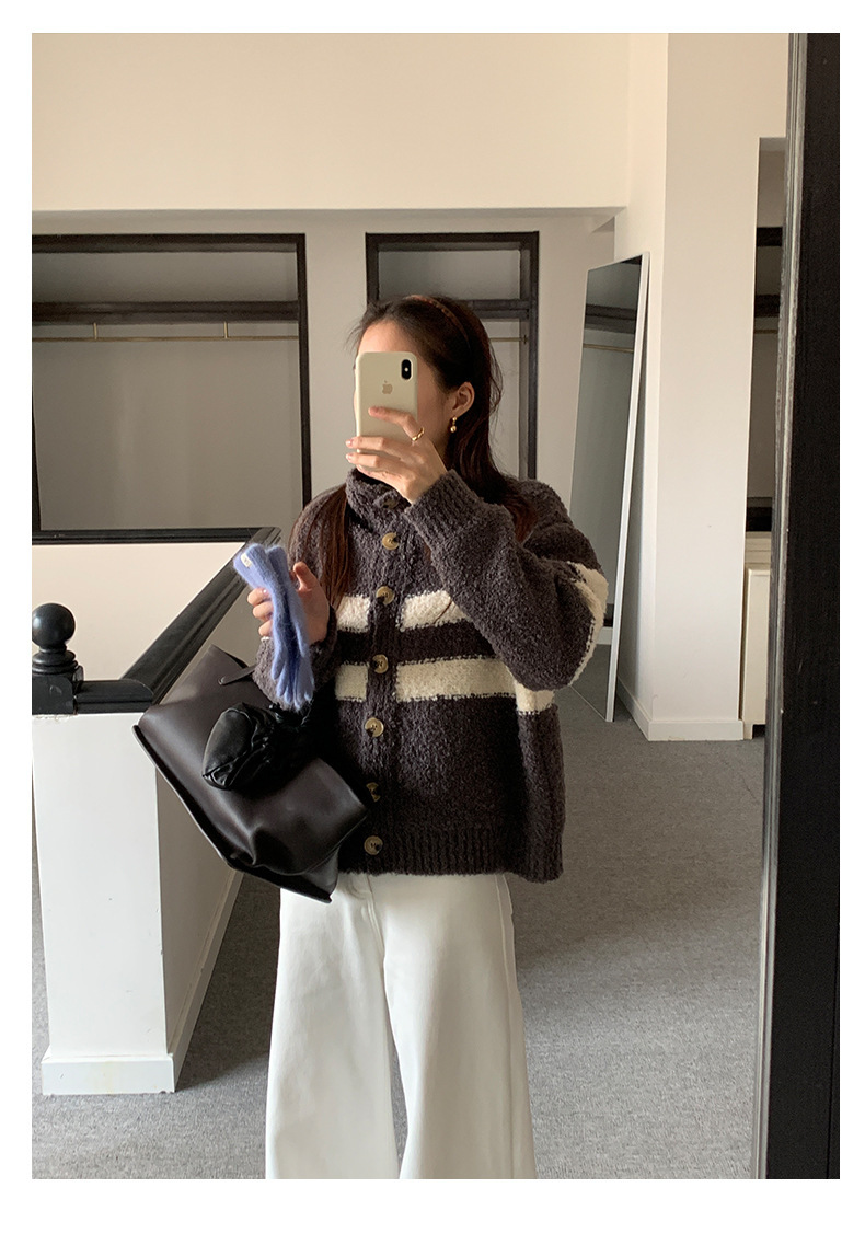 *o-ha-you*【FHZH1EZ5041104】慵懶風撞色條紋開襟毛衣女25冬季新款寬鬆長袖毛織外套-2色