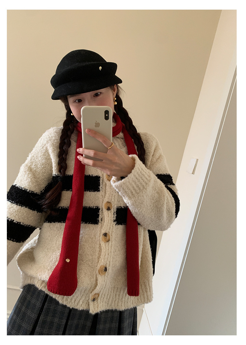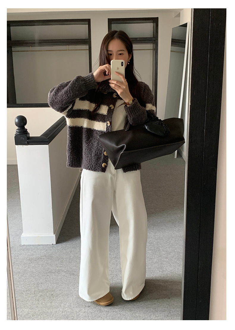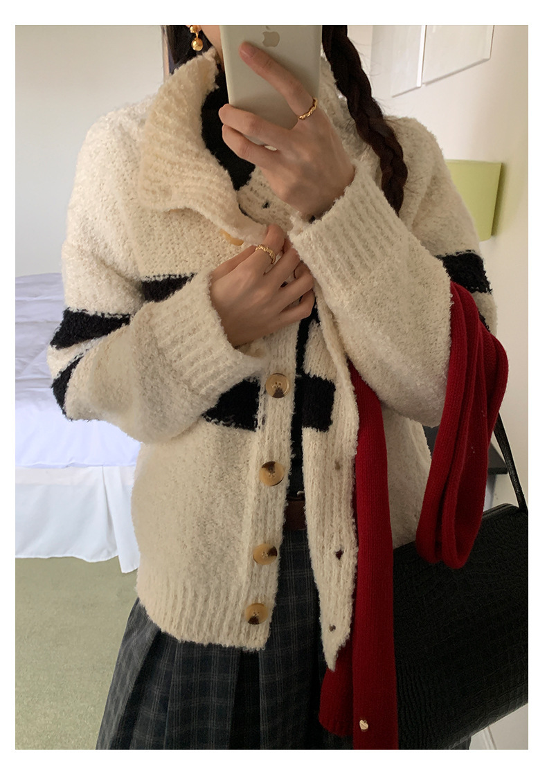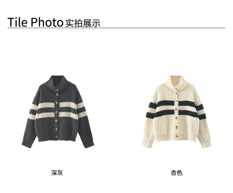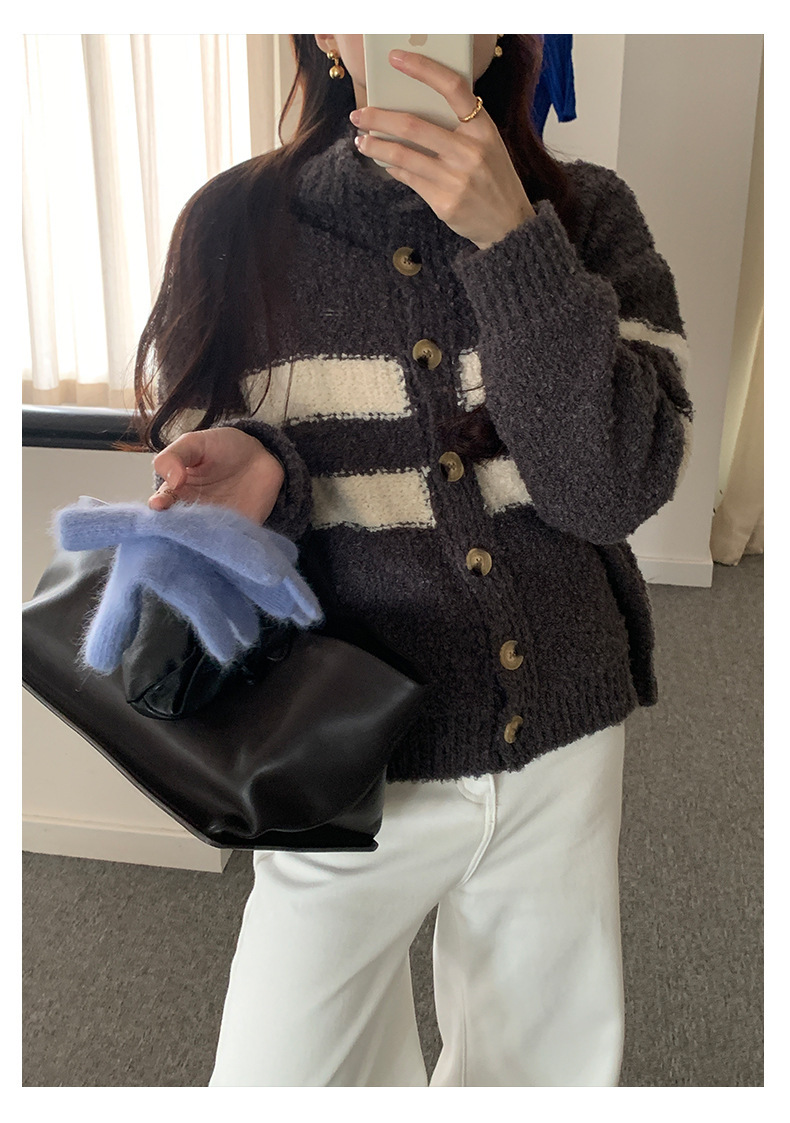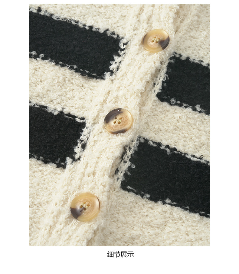*o-ha-you*【FHZH1EZ5041104】慵懶風撞色條紋開襟毛衣女25冬季新款寬鬆長袖毛織外套-2色