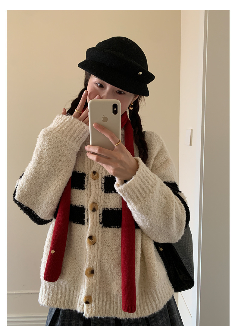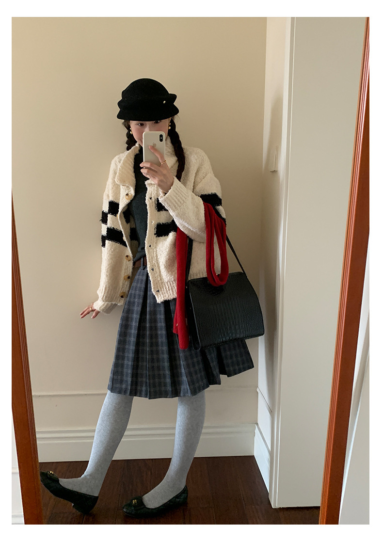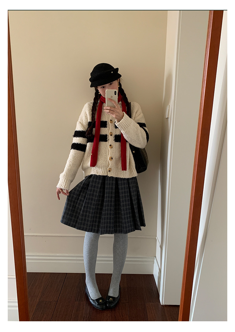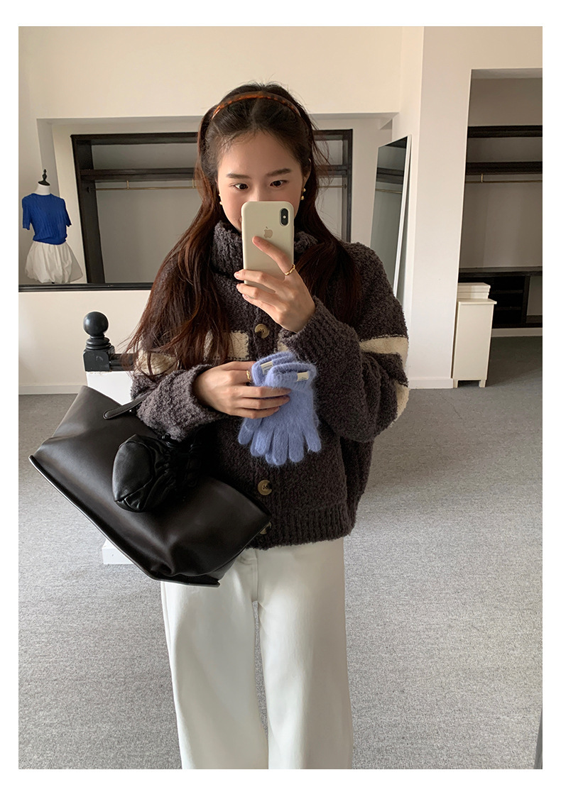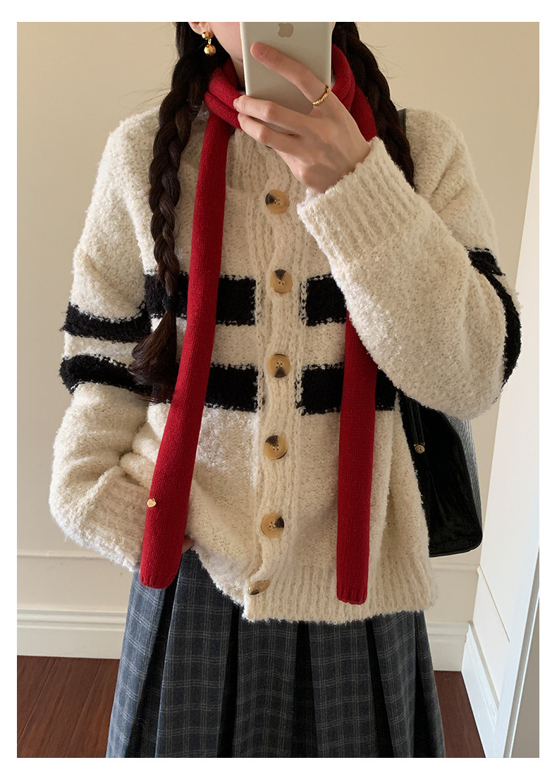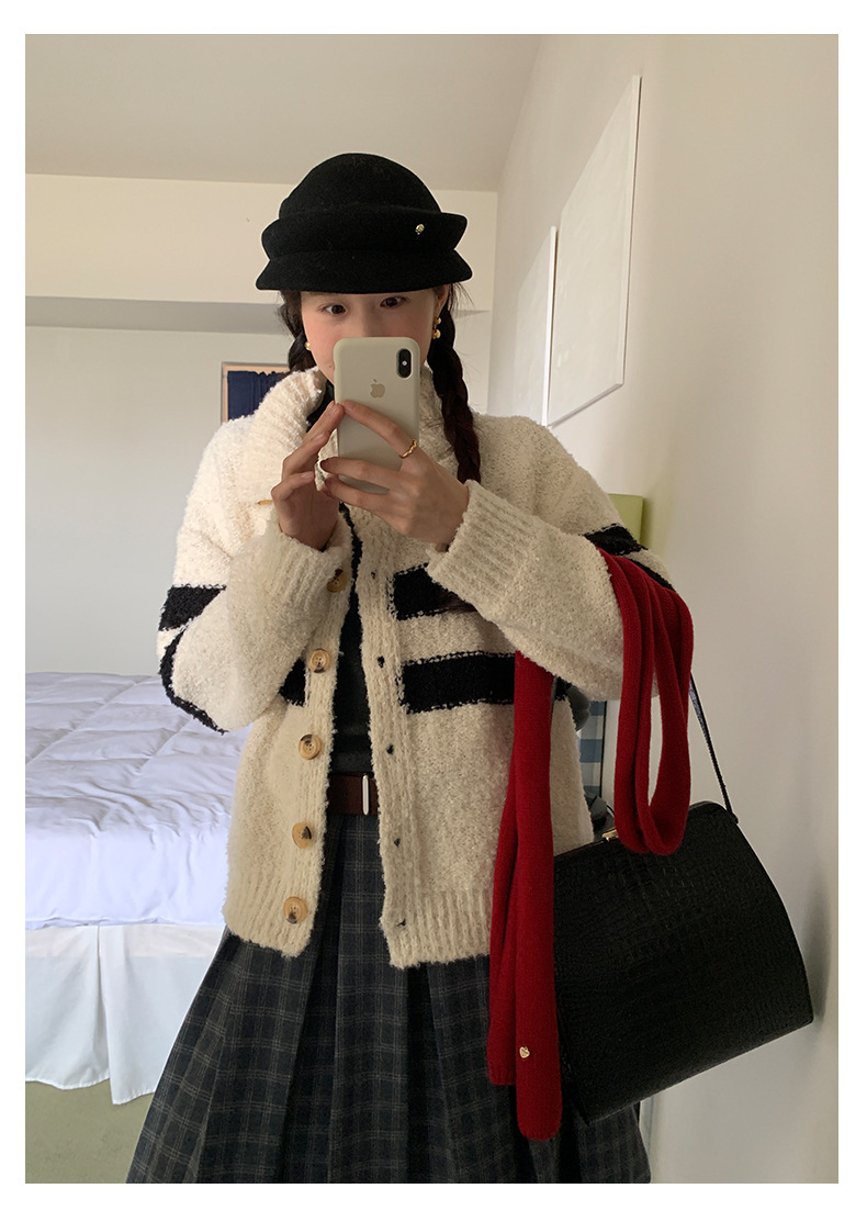 *o-ha-you*【FHZH1EZ5041104】慵懶風撞色條紋開襟毛衣女25冬季新款寬鬆長袖毛織外套-2色