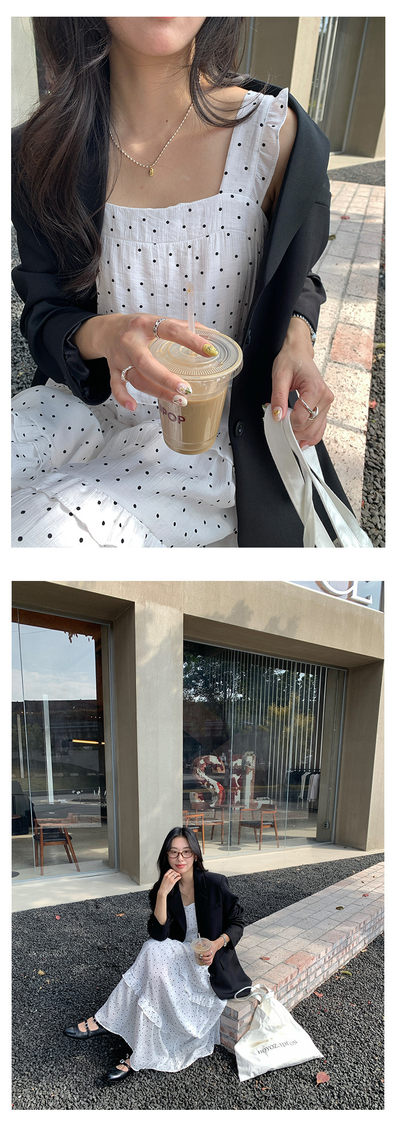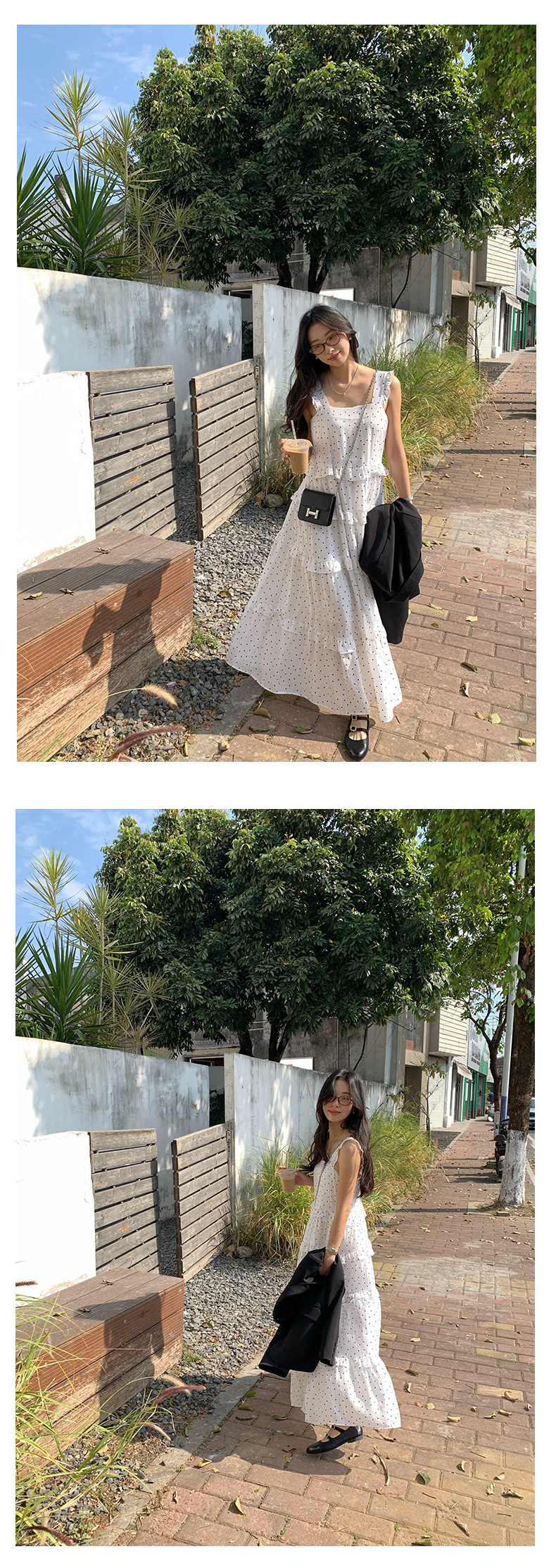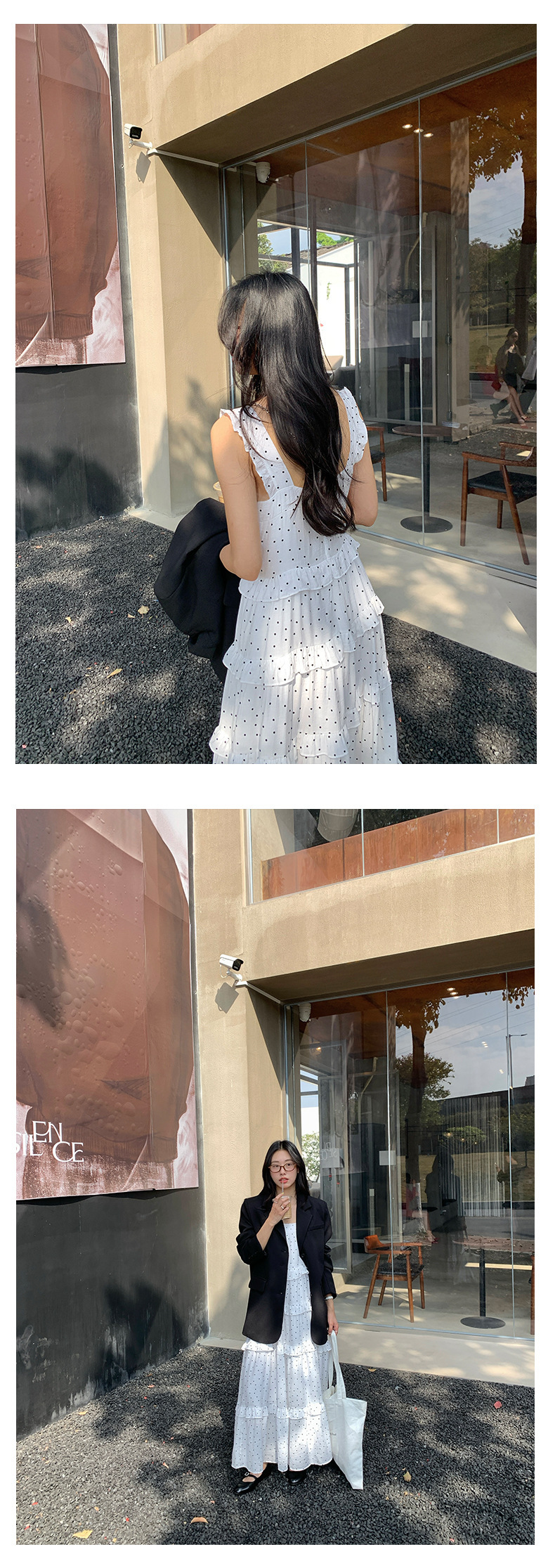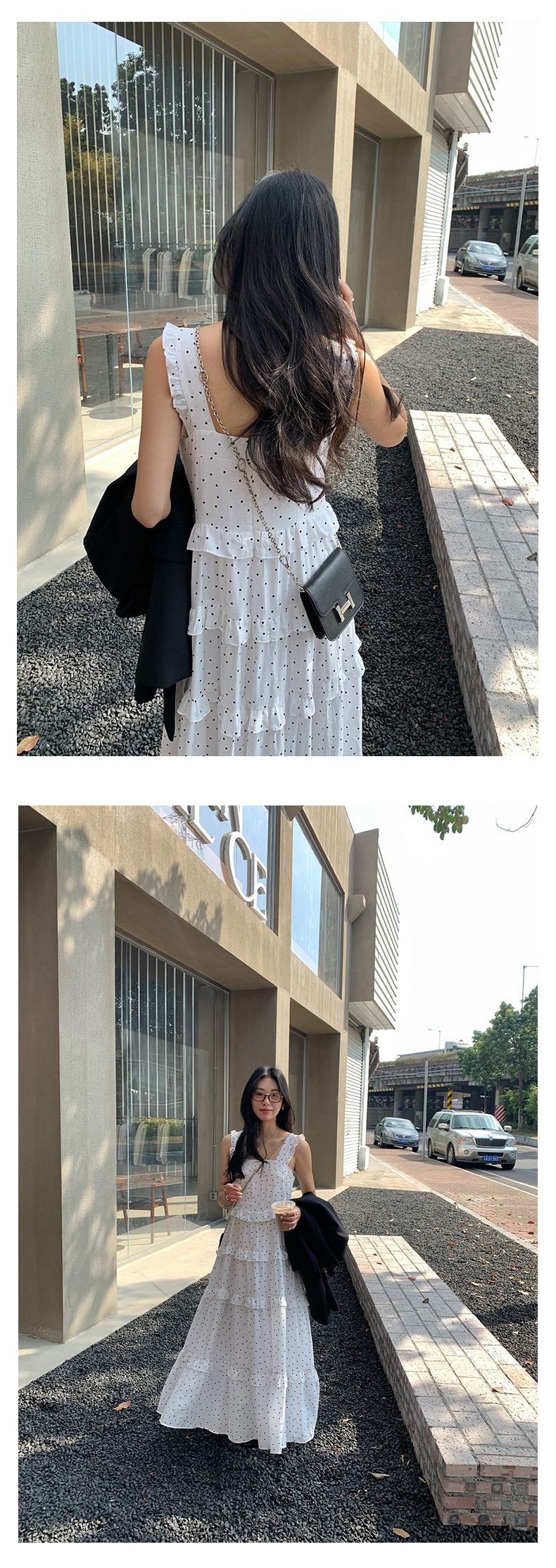 *o-ha-you*【FHZH1FA5010190】甜美風波點荷葉邊吊帶連衣裙2025春收腰顯瘦長裙洋裝-2色-如有需要請先諮詢