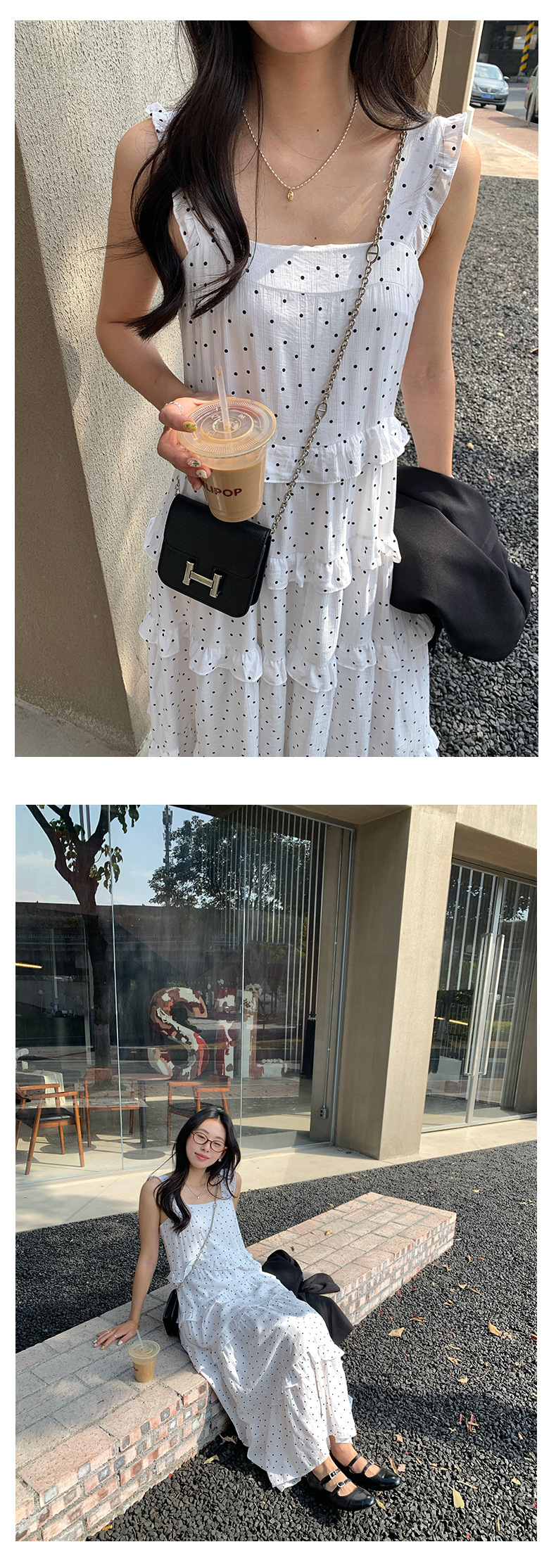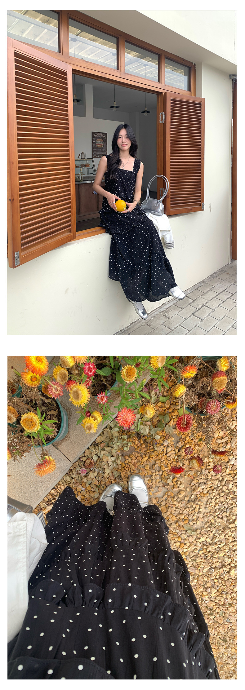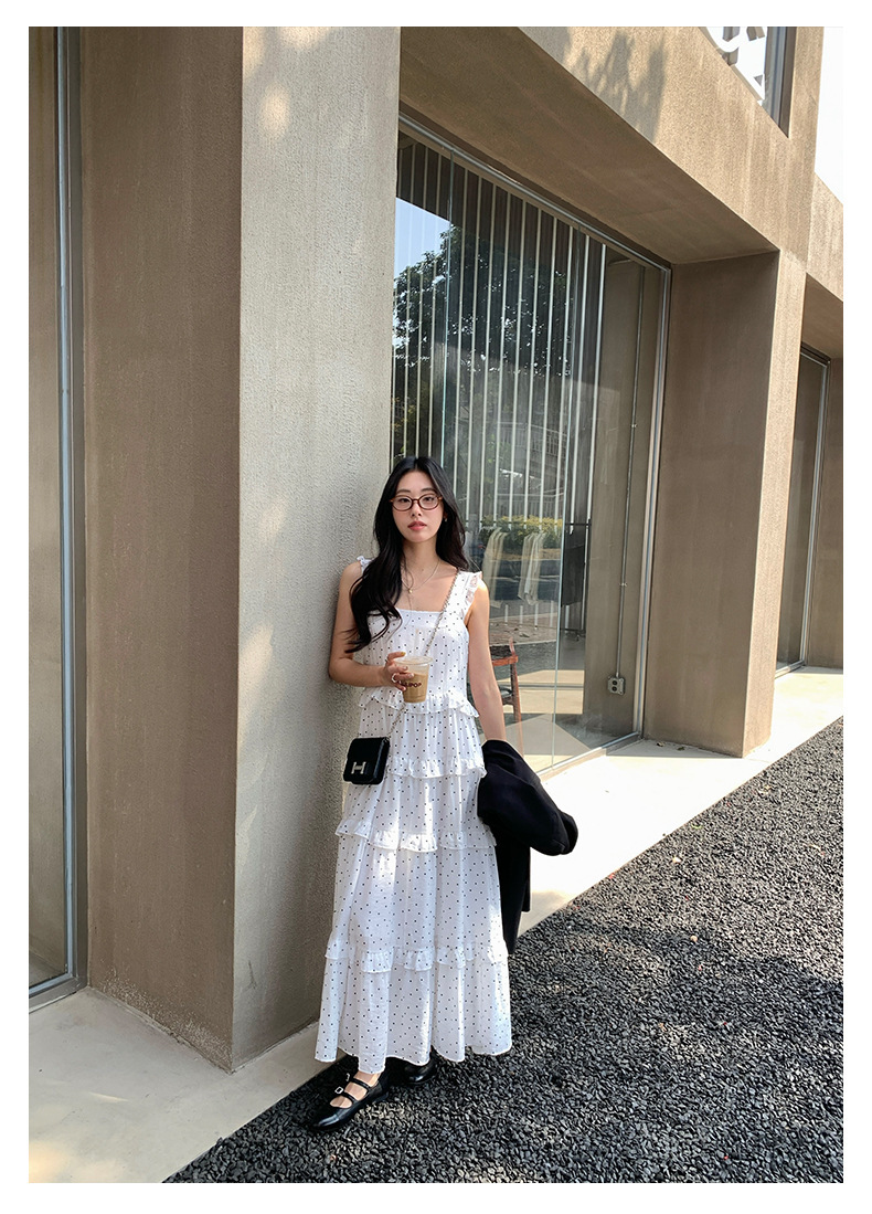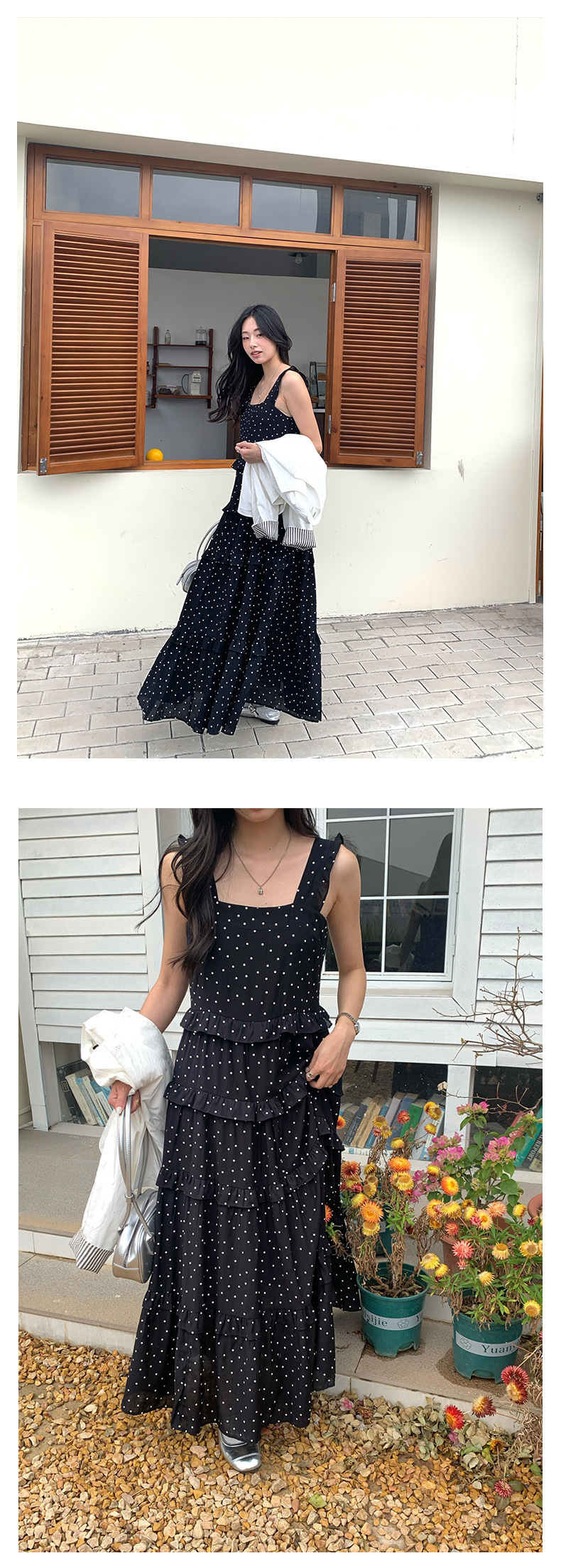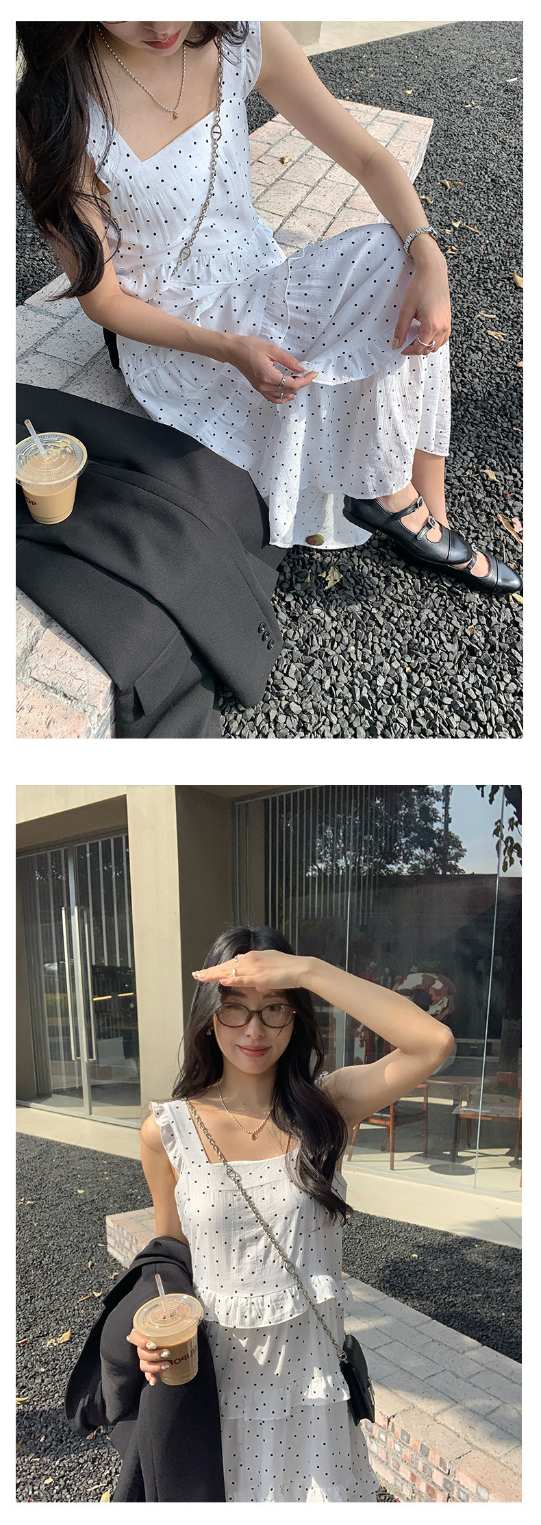 *o-ha-you*【FHZH1FA5010190】甜美風波點荷葉邊吊帶連衣裙2025春收腰顯瘦長裙洋裝-2色-如有需要請先諮詢