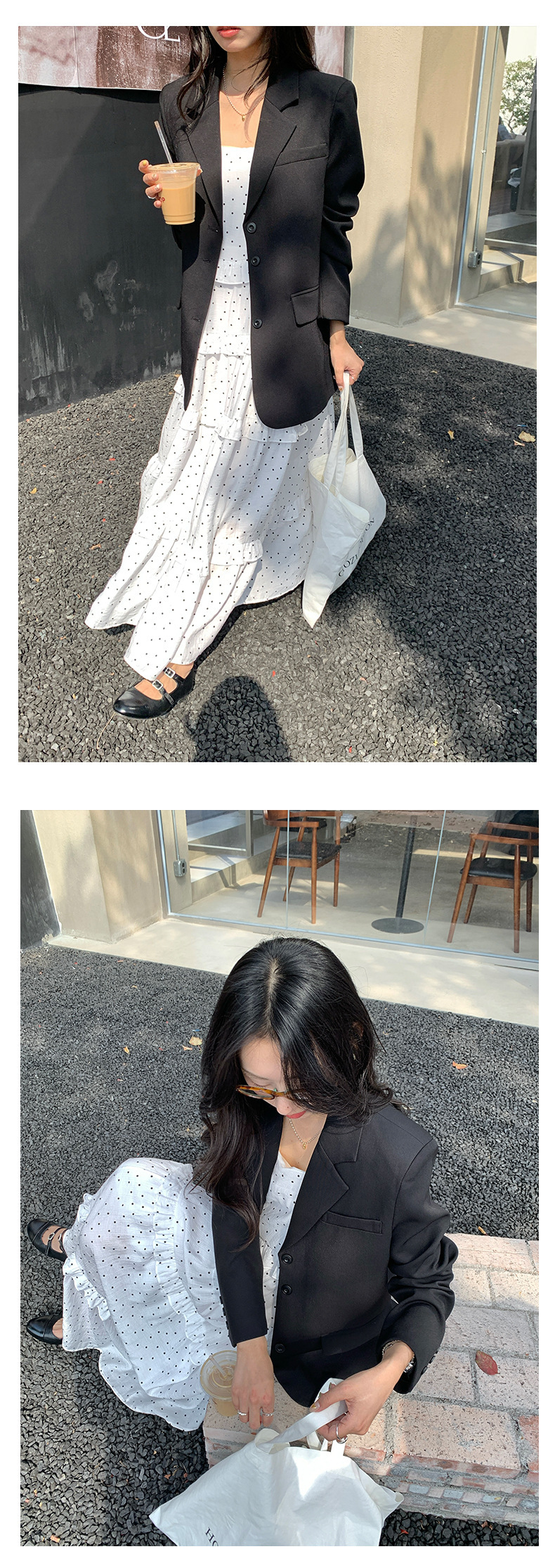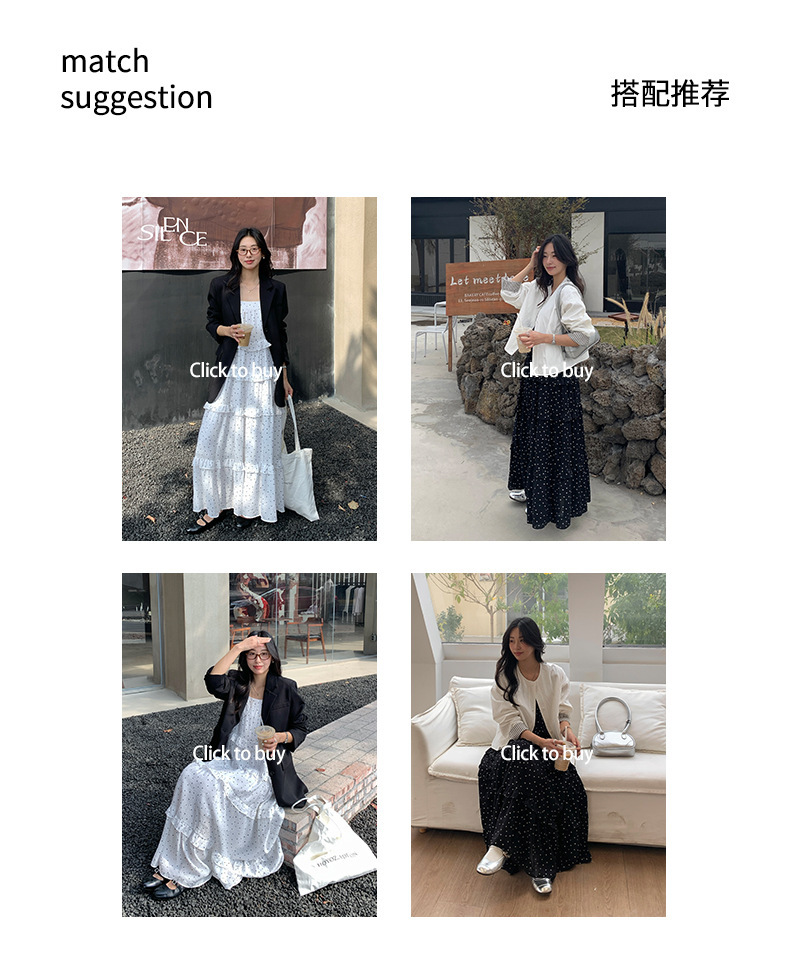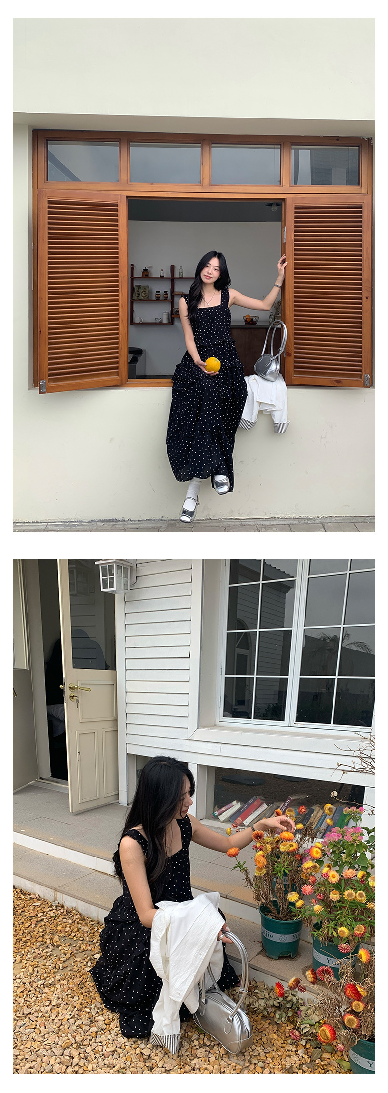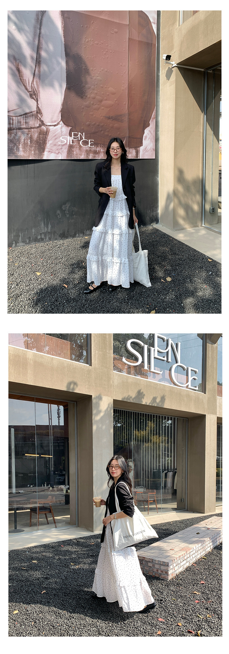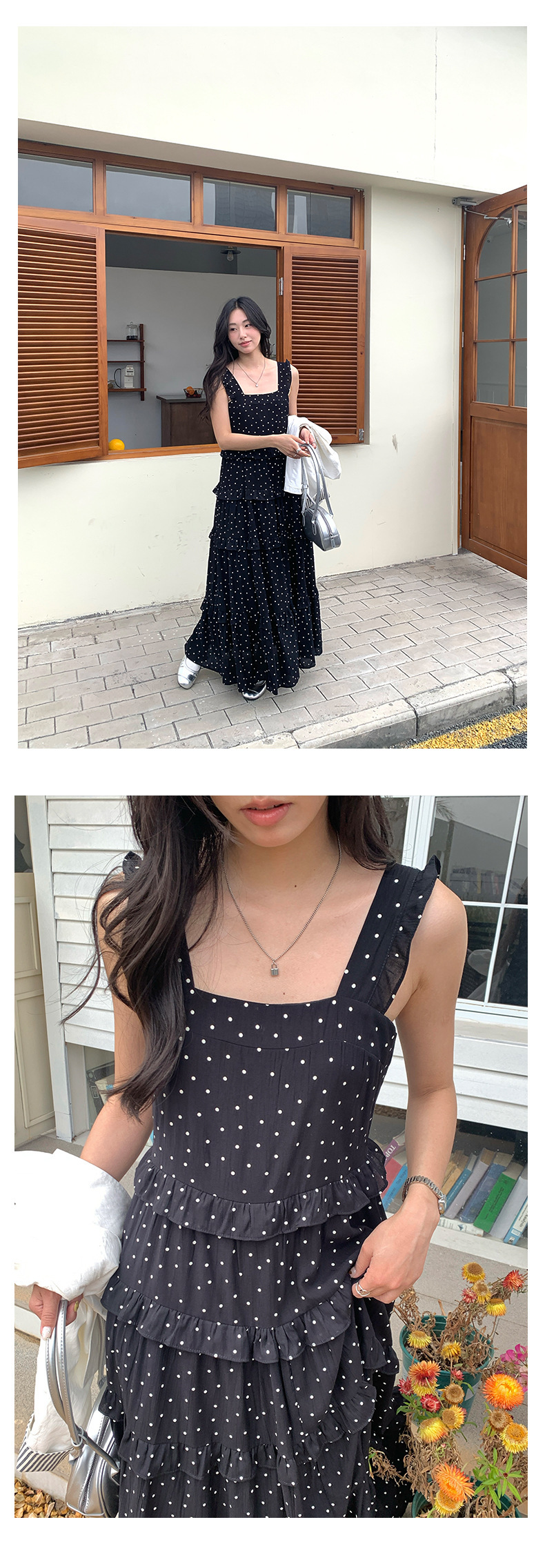 *o-ha-you*【FHZH1FA5010190】甜美風波點荷葉邊吊帶連衣裙2025春收腰顯瘦長裙洋裝-2色-如有需要請先諮詢