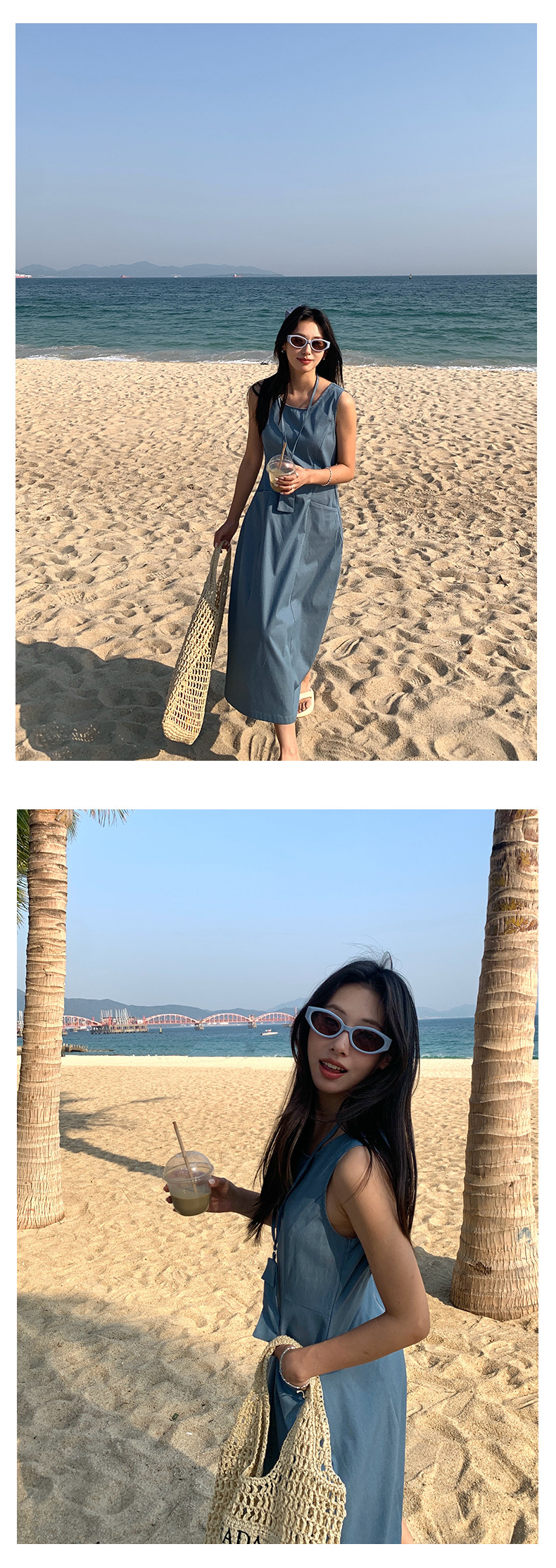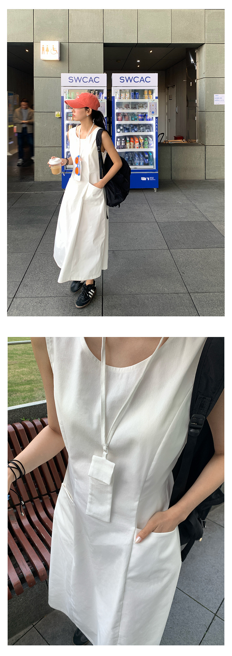 *o-ha-you*【FHZH1FA5020328】無袖修身剪裁口袋連衣裙搭配手機包2025夏款優雅氣質洋裝-2色-如有需要請先諮詢