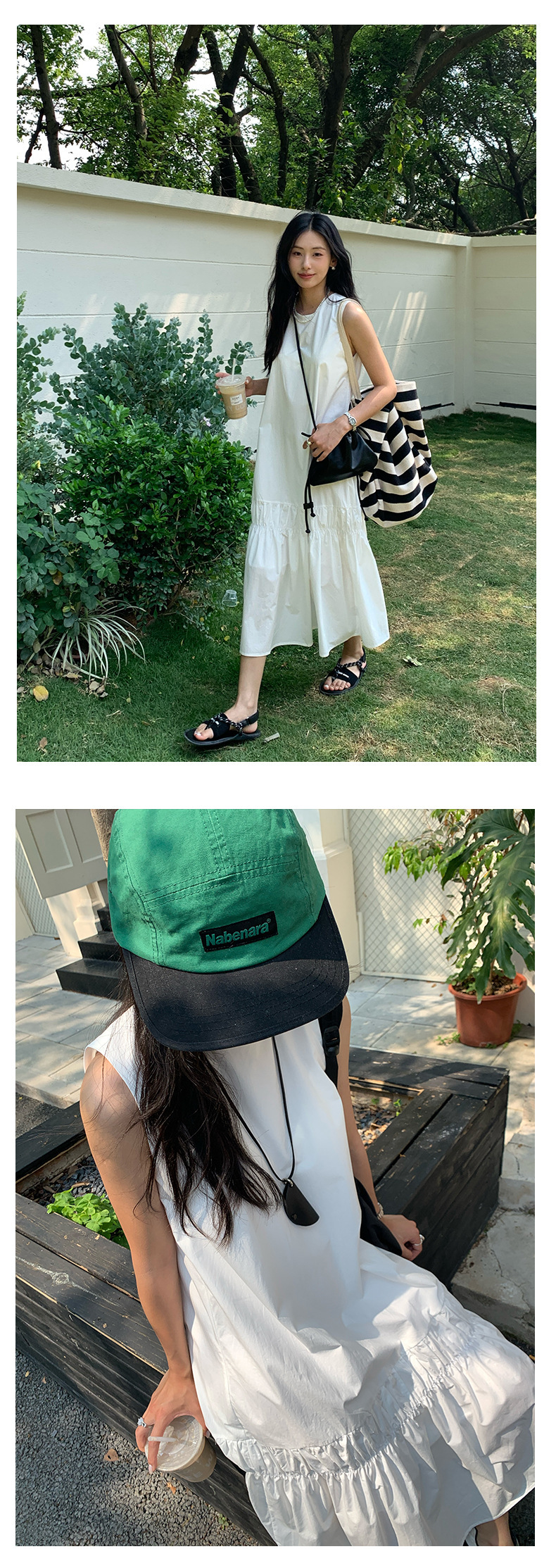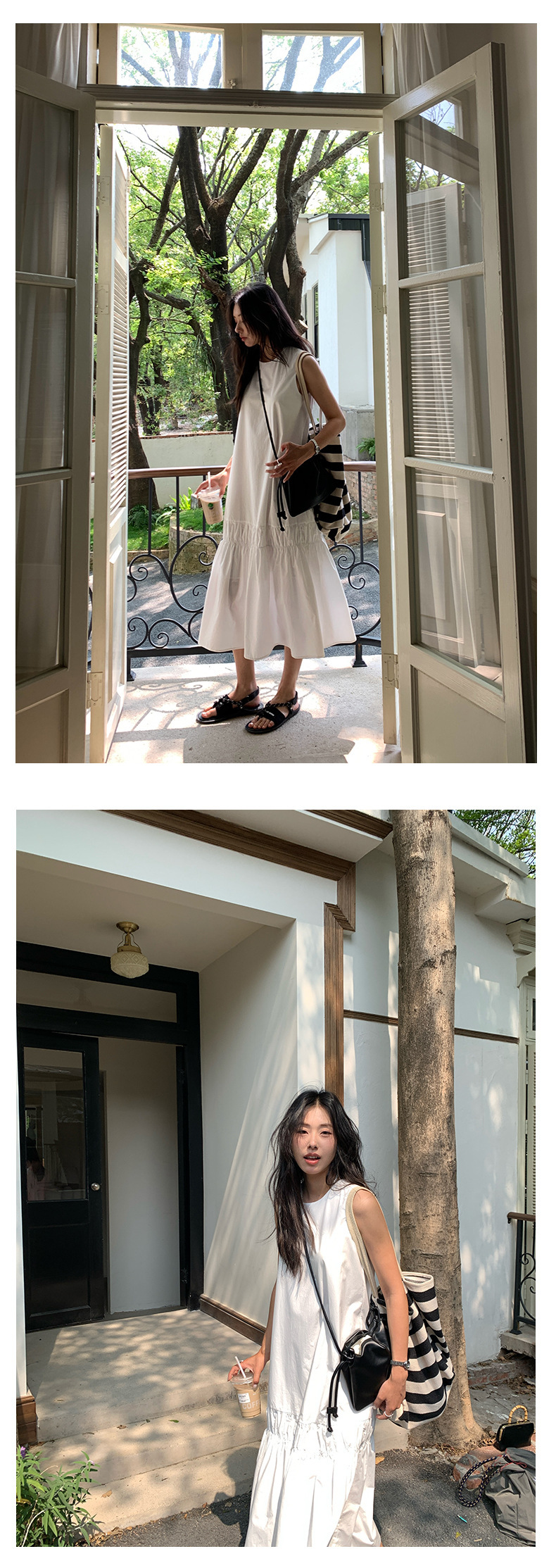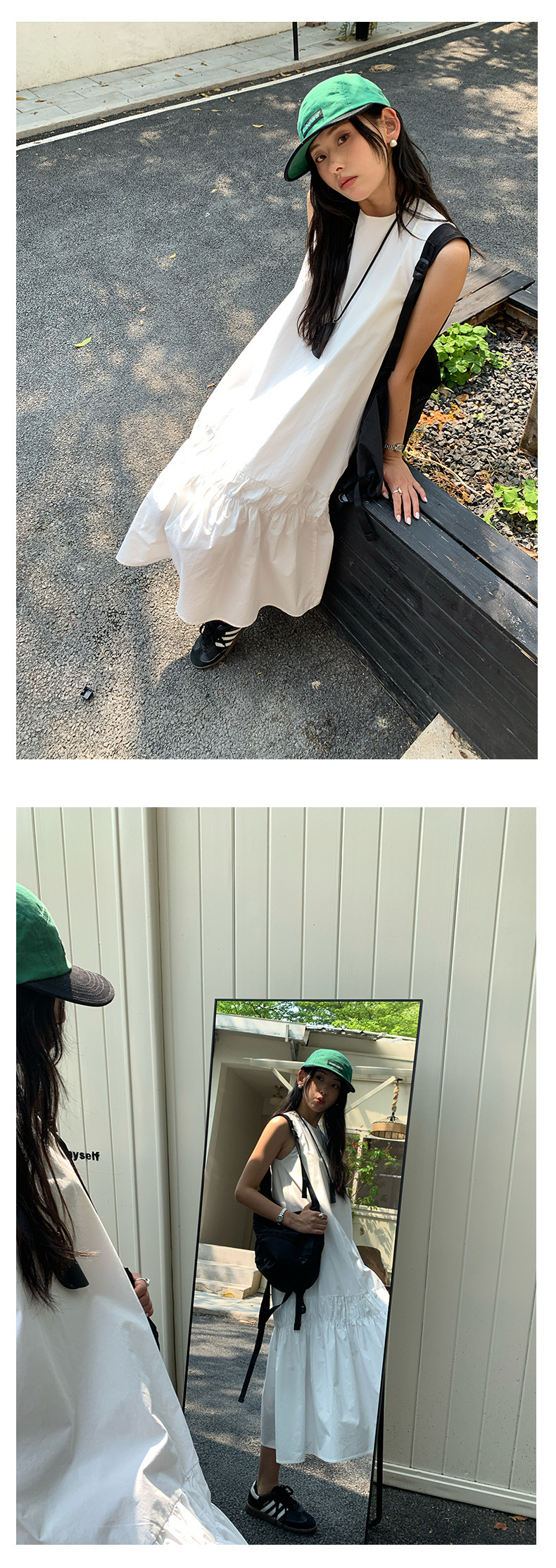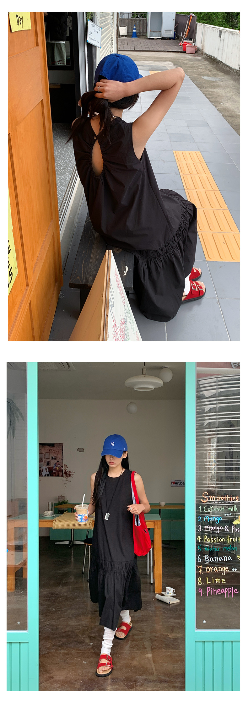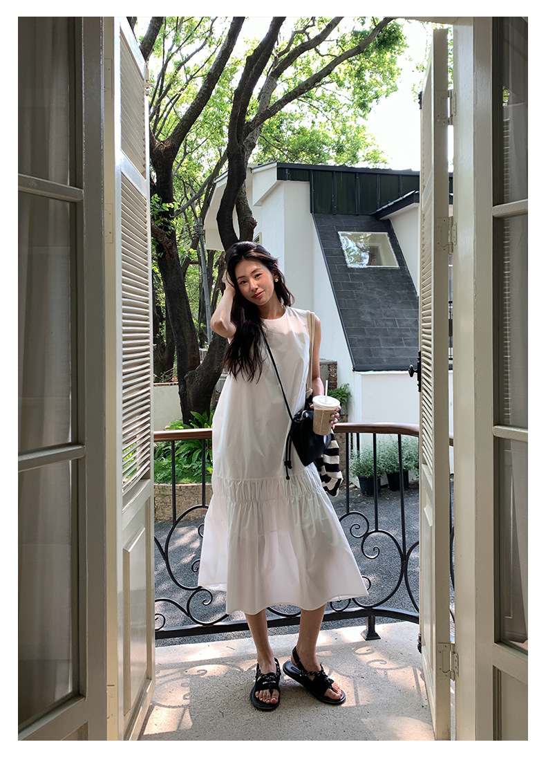 *o-ha-you*【FHZH1FA5020360】後背鏤空紐扣無袖荷葉邊裙擺連衣裙2025夏款清新優雅洋裝-2色-如有需要請先諮詢