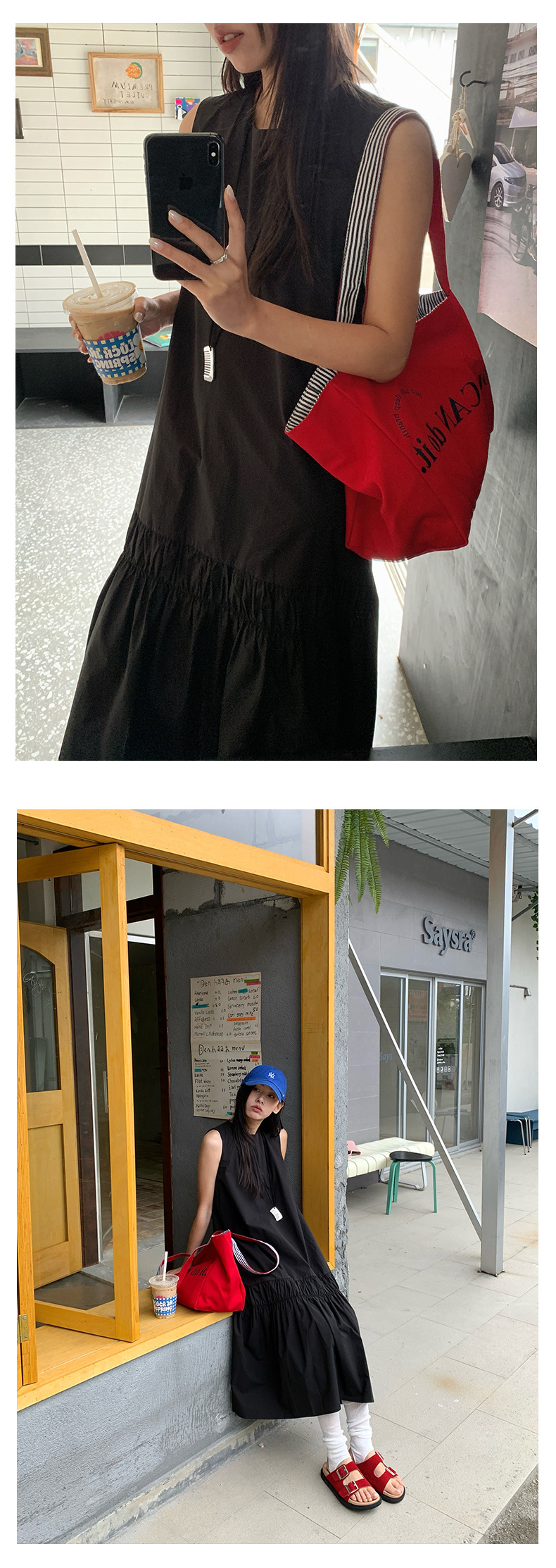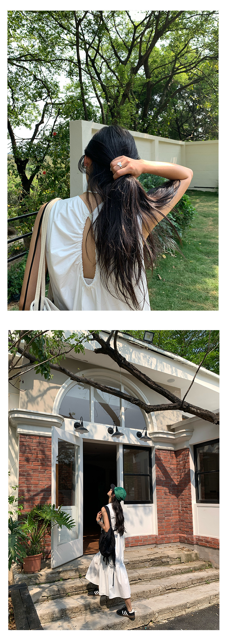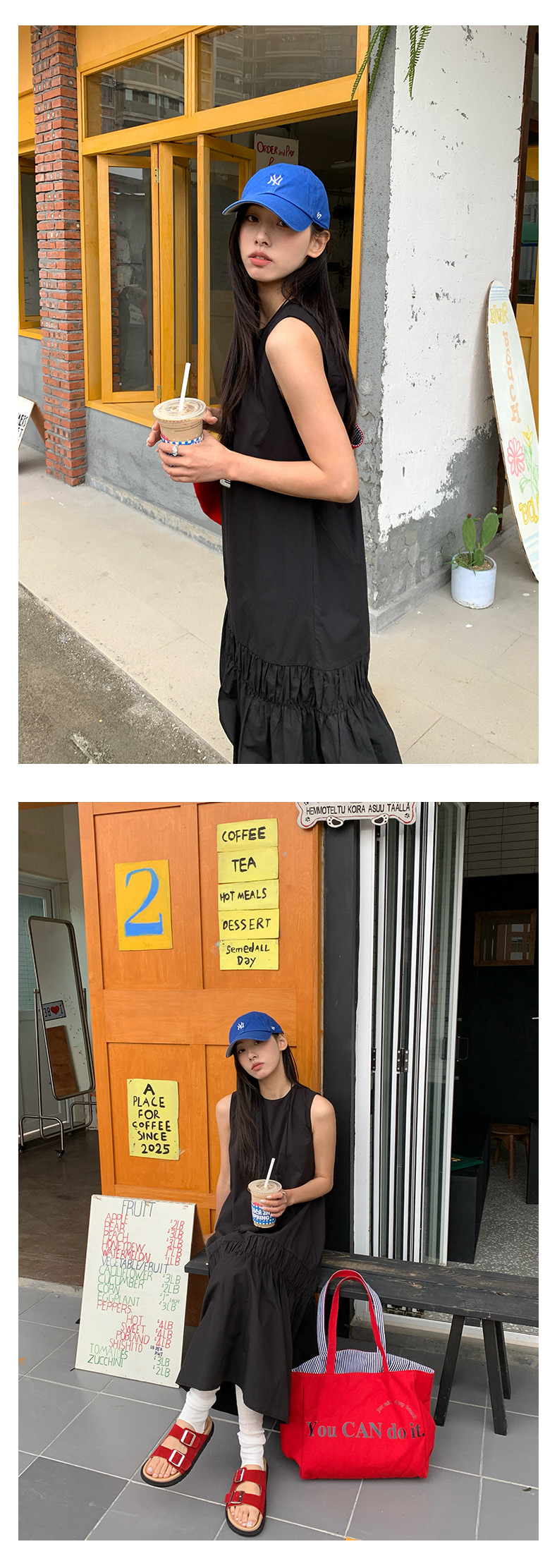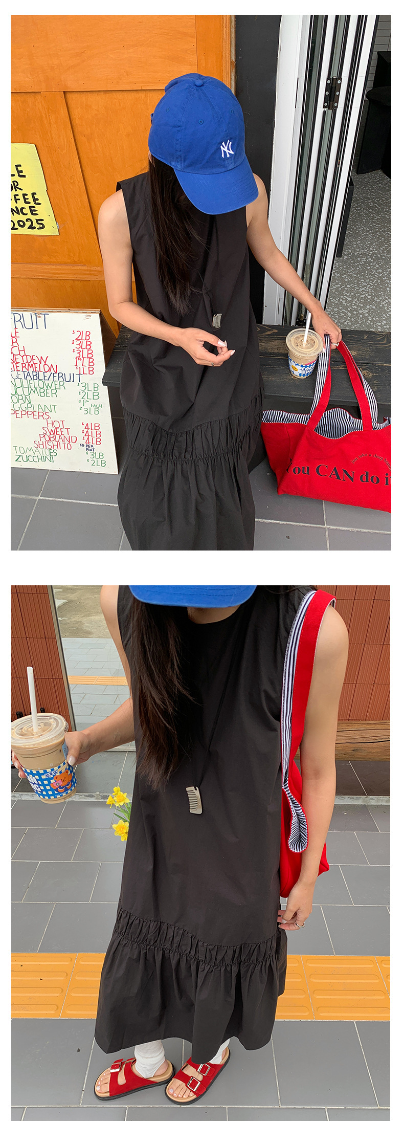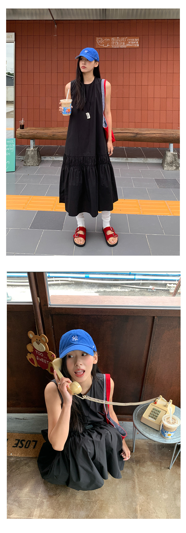 *o-ha-you*【FHZH1FA5020360】後背鏤空紐扣無袖荷葉邊裙擺連衣裙2025夏款清新優雅洋裝-2色-如有需要請先諮詢