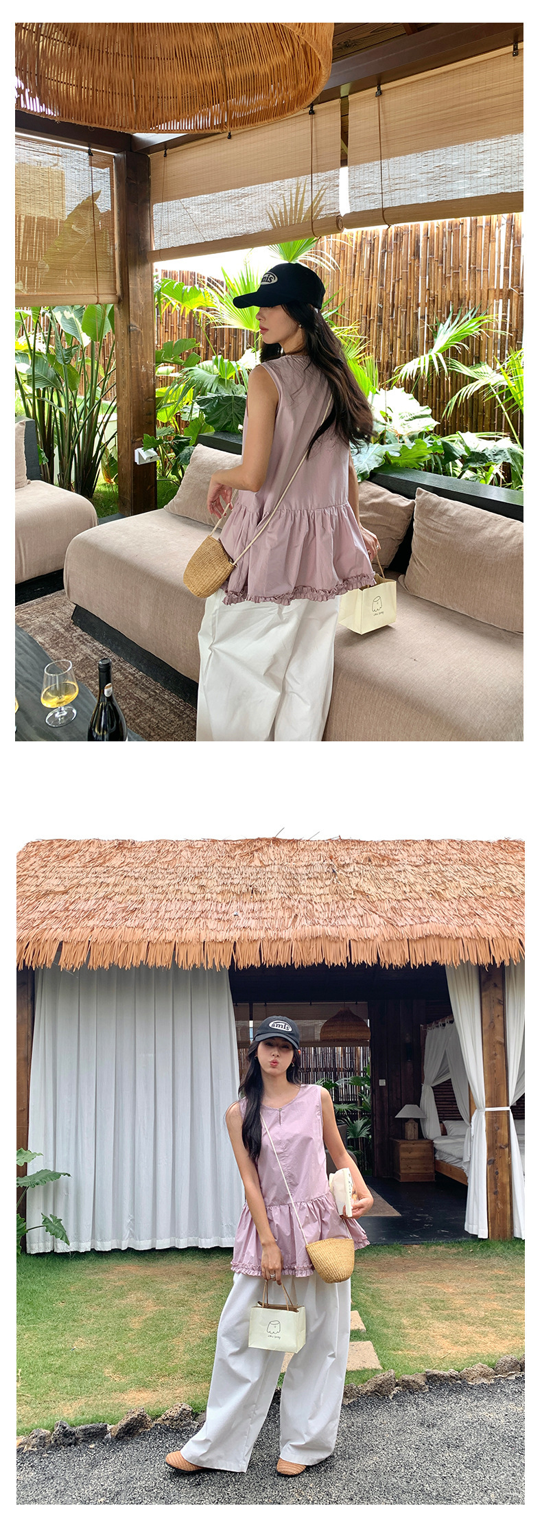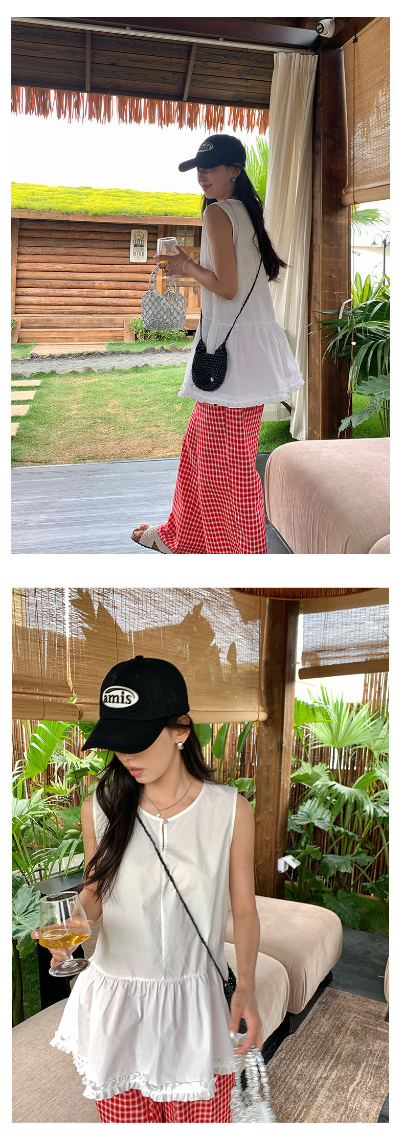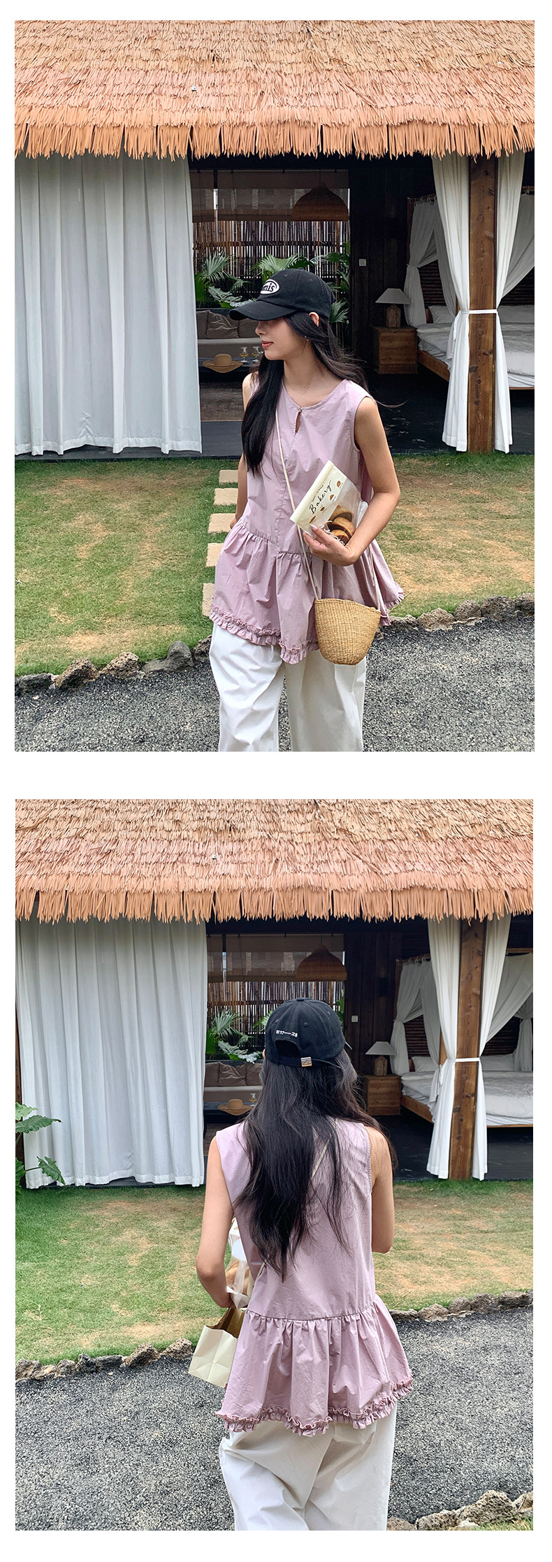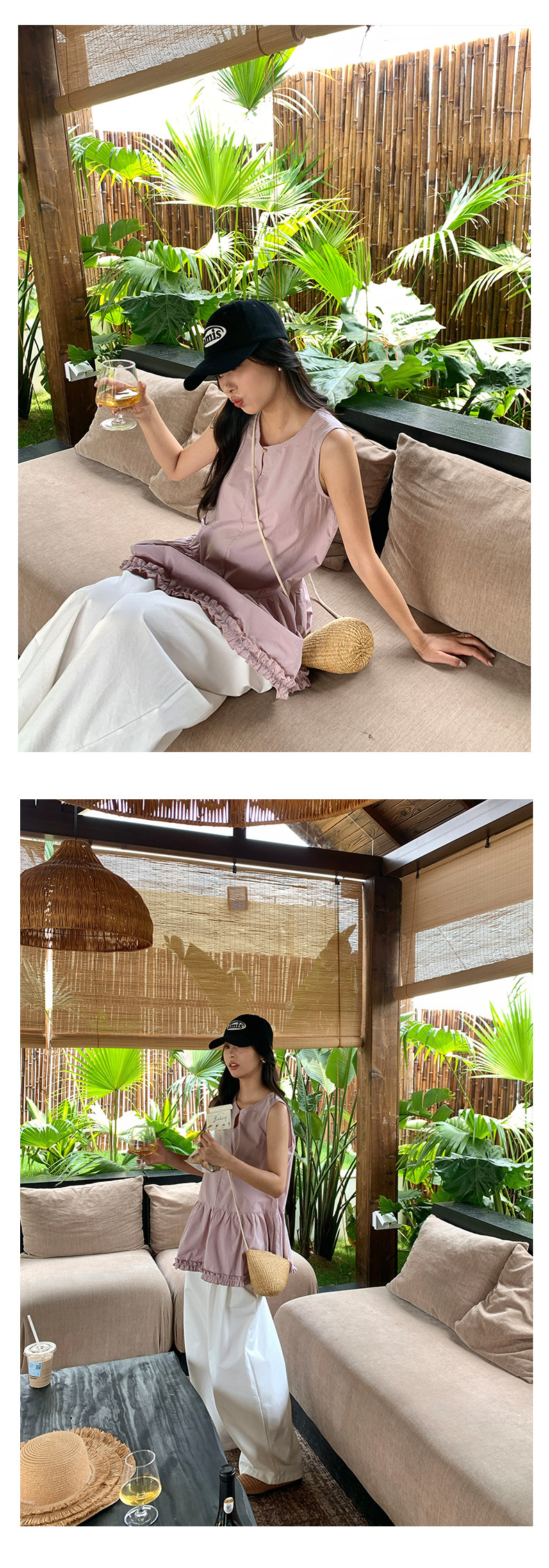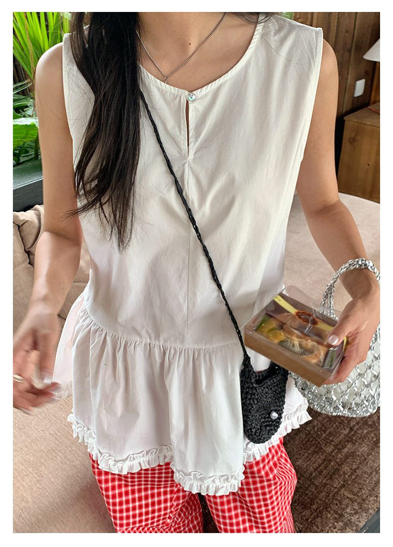 *o-ha-you*【FHZH1FA5020374】韓系小清新無袖襯衫夏季新款甜美木耳拼接圓領連衣裙洋裝-2色