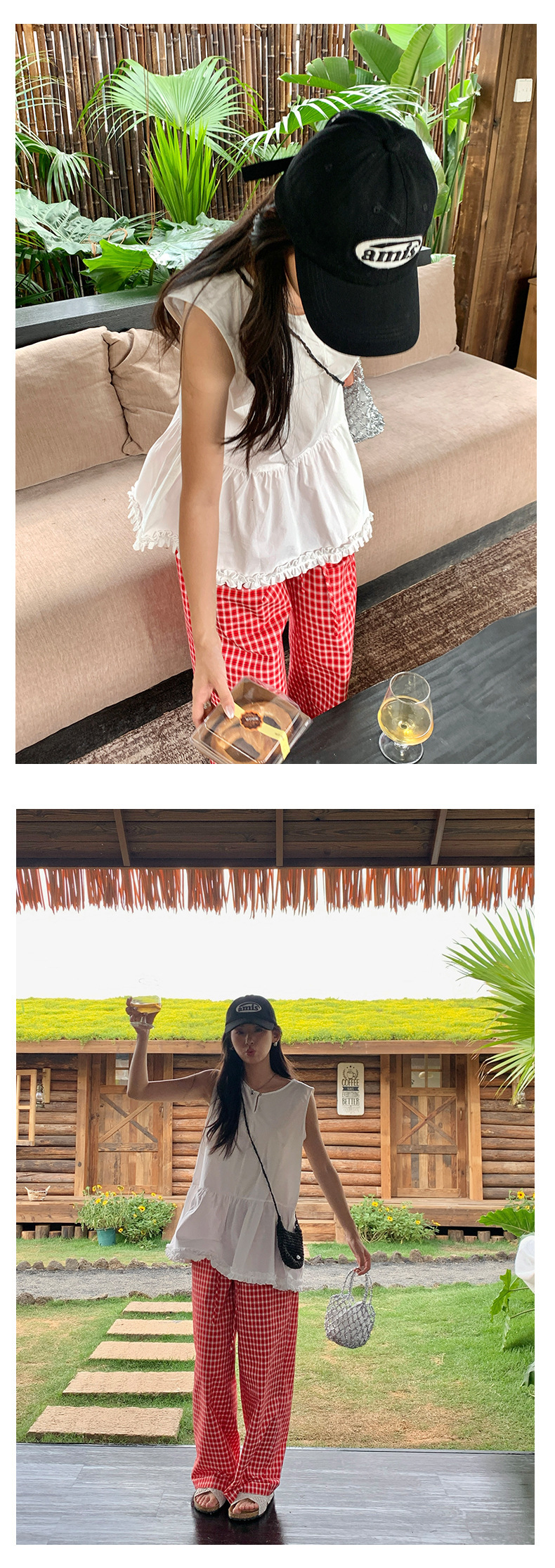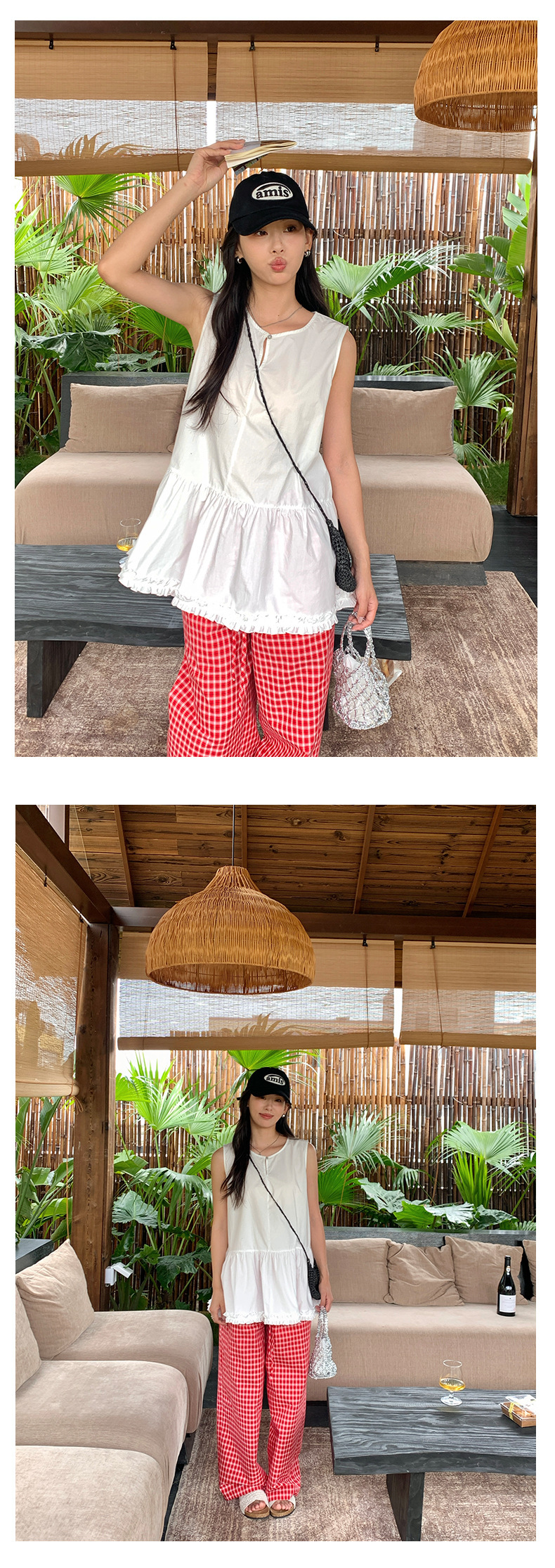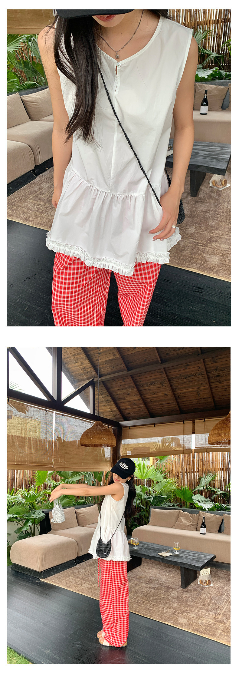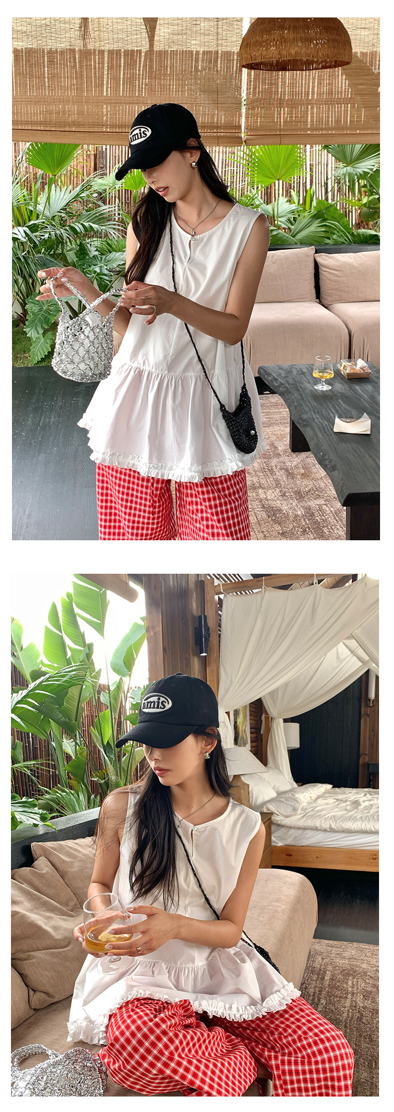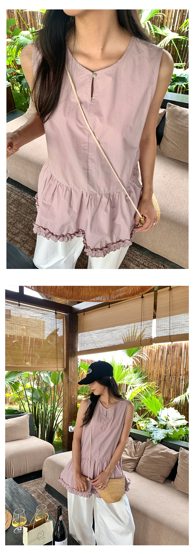 *o-ha-you*【FHZH1FA5020374】韓系小清新無袖襯衫夏季新款甜美木耳拼接圓領連衣裙洋裝-2色