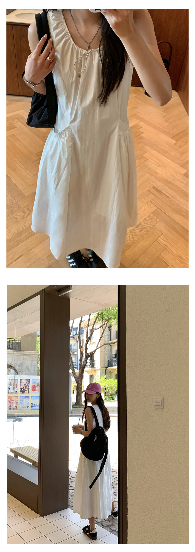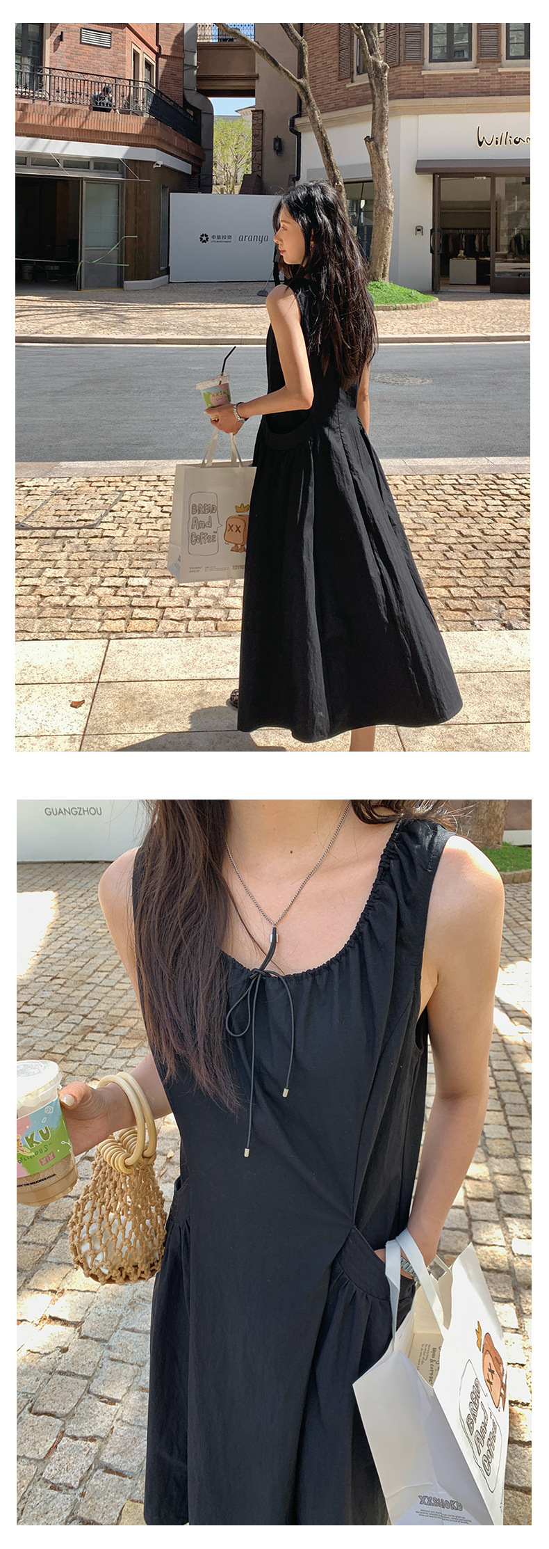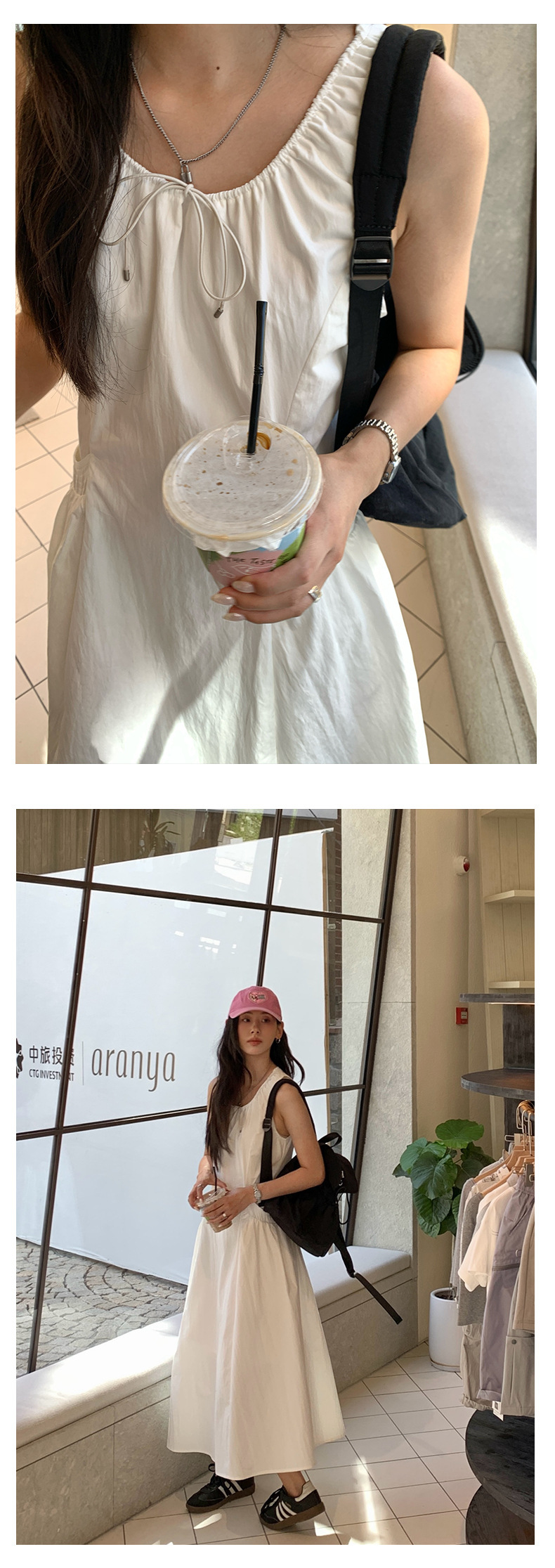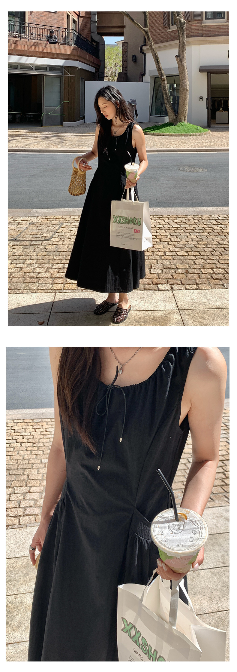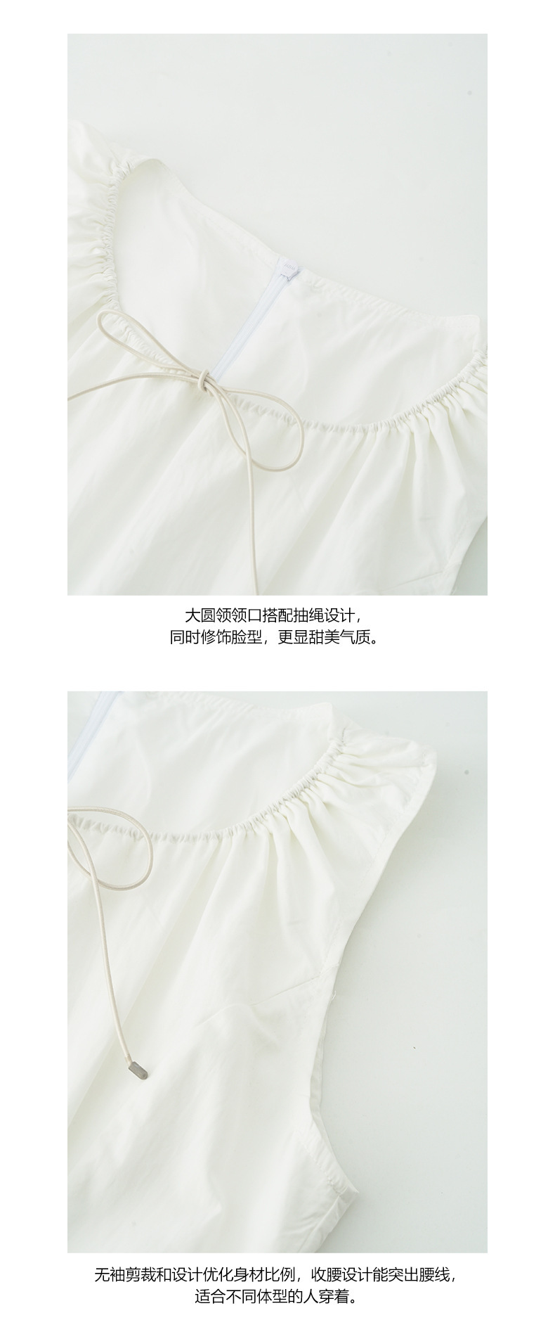 *o-ha-you*【FHZH1FA5020376】抽繩領口精緻褶皺收腰無袖連衣裙2025夏簡約時尚氣質洋裝-2色-如有需要請先諮詢