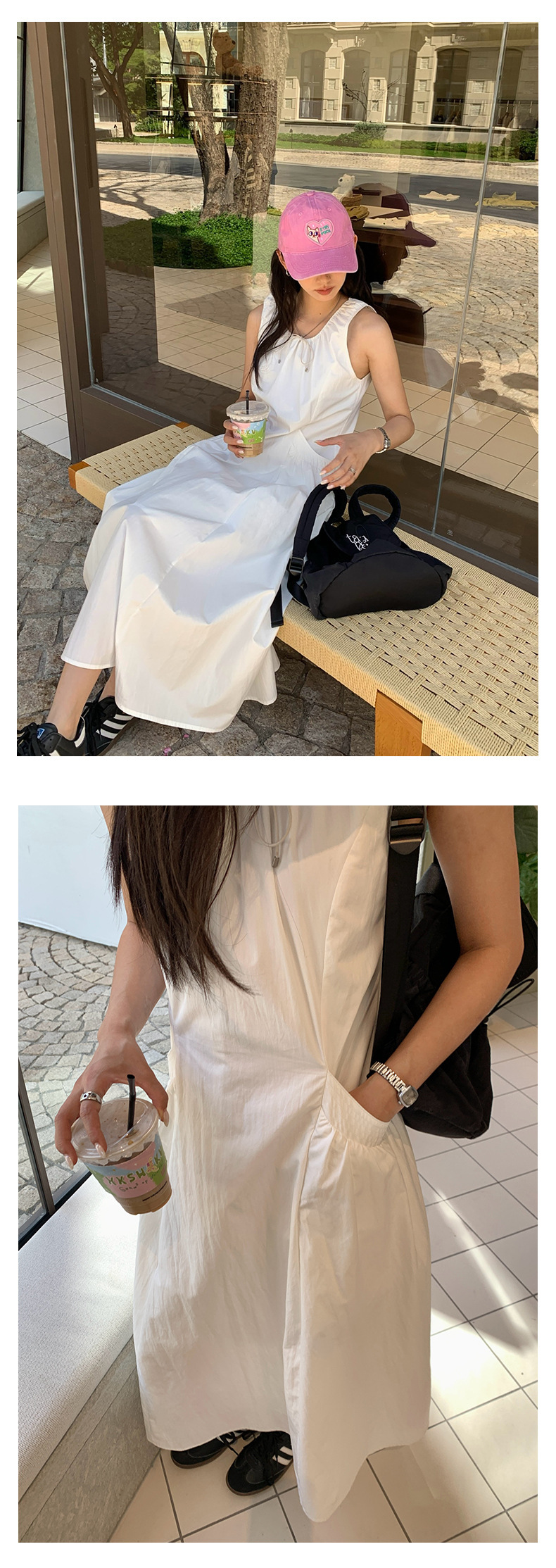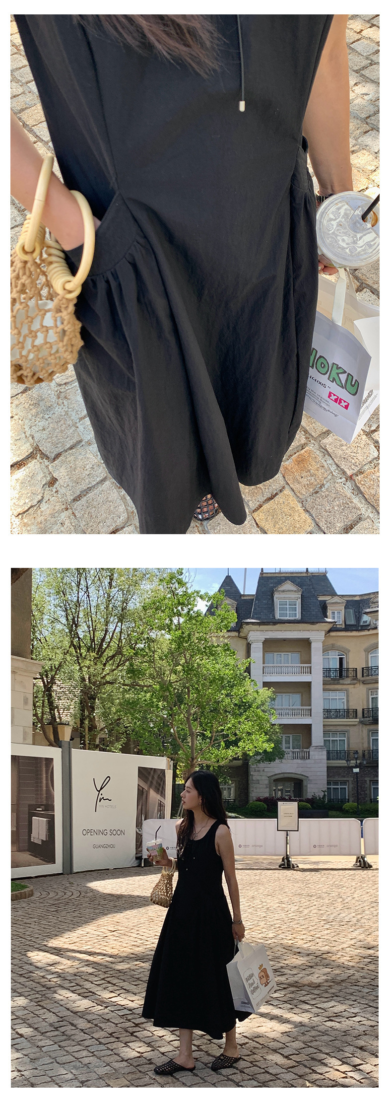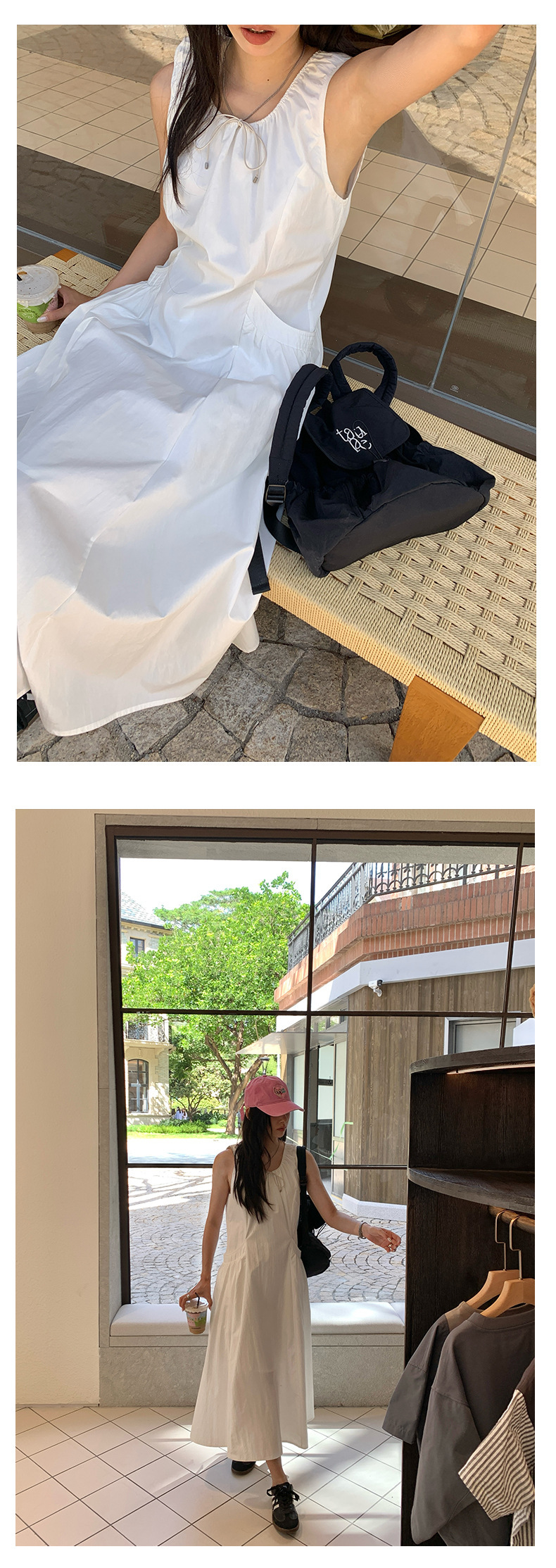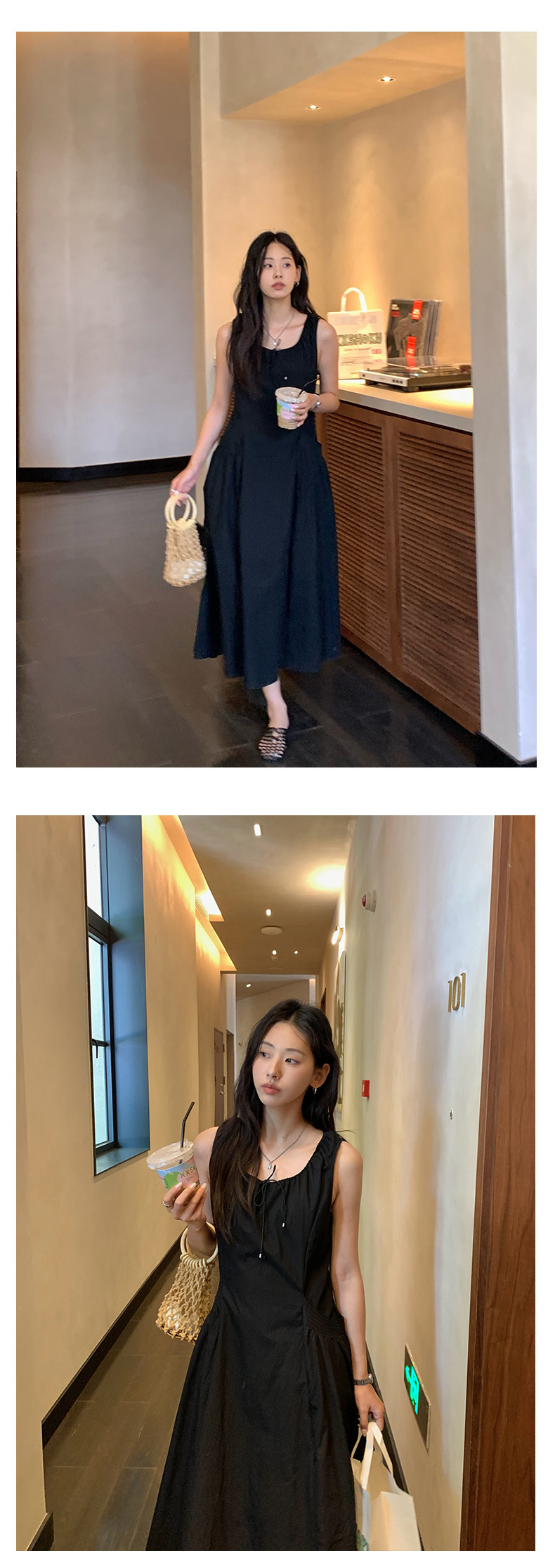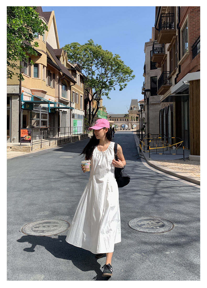 *o-ha-you*【FHZH1FA5020376】抽繩領口精緻褶皺收腰無袖連衣裙2025夏簡約時尚氣質洋裝-2色-如有需要請先諮詢
