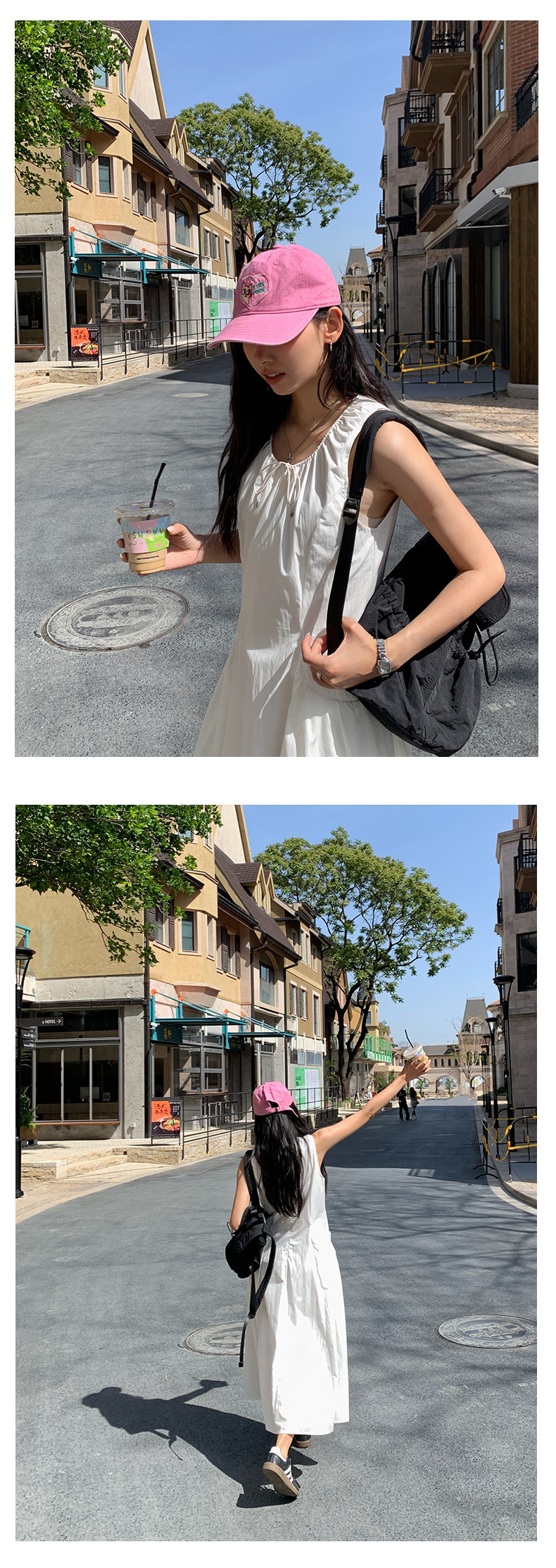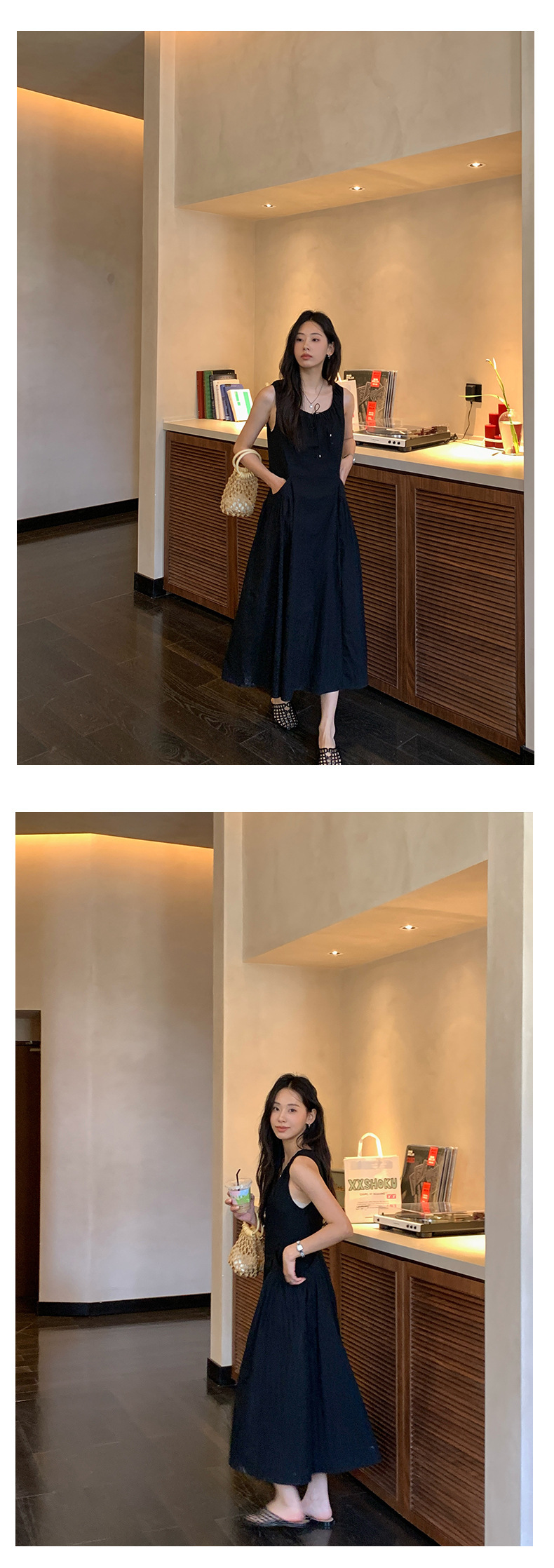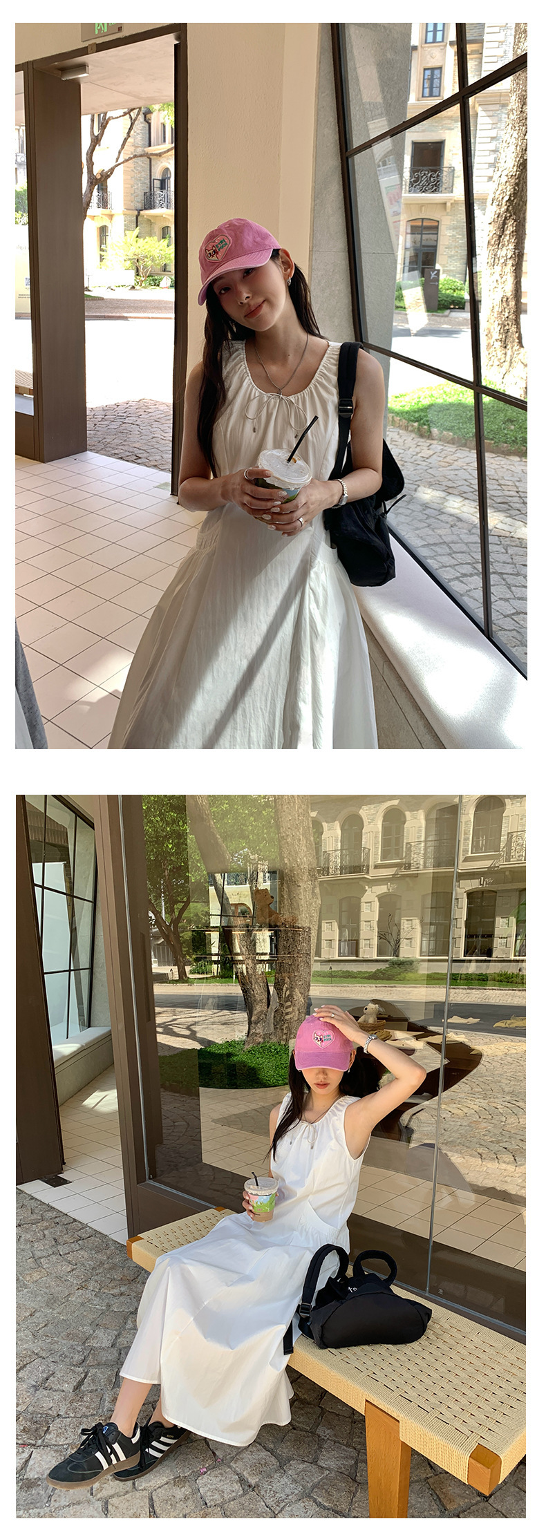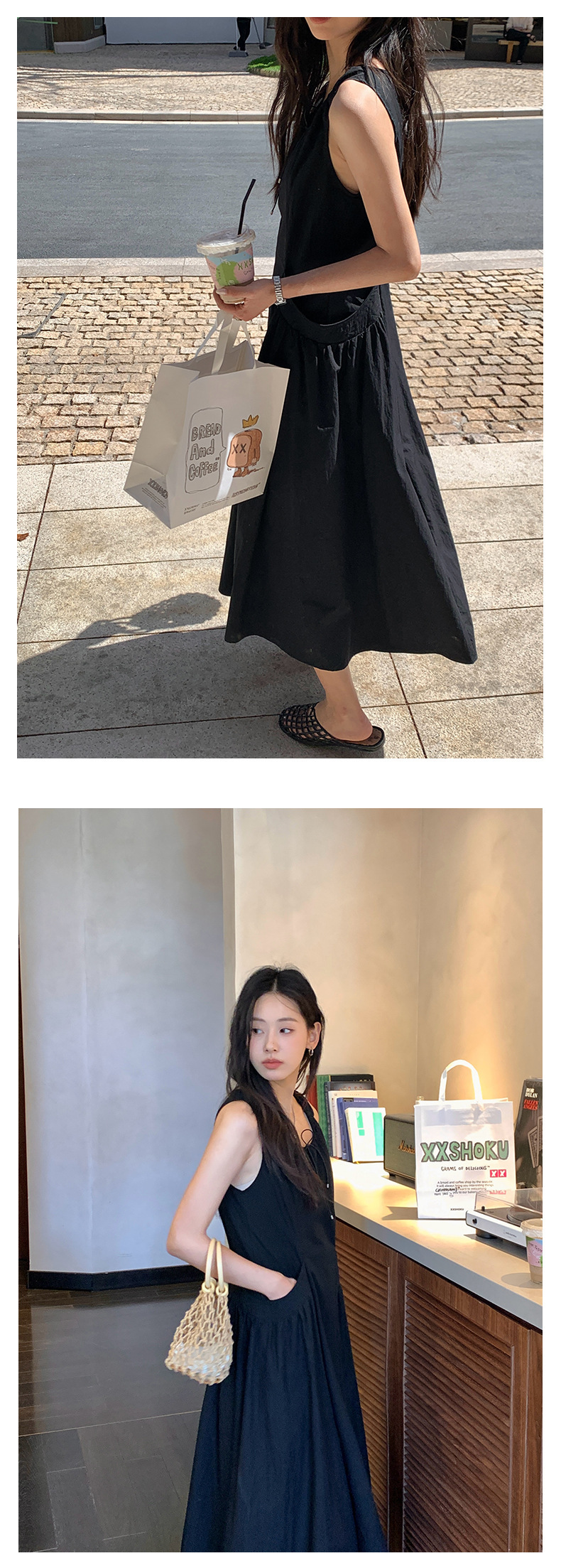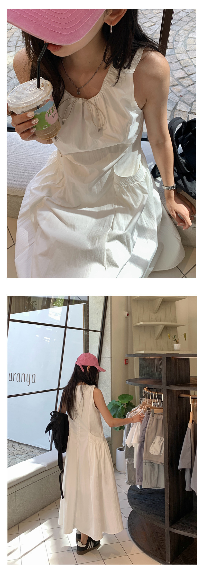 *o-ha-you*【FHZH1FA5020376】抽繩領口精緻褶皺收腰無袖連衣裙2025夏簡約時尚氣質洋裝-2色-如有需要請先諮詢