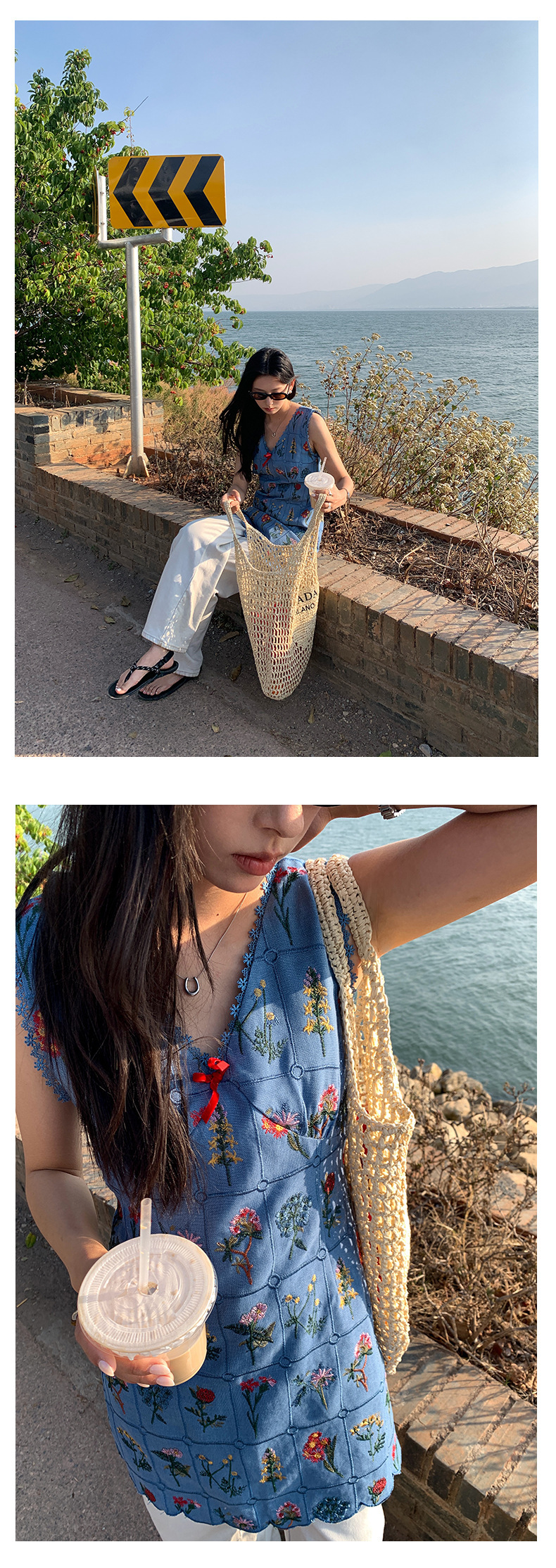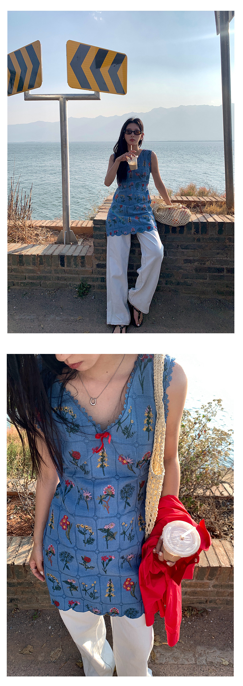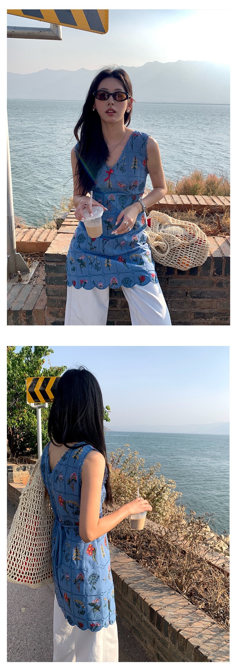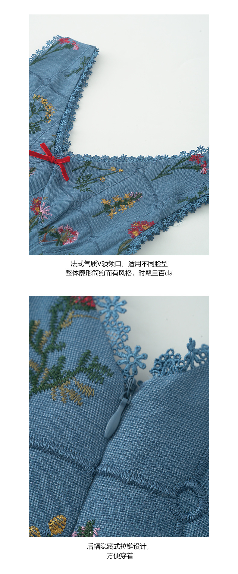 *o-ha-you*【FHZH1FA5020426】V領蕾絲花邊刺繡抽繩收腰無袖連衣裙2025夏甜美清新洋裝