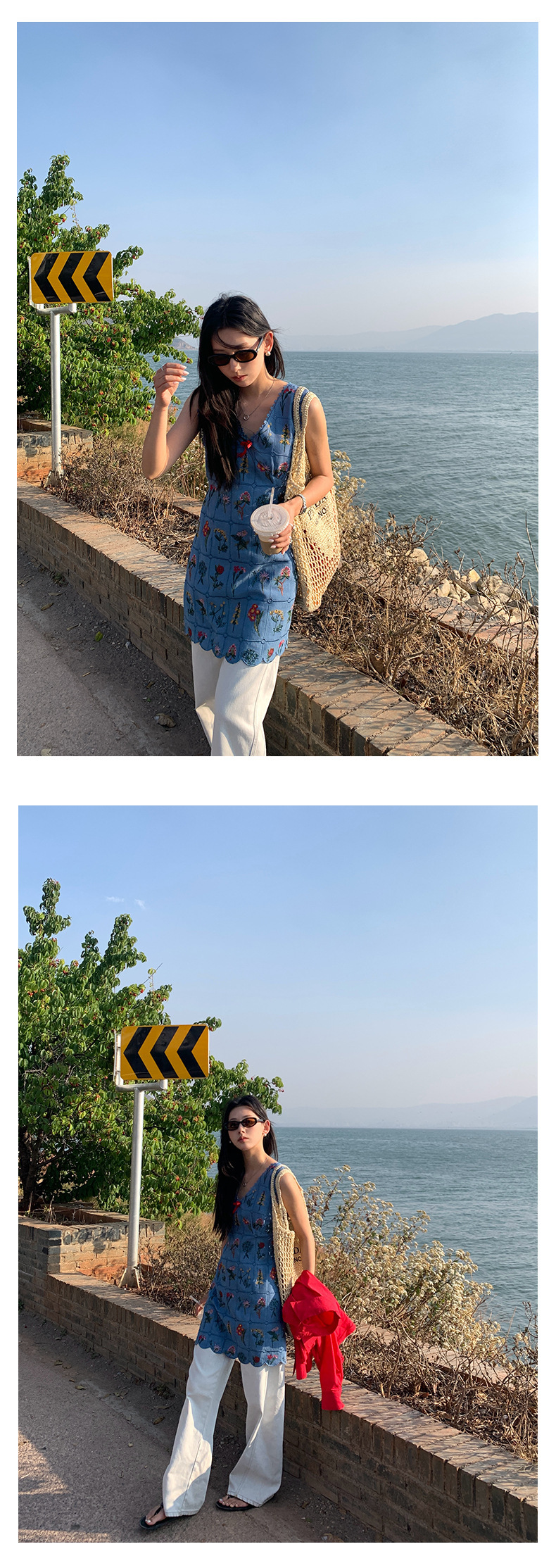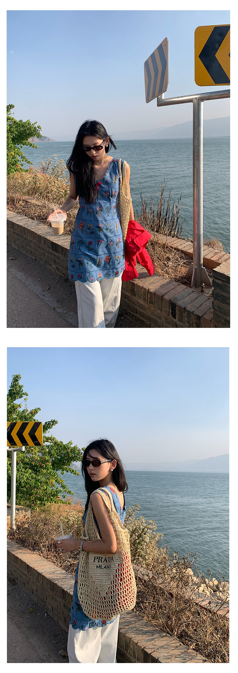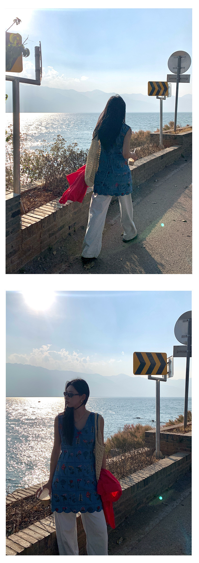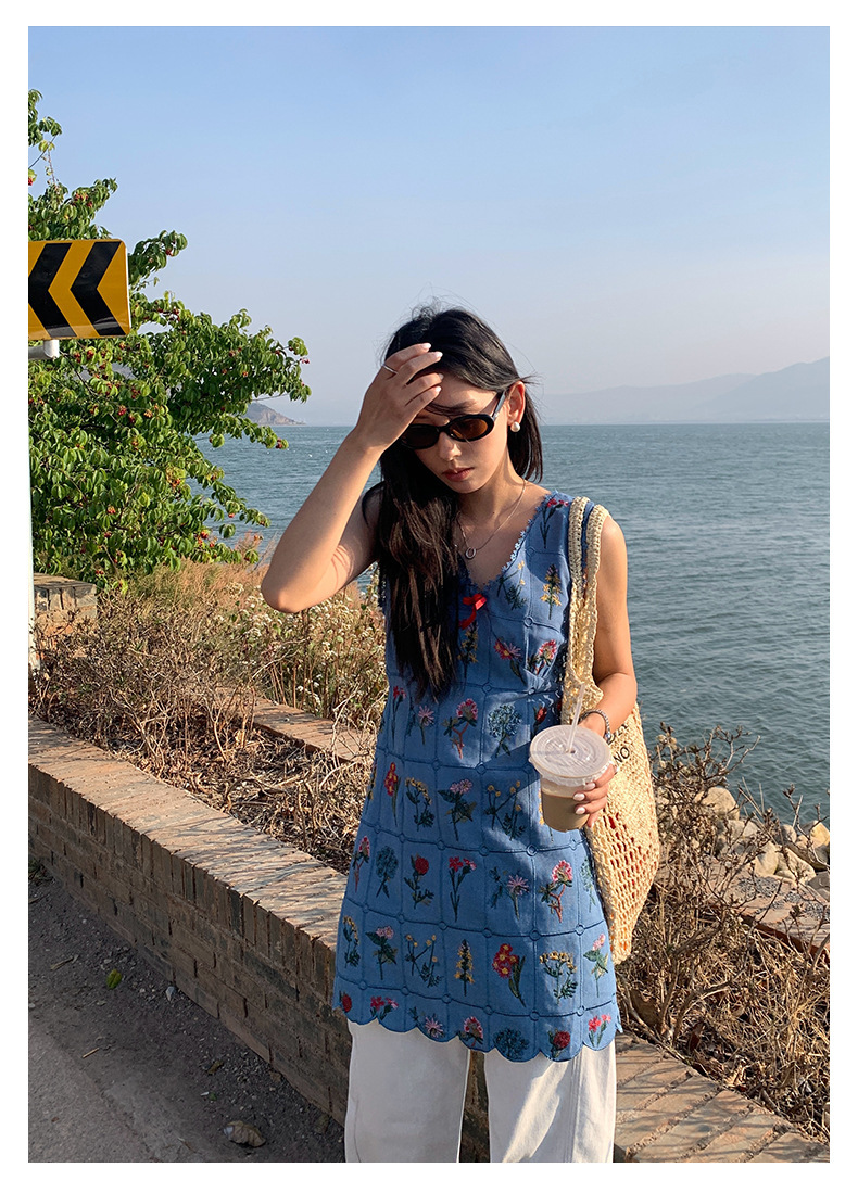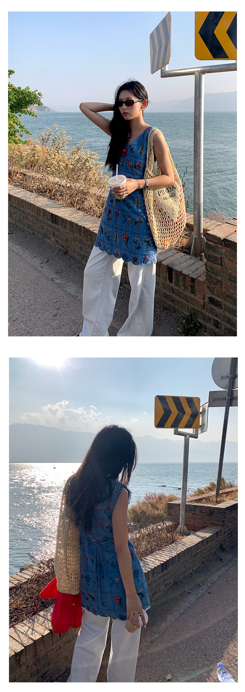 *o-ha-you*【FHZH1FA5020426】V領蕾絲花邊刺繡抽繩收腰無袖連衣裙2025夏甜美清新洋裝