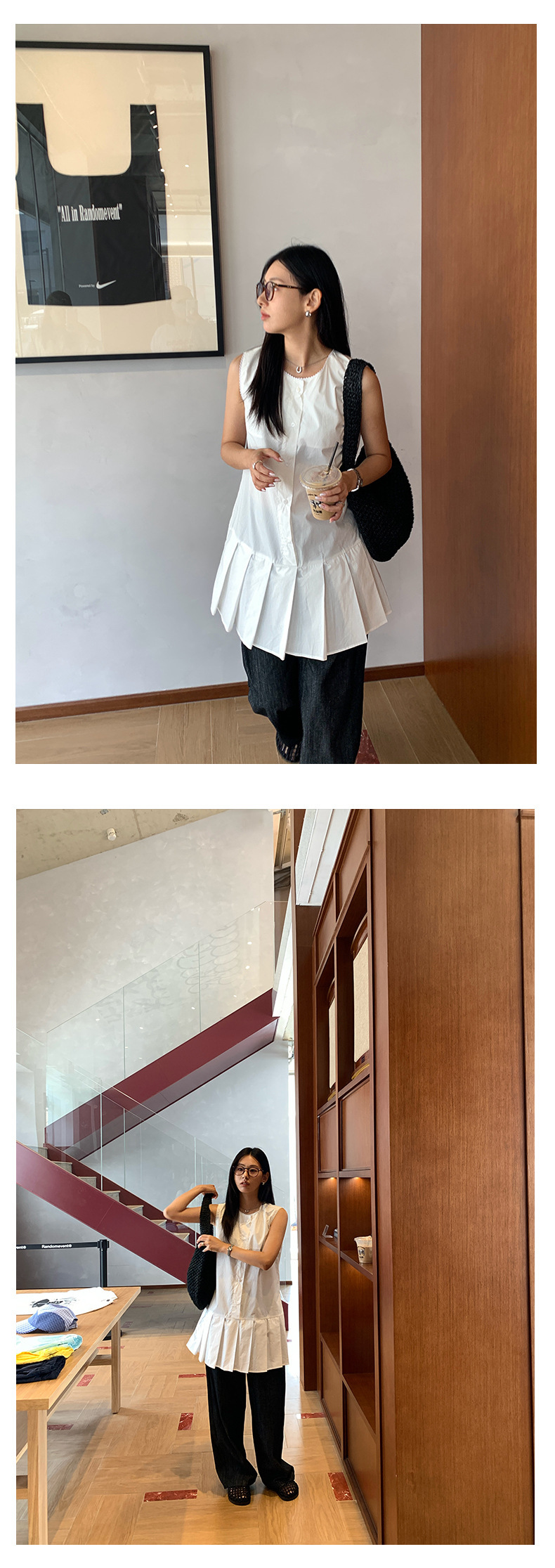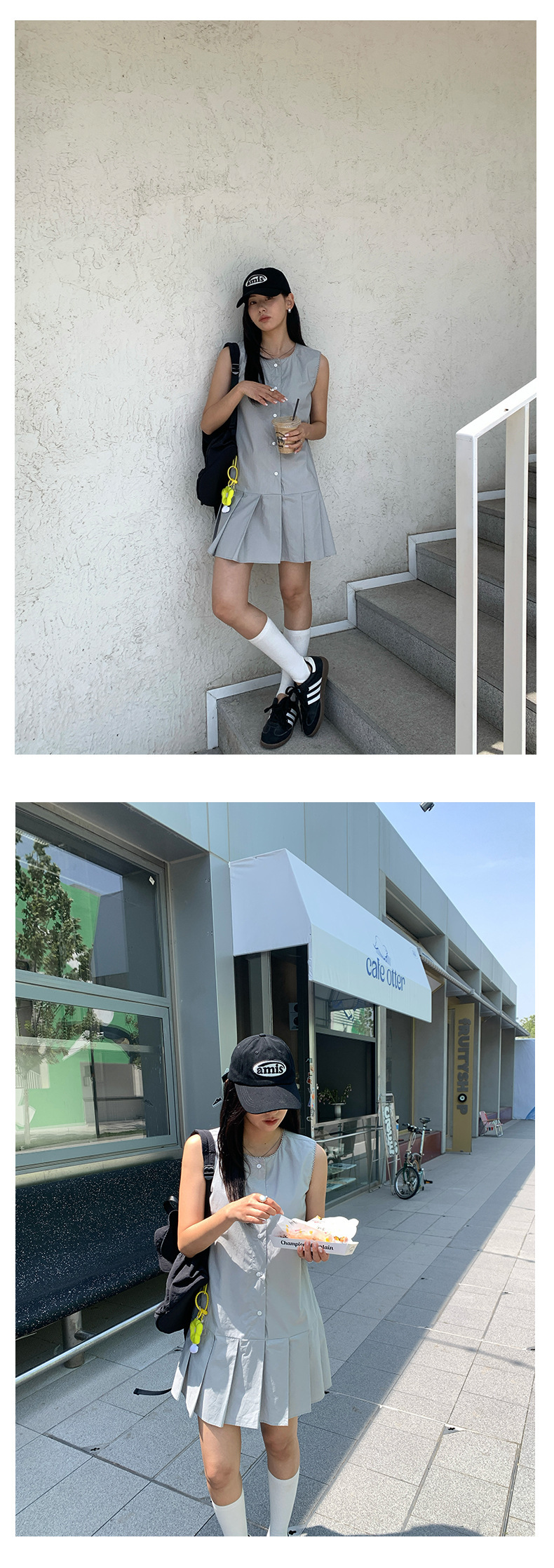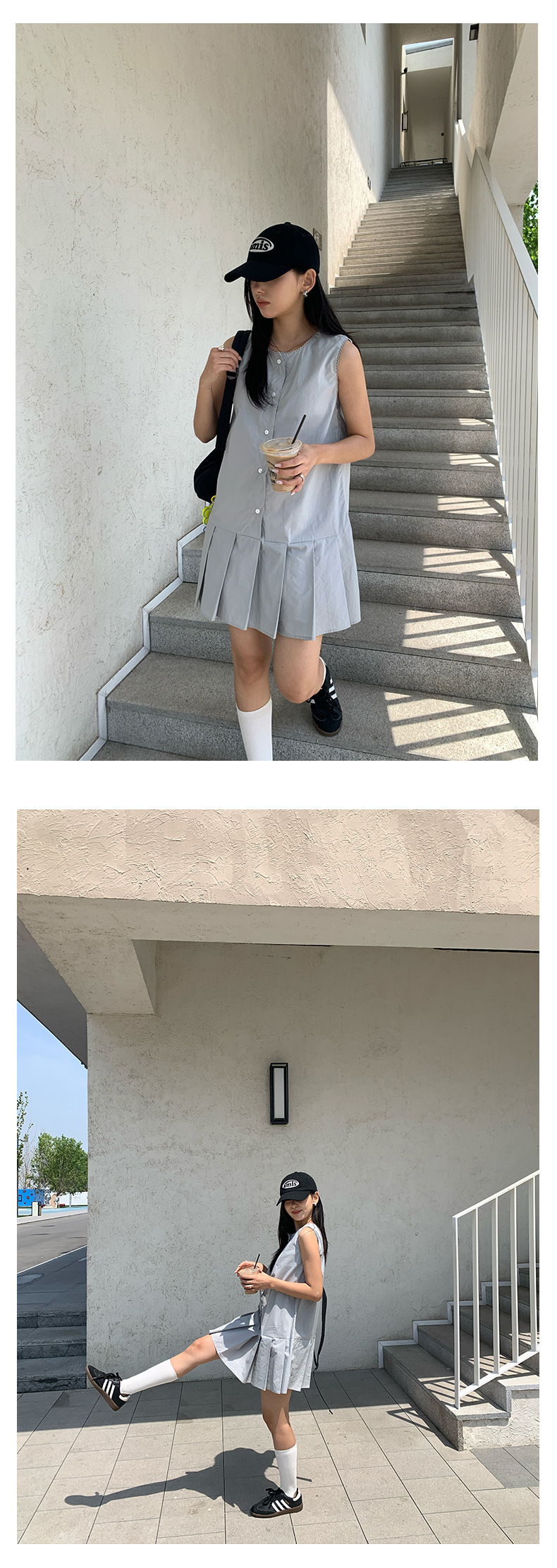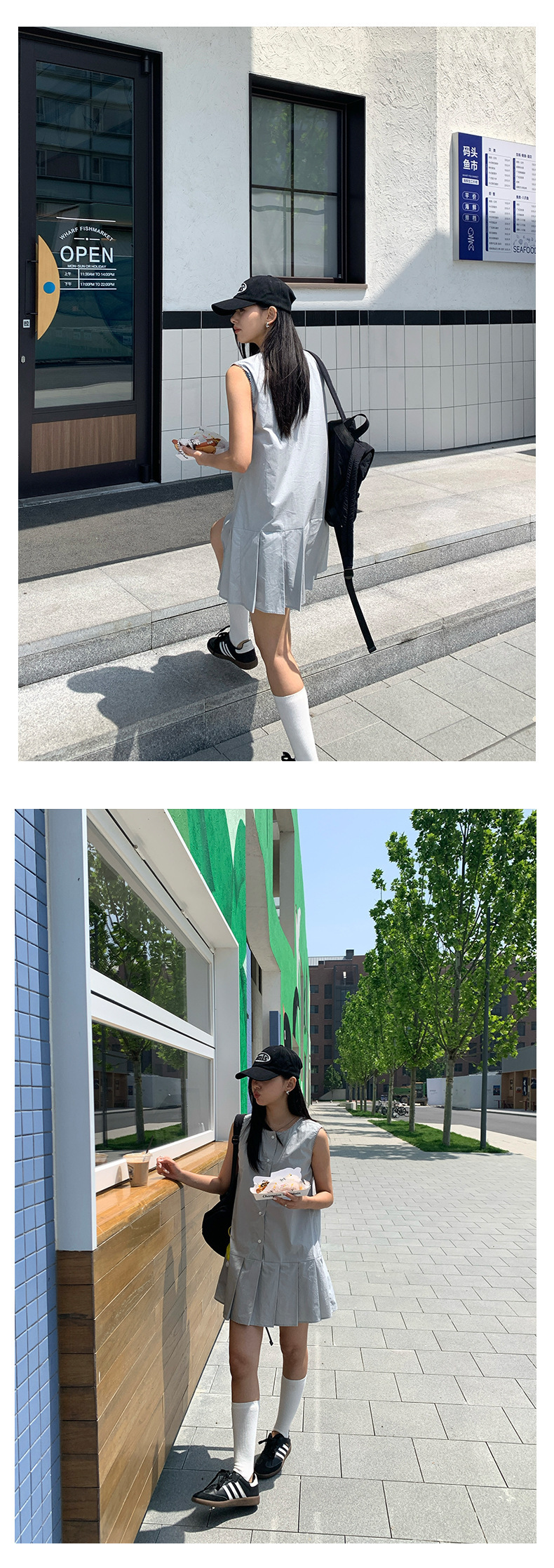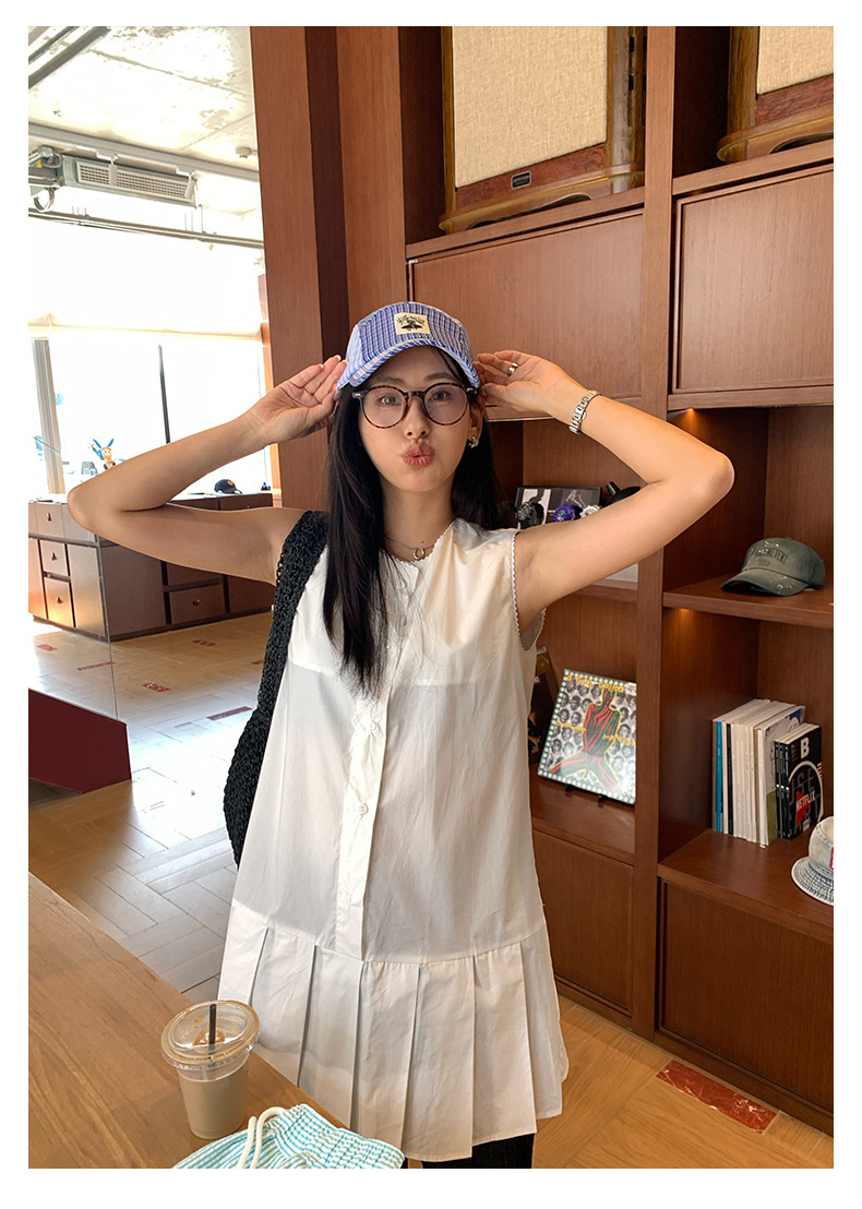 *o-ha-you*【FHZH1FA5020594】韓系寬鬆中長純色無袖連衣裙百褶疊穿復古減齡短裙洋裝-2色