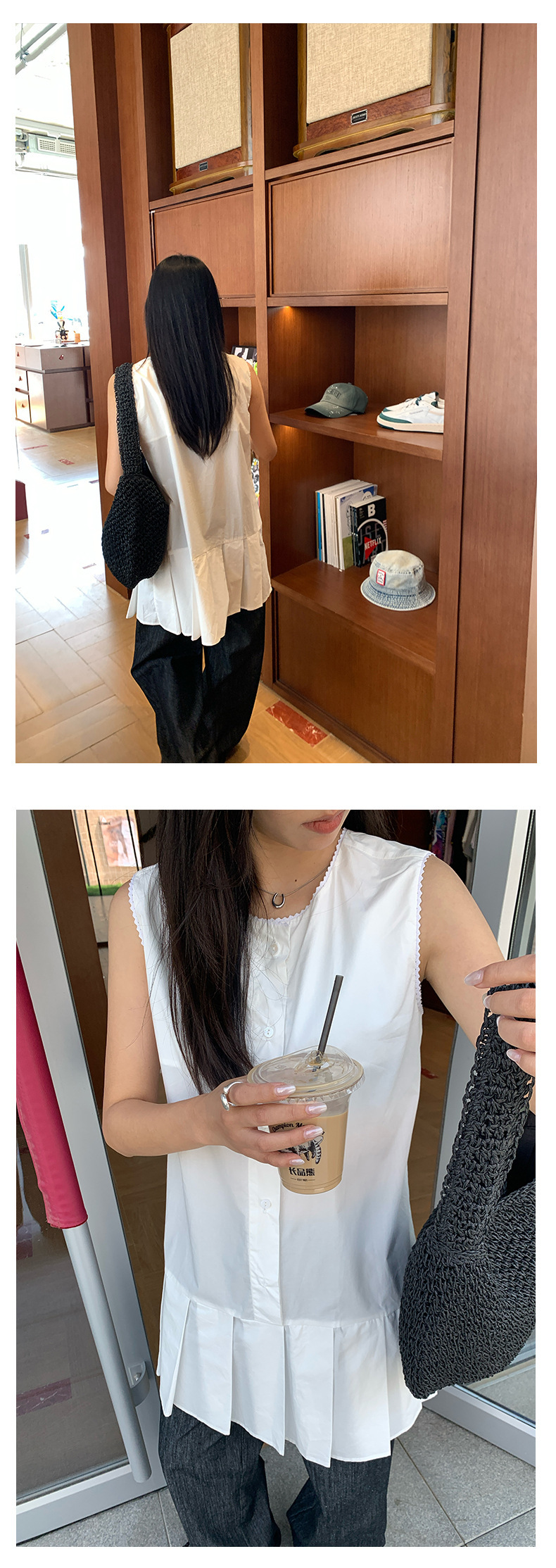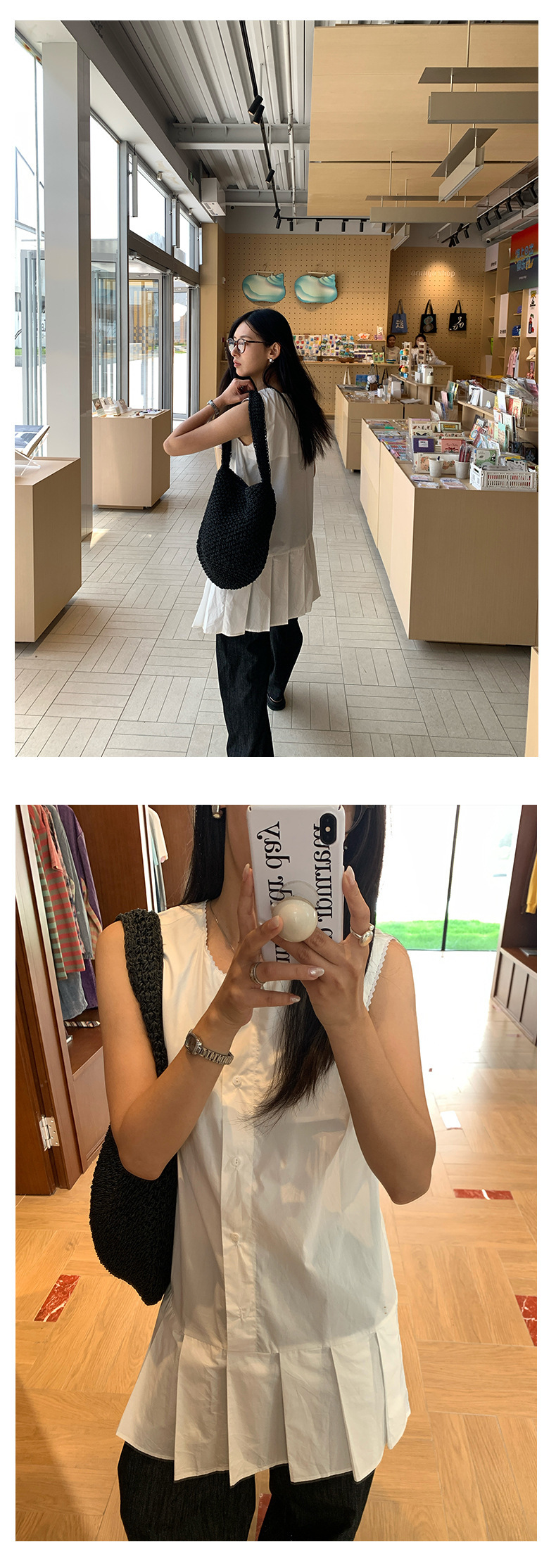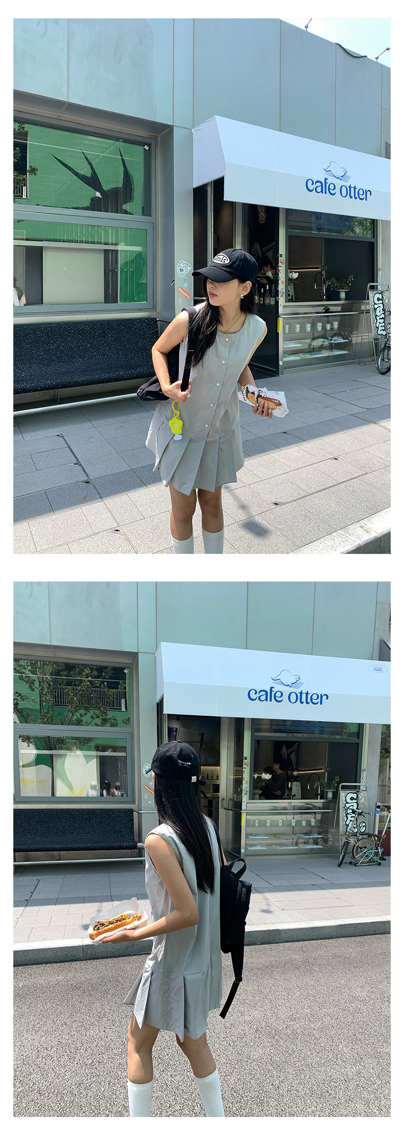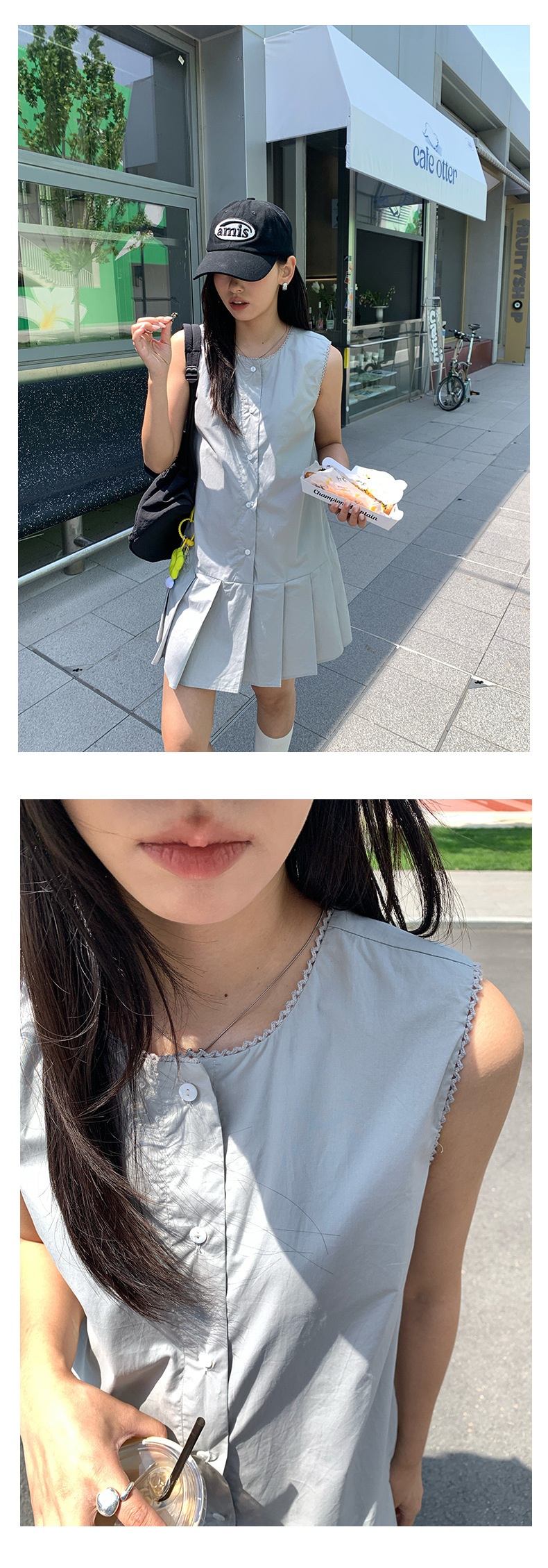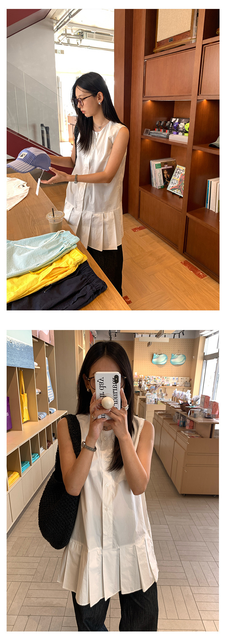 *o-ha-you*【FHZH1FA5020594】韓系寬鬆中長純色無袖連衣裙百褶疊穿復古減齡短裙洋裝-2色