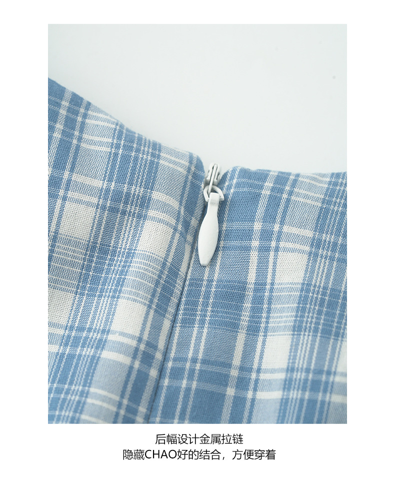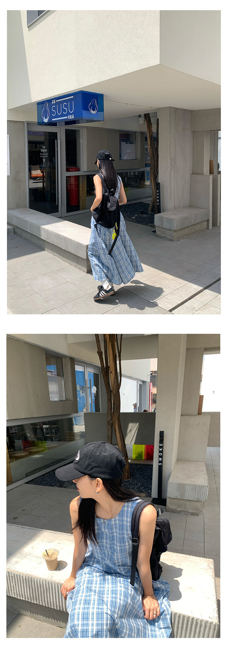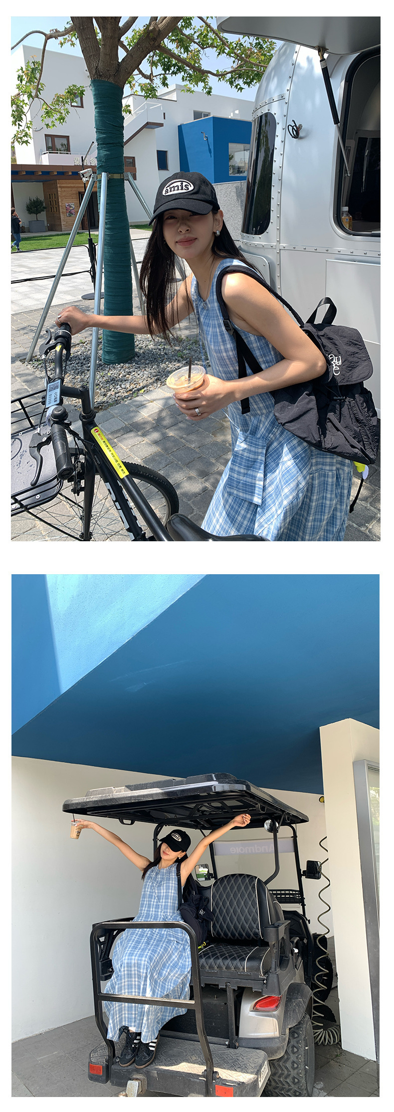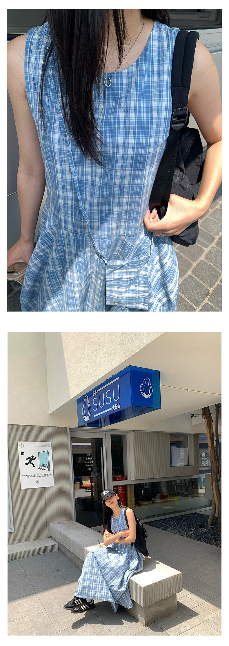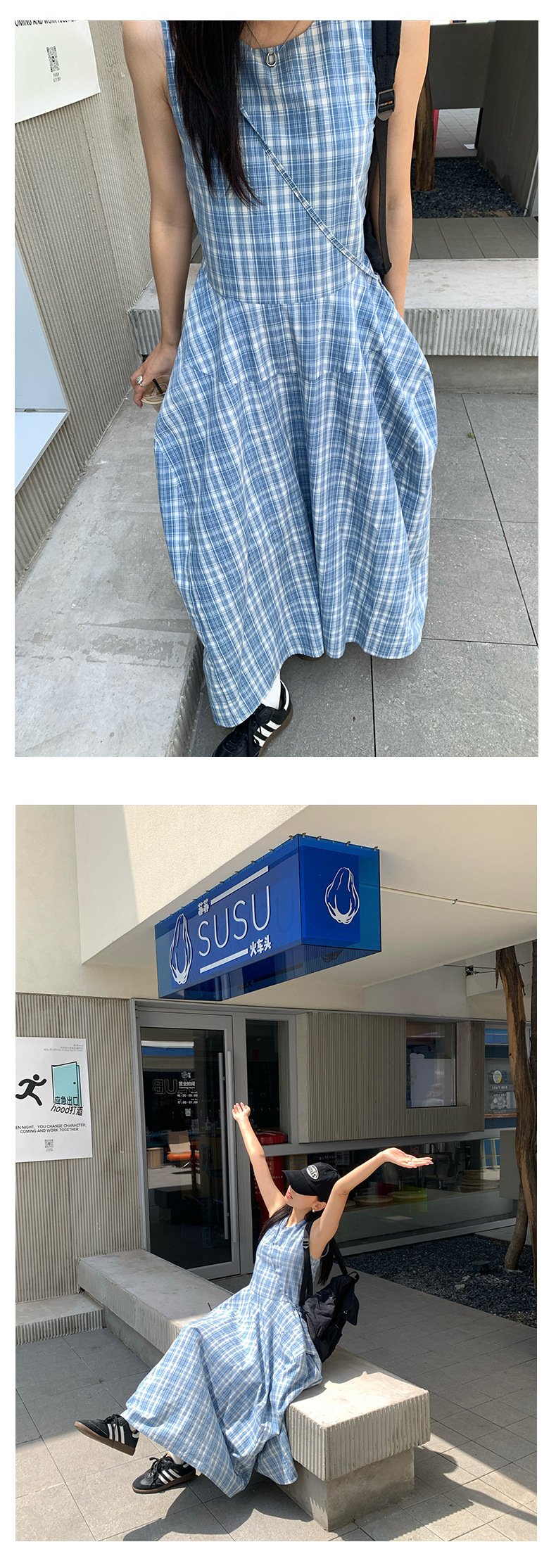 *o-ha-you*【FHZH1FA5020599】韓系田園風復古藍格無袖連衣裙甜美減齡花苞收腰長裙洋裝-如有需要請先諮詢