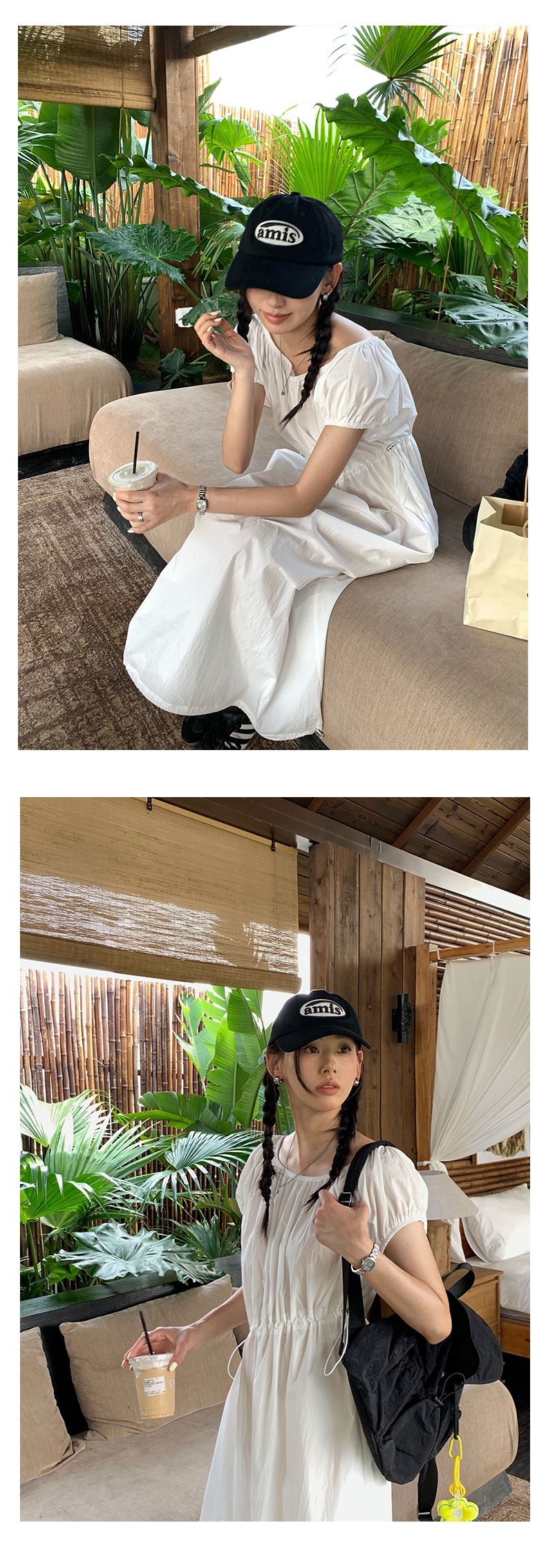*o-ha-you*【FHZH1FA5020663】韓版設計感復古法式泡泡袖連衣裙顯瘦長裙戀夏風穿搭洋裝-2色