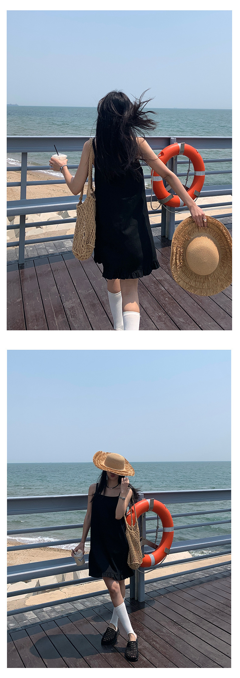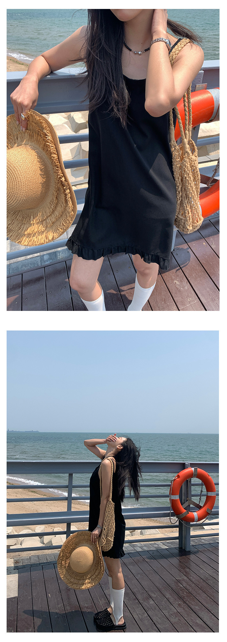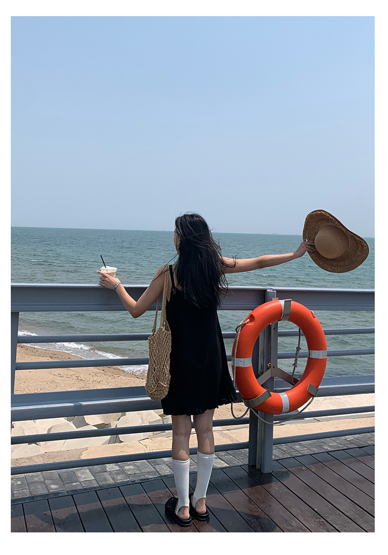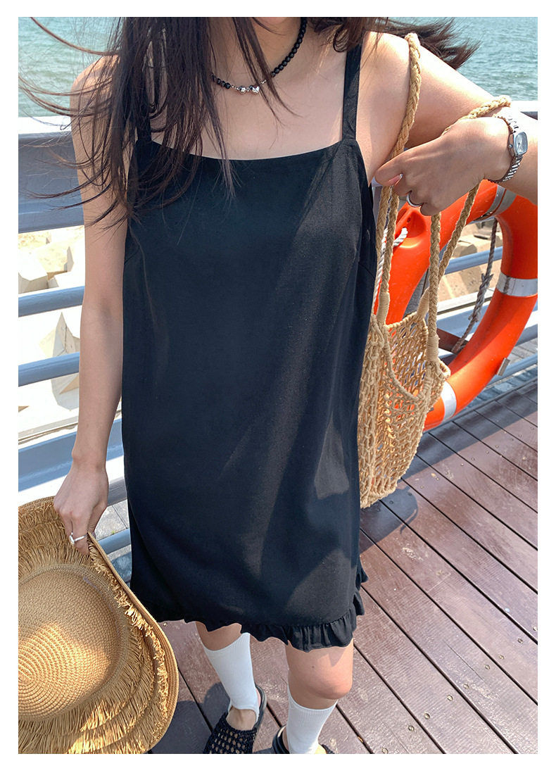 *o-ha-you*【FHZH1FC5020678】韓系夏季新款方領褶邊裙擺吊帶連衣裙休閒百搭通勤短裙洋裝