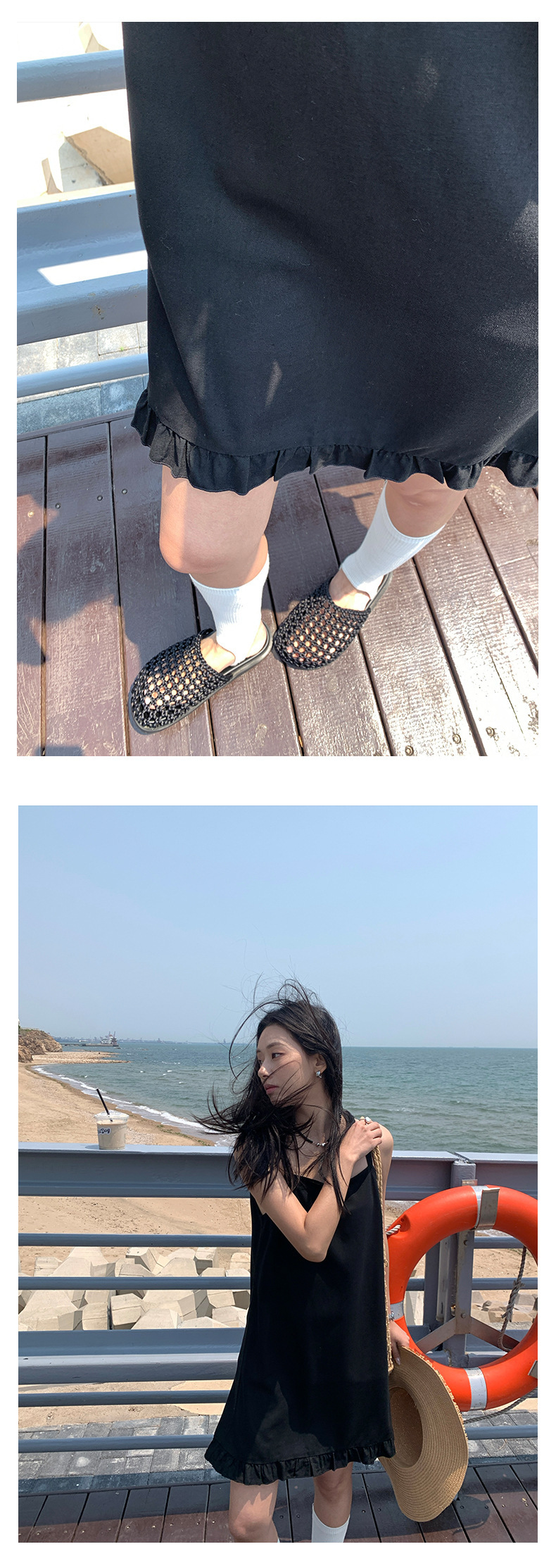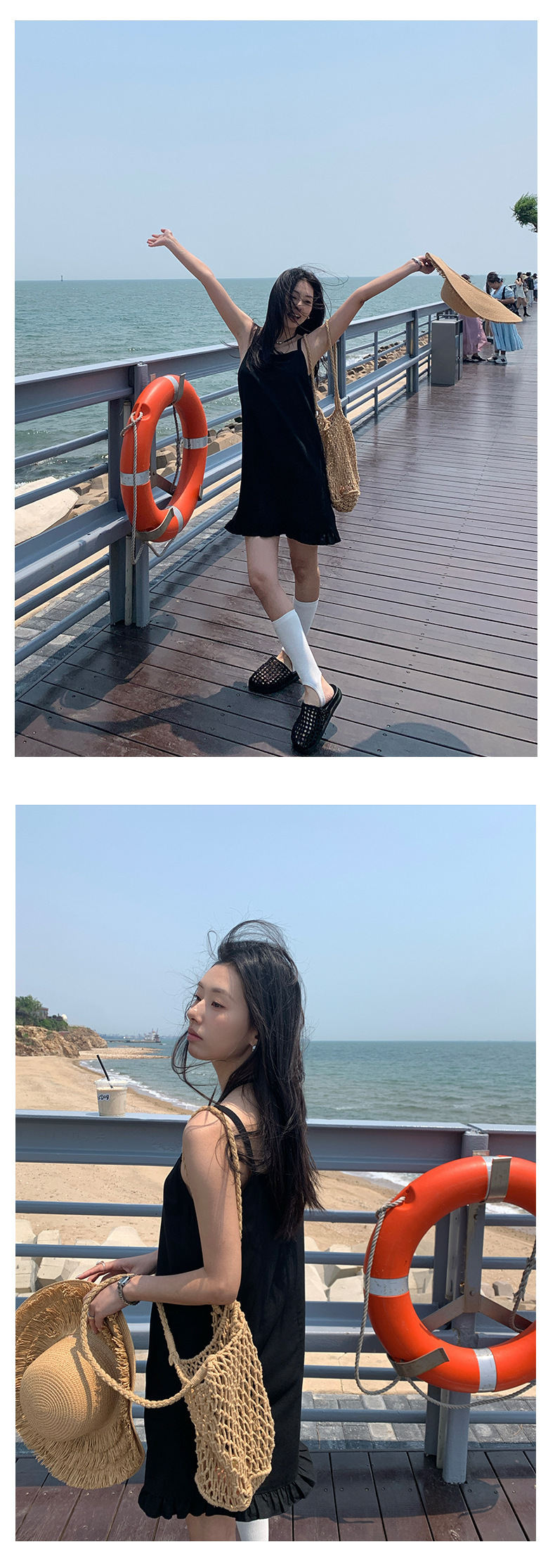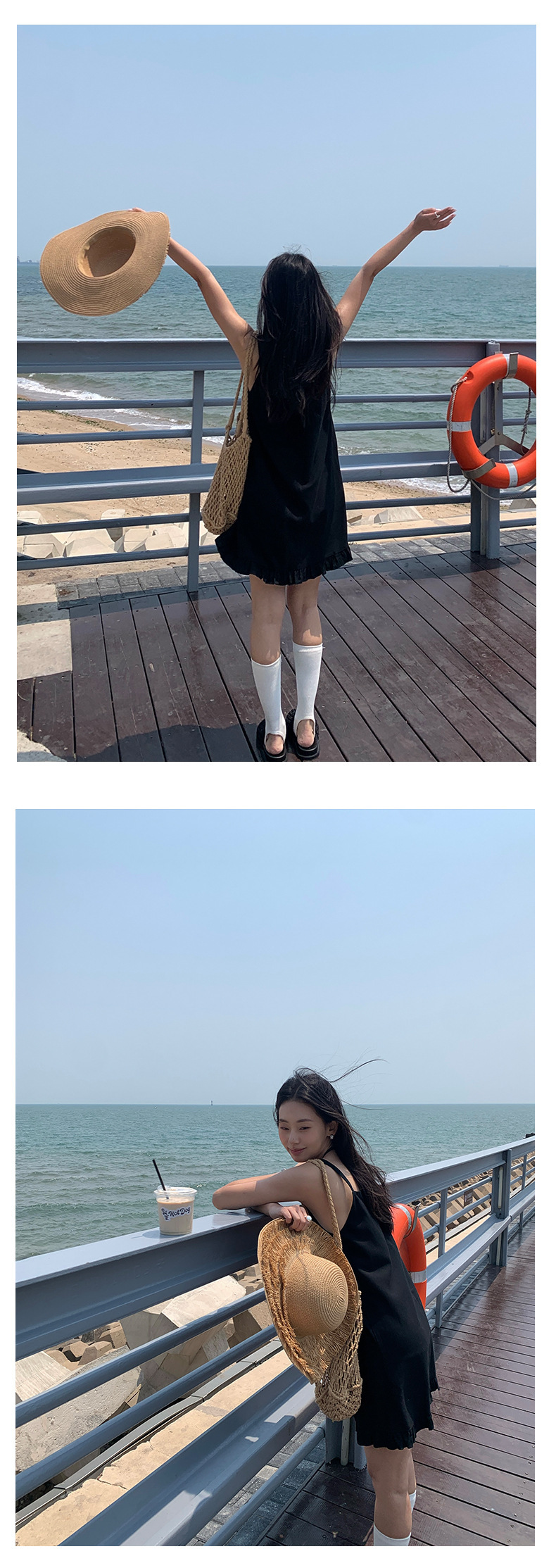*o-ha-you*【FHZH1FC5020678】韓系夏季新款方領褶邊裙擺吊帶連衣裙休閒百搭通勤短裙洋裝