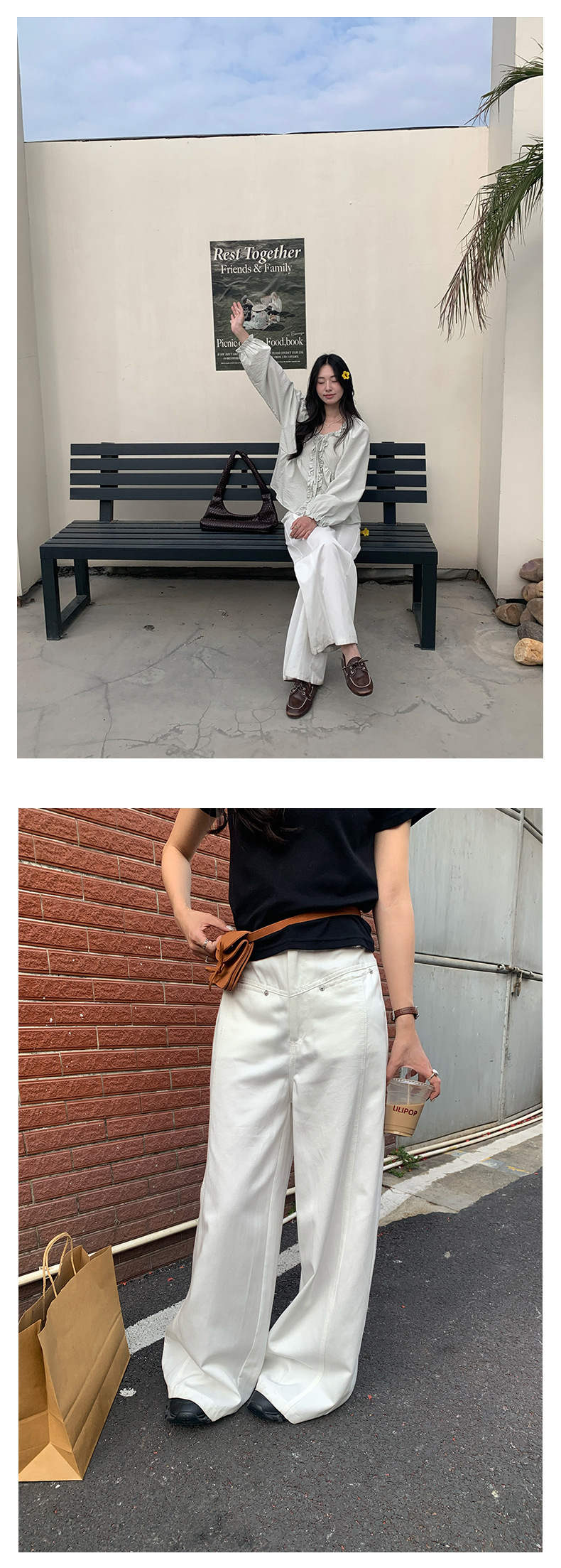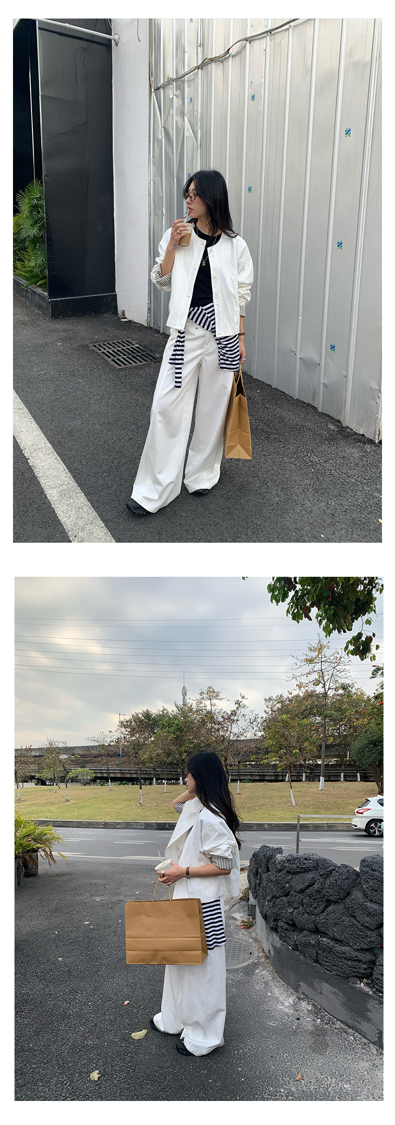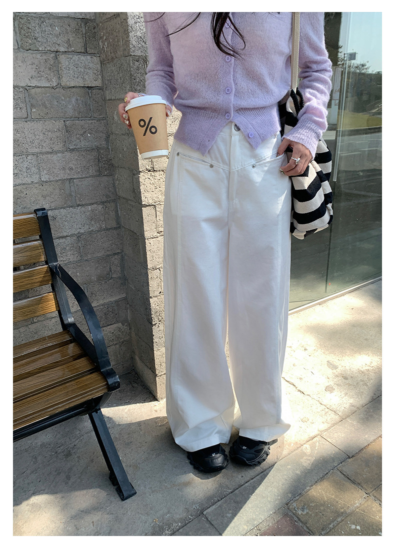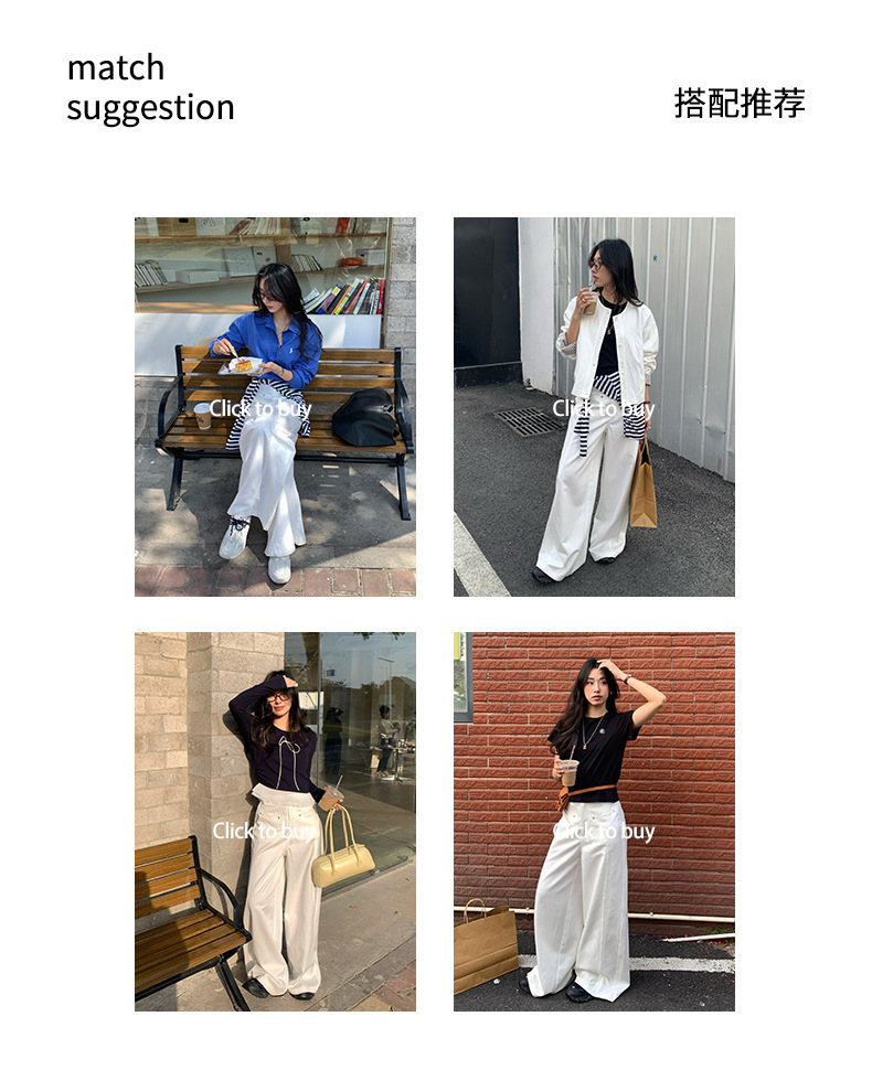 *o-ha-you*【FHZH1GB5010096】白色直筒寬鬆闊腿休閒褲2025春季韓版高腰拖地長褲-如有需要請先諮詢