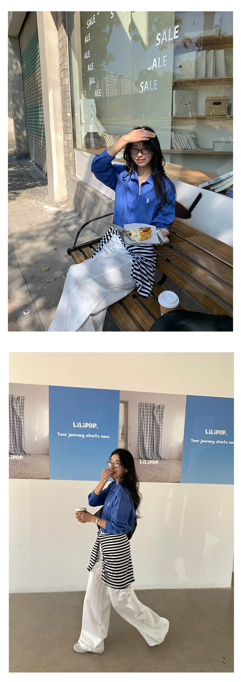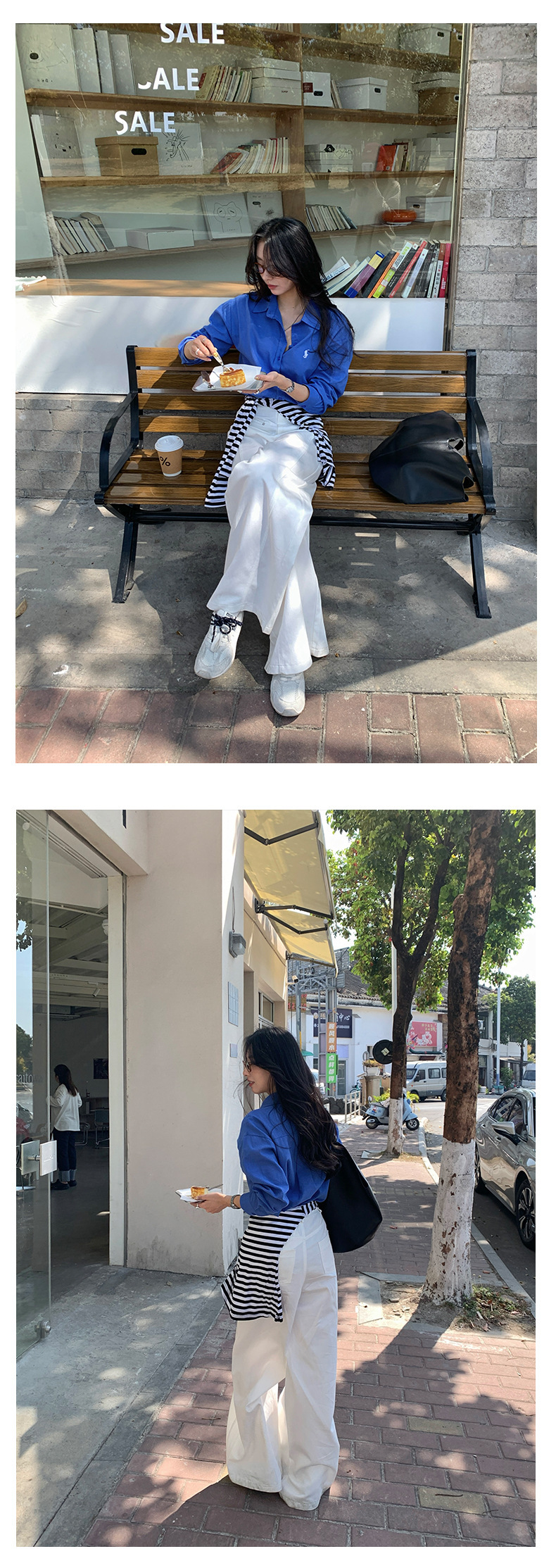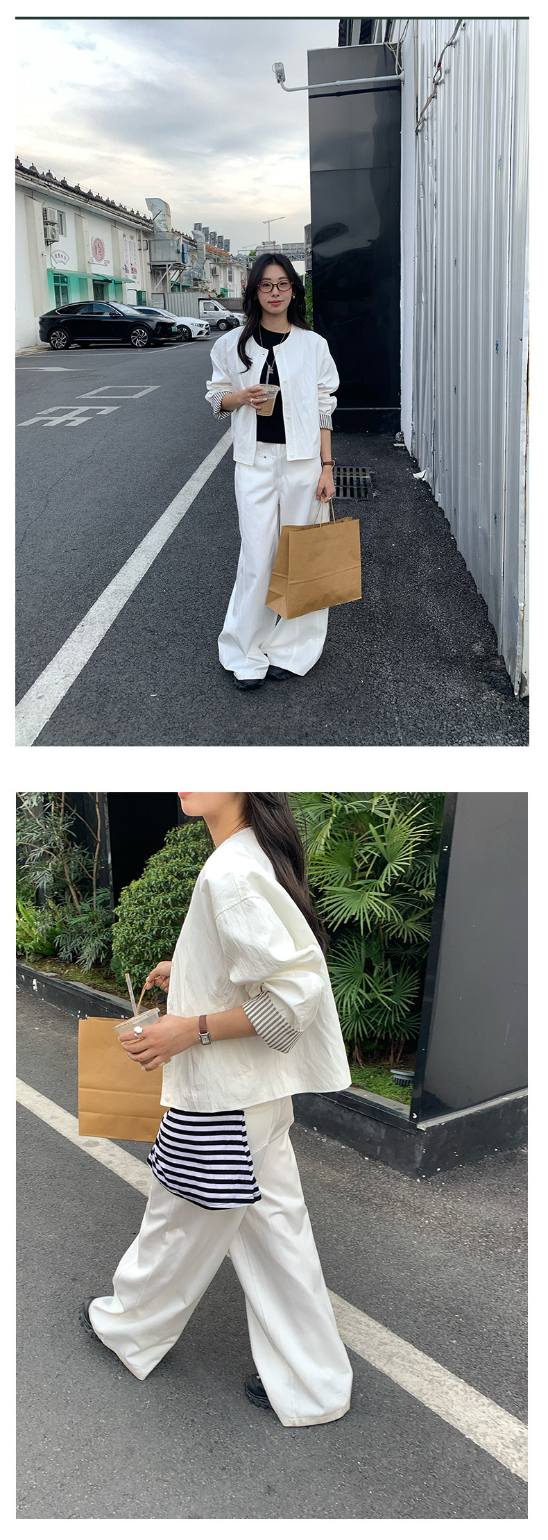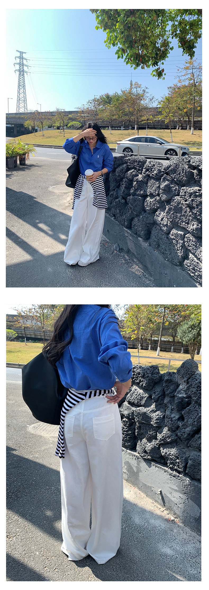 *o-ha-you*【FHZH1GB5010096】白色直筒寬鬆闊腿休閒褲2025春季韓版高腰拖地長褲-如有需要請先諮詢