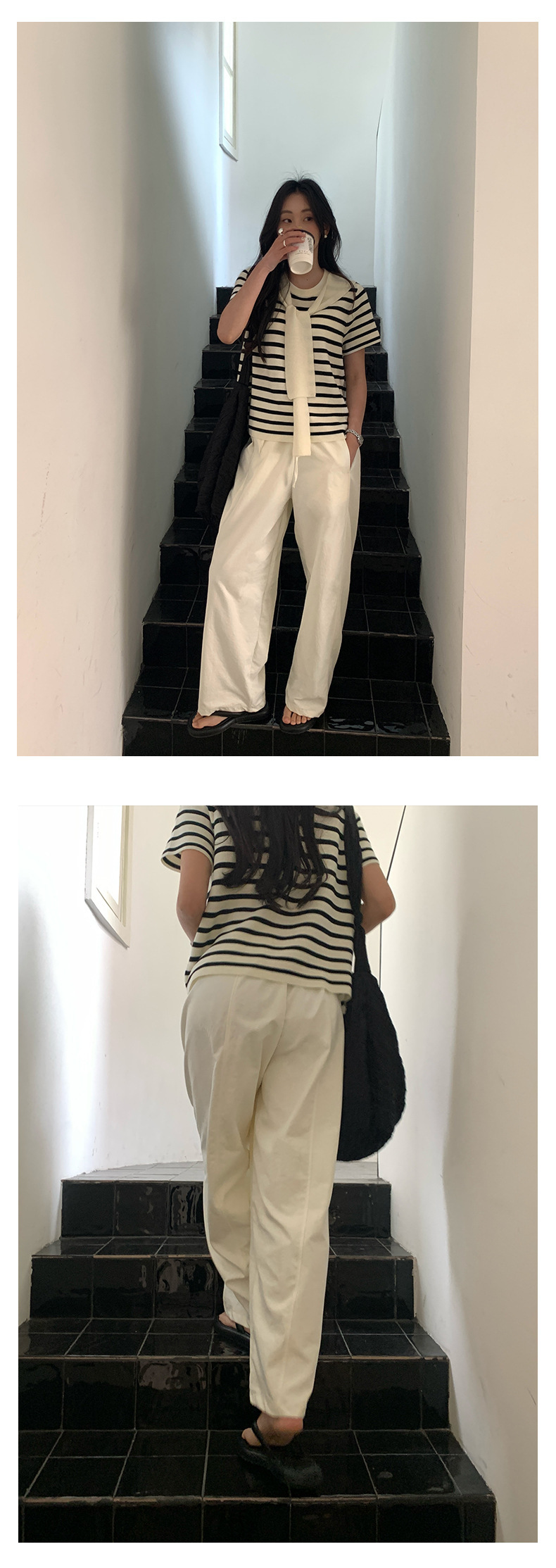*o-ha-you*【FHZH1GB5010223】抽繩鬆緊腰側邊壓線寬鬆直筒褲2025春夏舒適百搭長褲-3色-如有需要請先諮詢