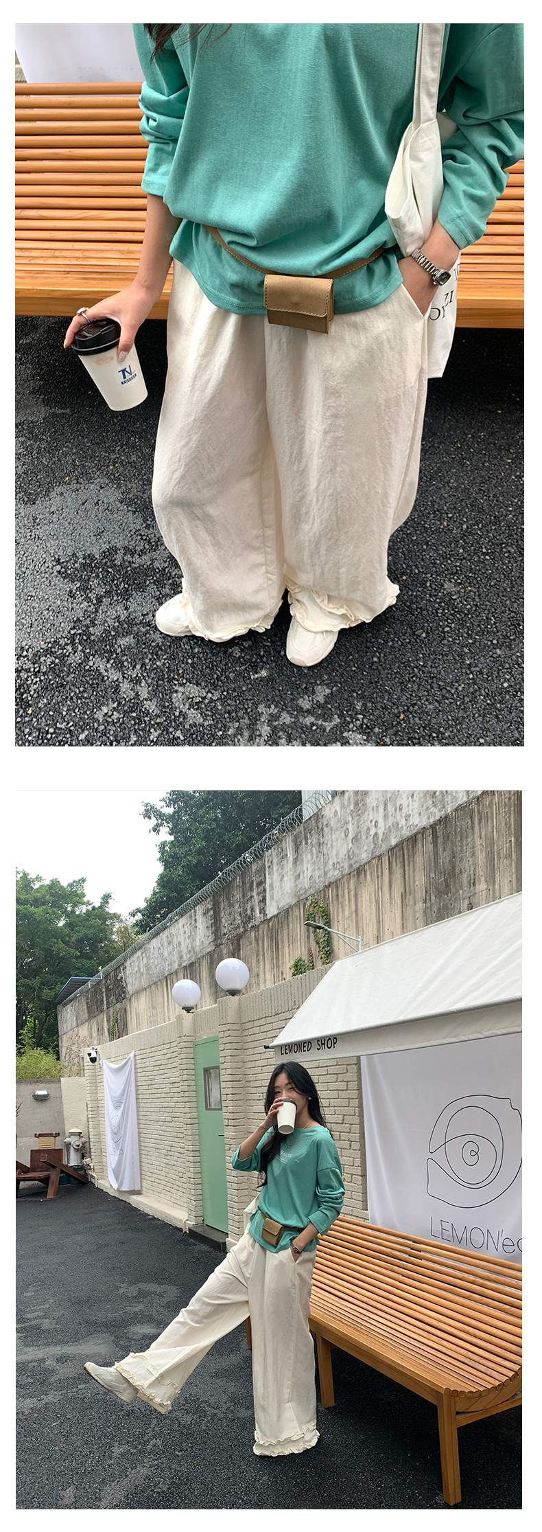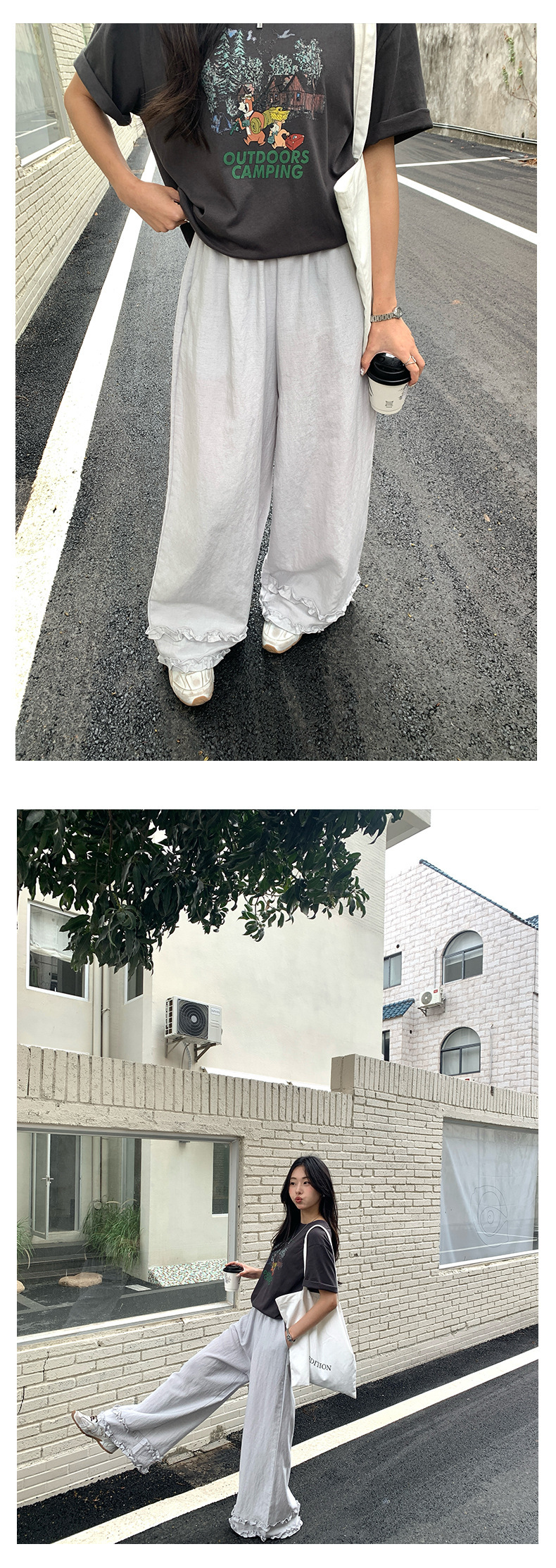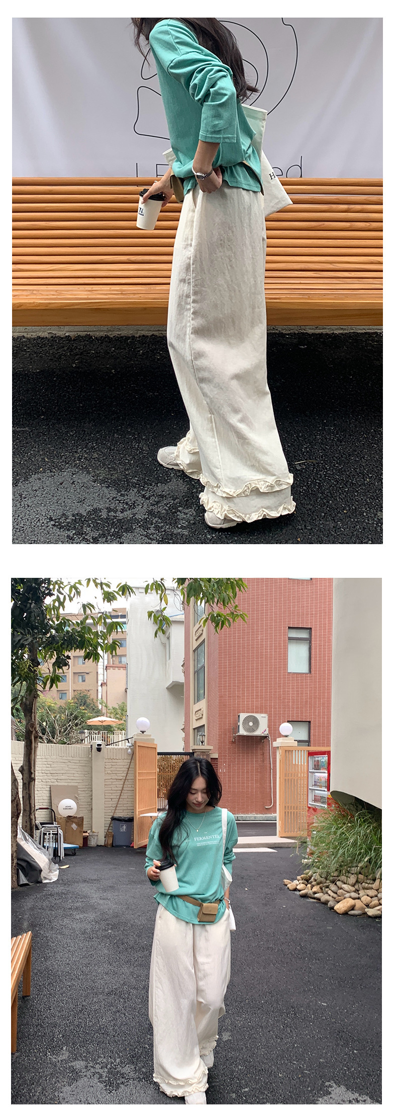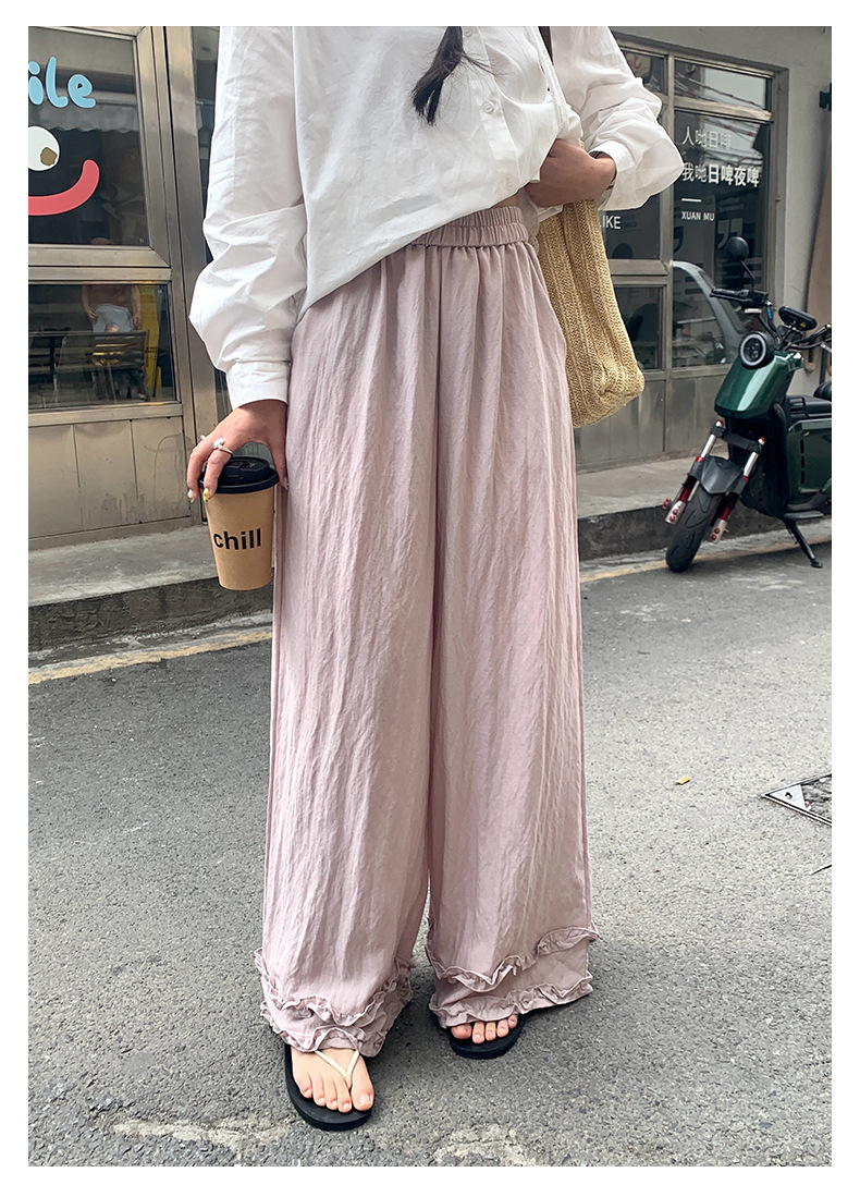*o-ha-you*【FHZH1GB5010224】鬆緊腰荷葉邊裝飾闊腿休閒褲25春夏溫柔舒適百搭長褲-3色