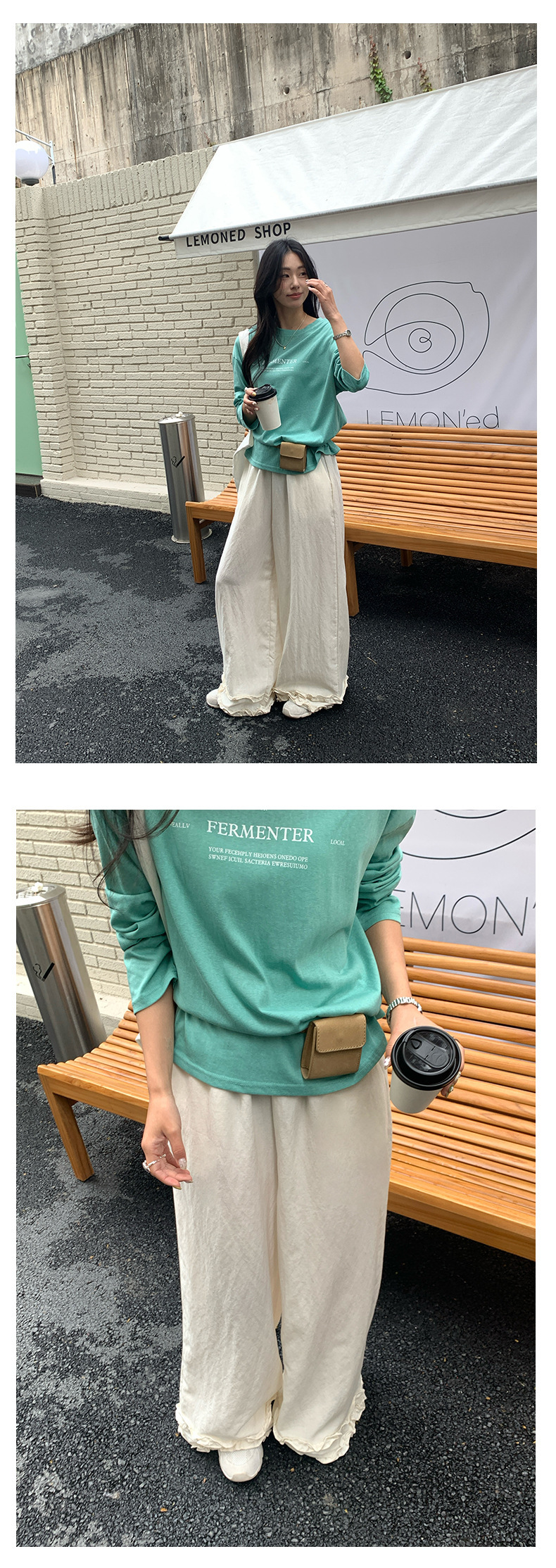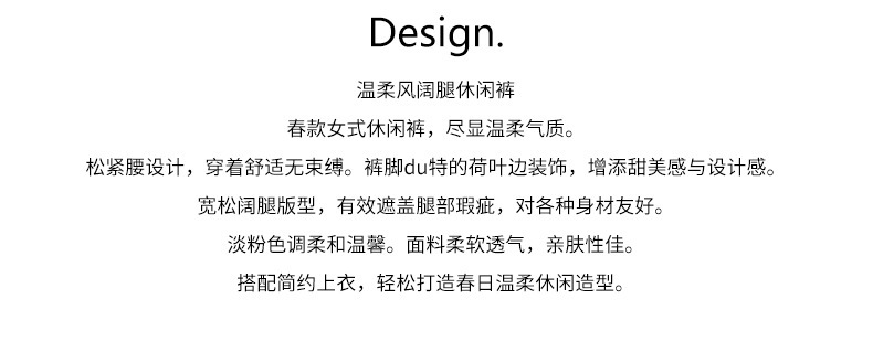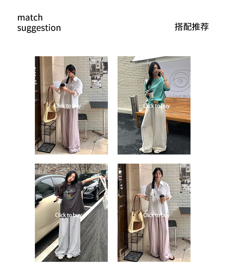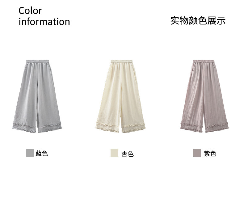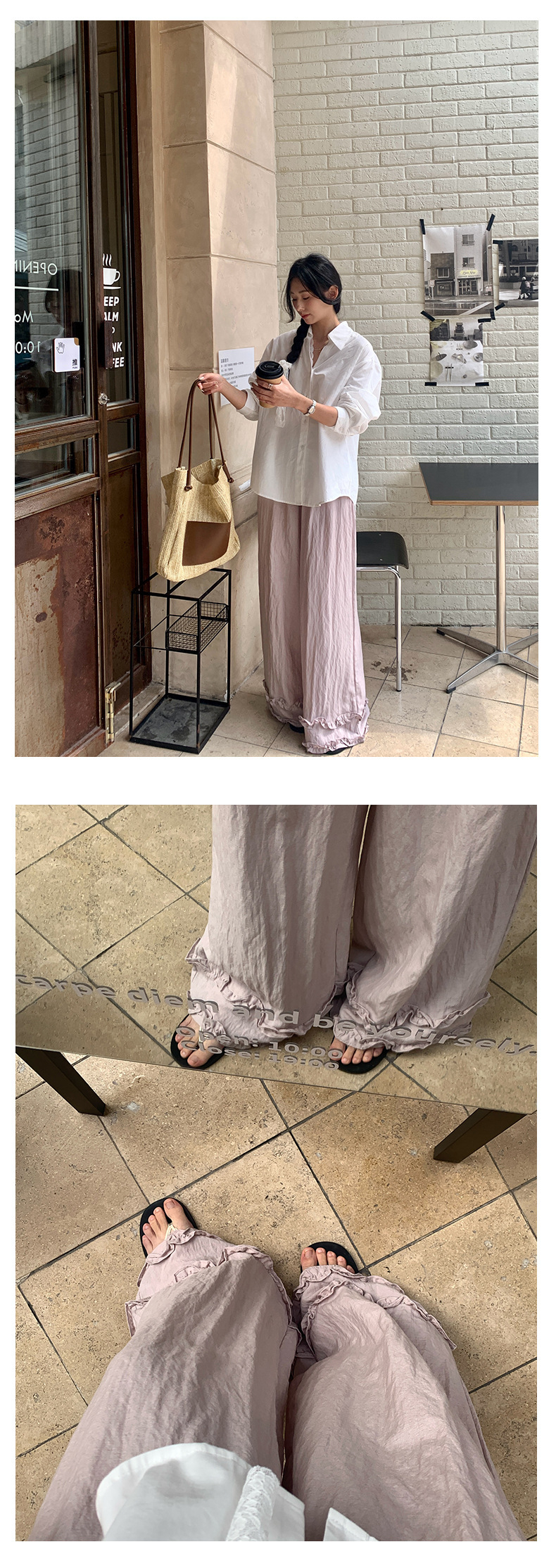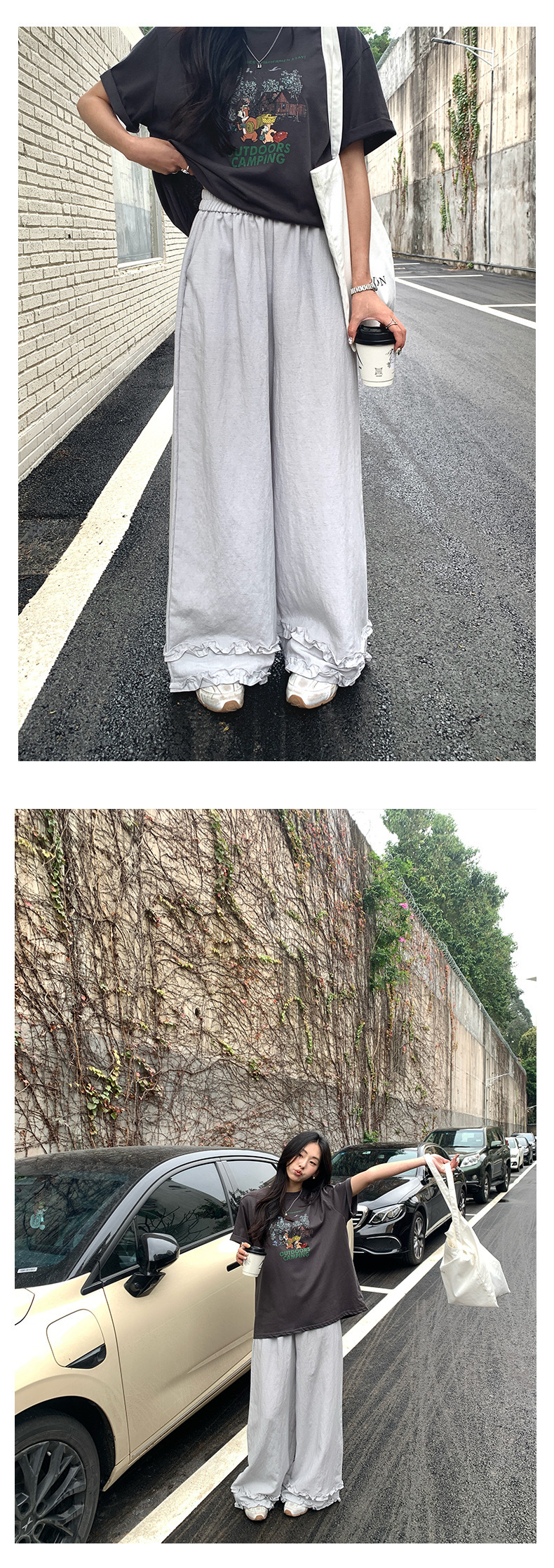 *o-ha-you*【FHZH1GB5010224】鬆緊腰荷葉邊裝飾闊腿休閒褲25春夏溫柔舒適百搭長褲-3色