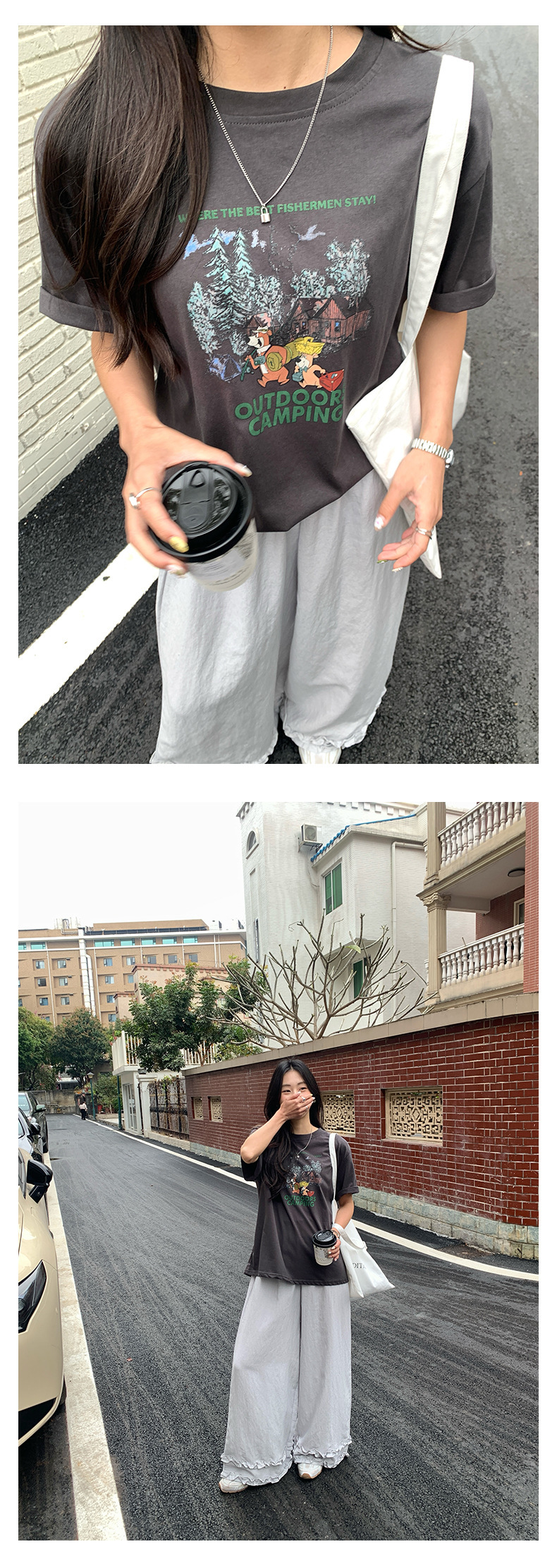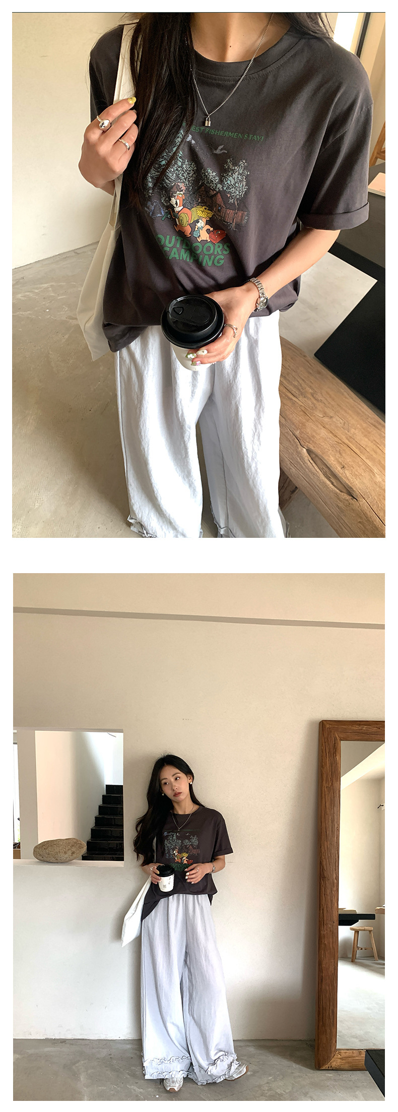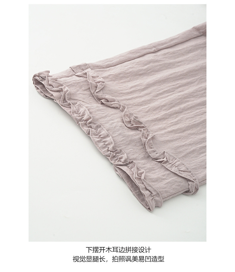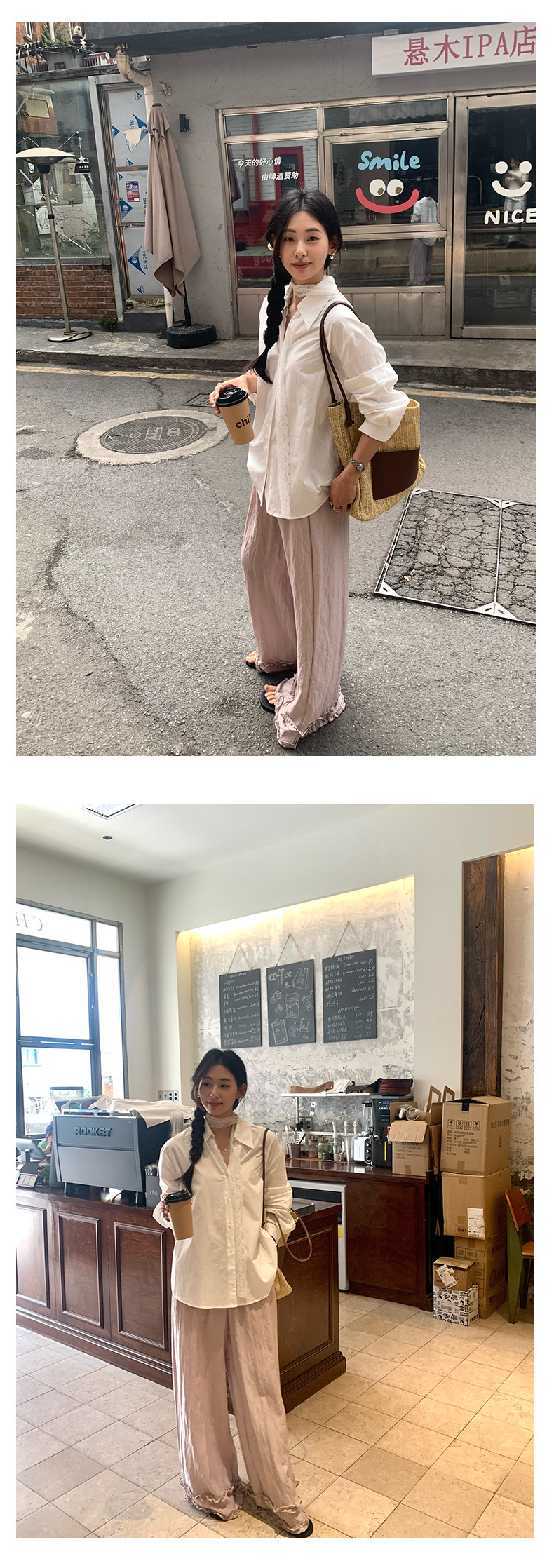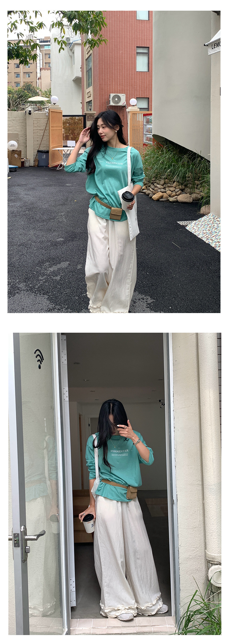 *o-ha-you*【FHZH1GB5010224】鬆緊腰荷葉邊裝飾闊腿休閒褲25春夏溫柔舒適百搭長褲-3色