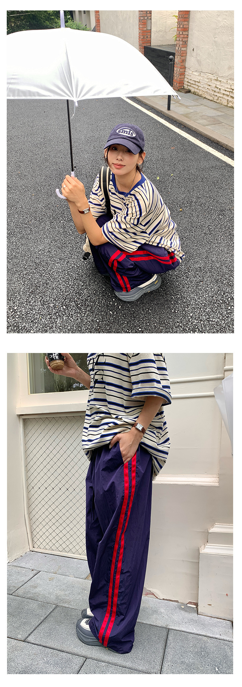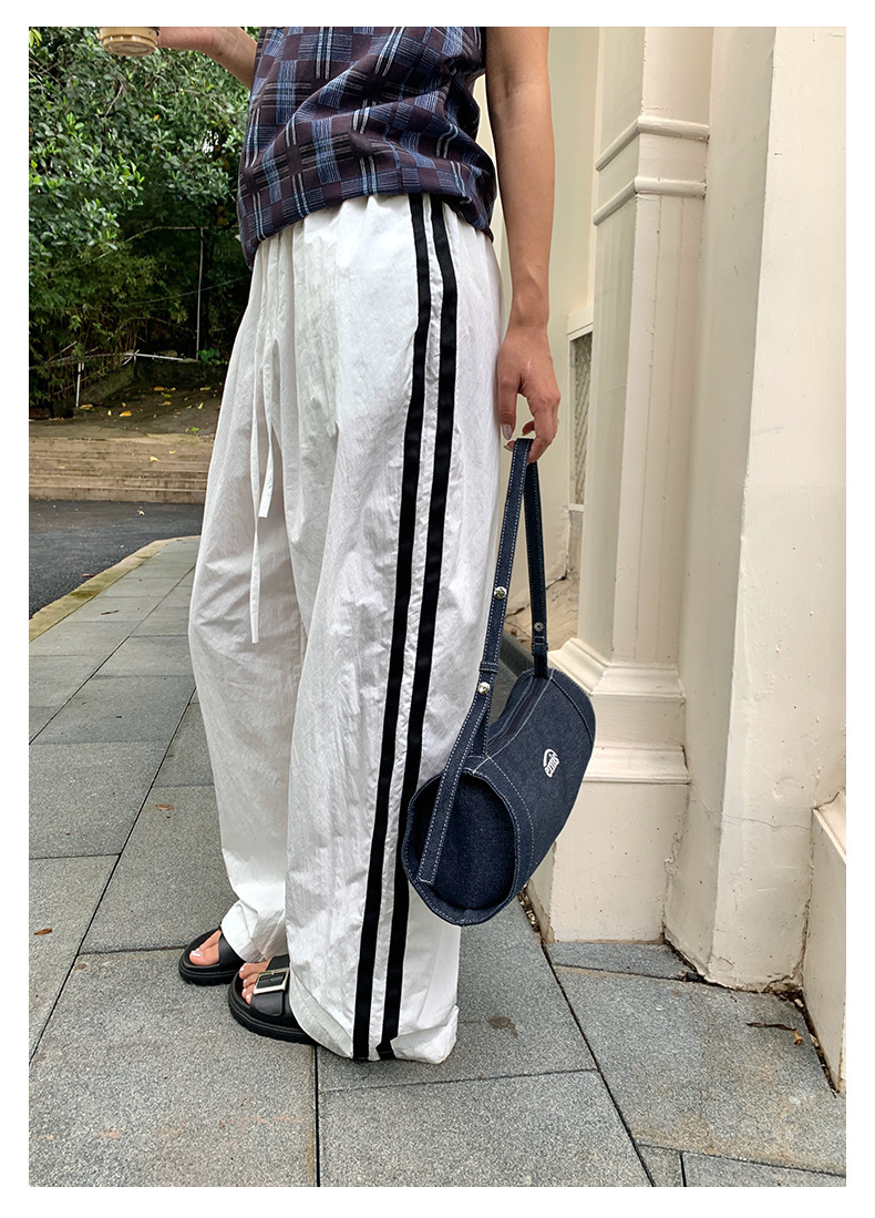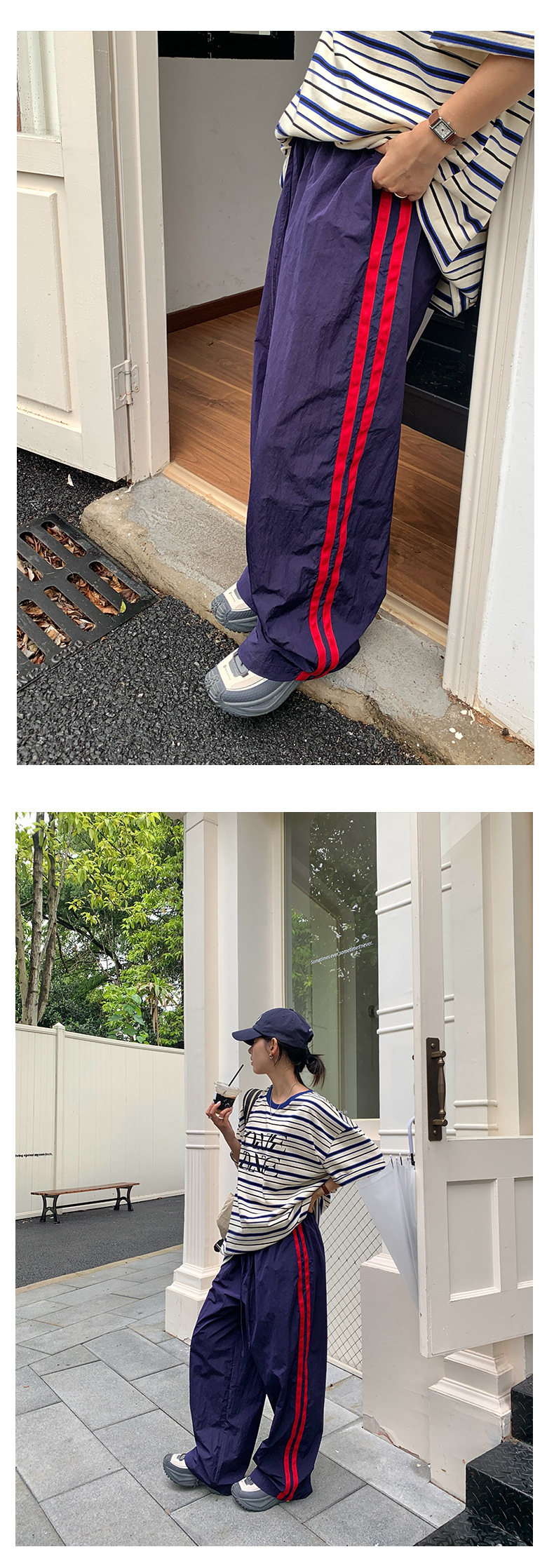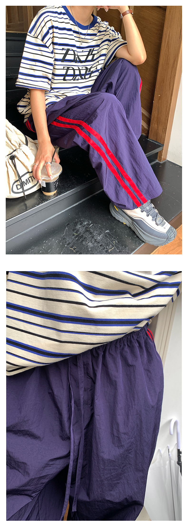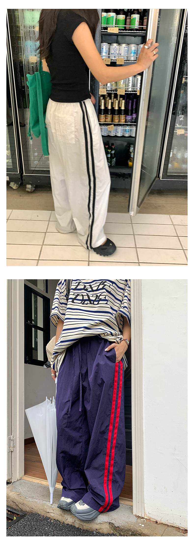 *o-ha-you*【FHZH1GB5020336】韓系撞色槓條休閒褲拖地褲蓬蓬呼吸褲奶酷空氣感闊腿褲-2色