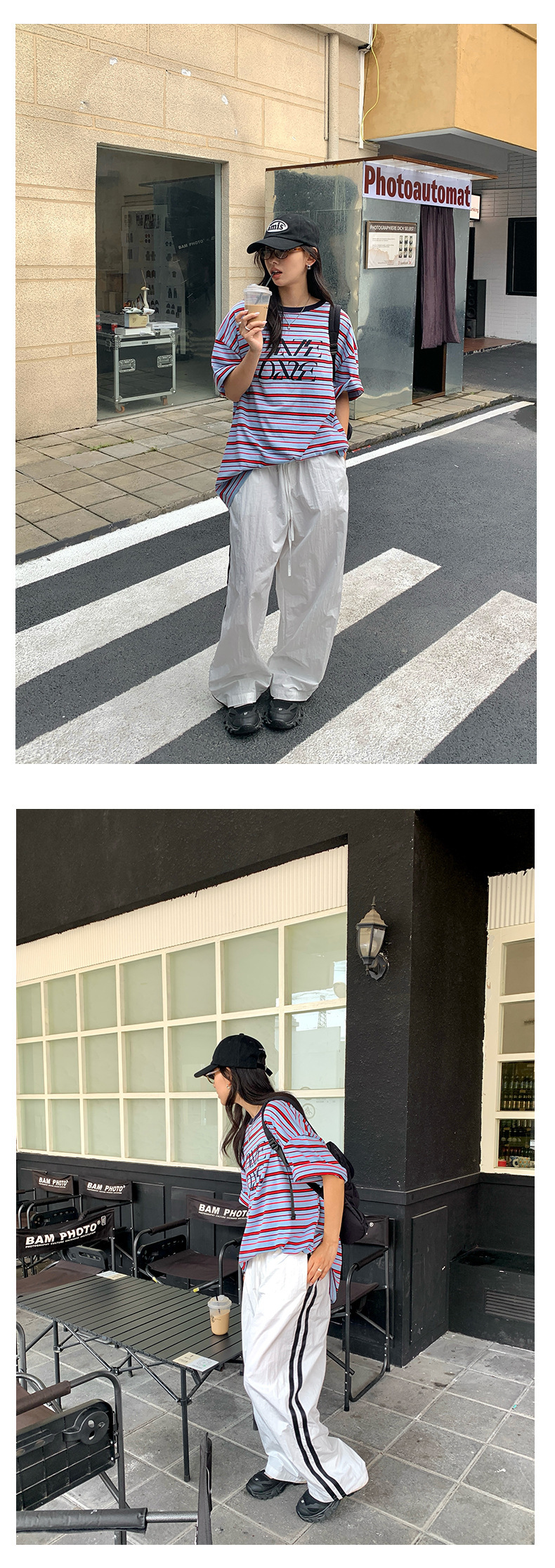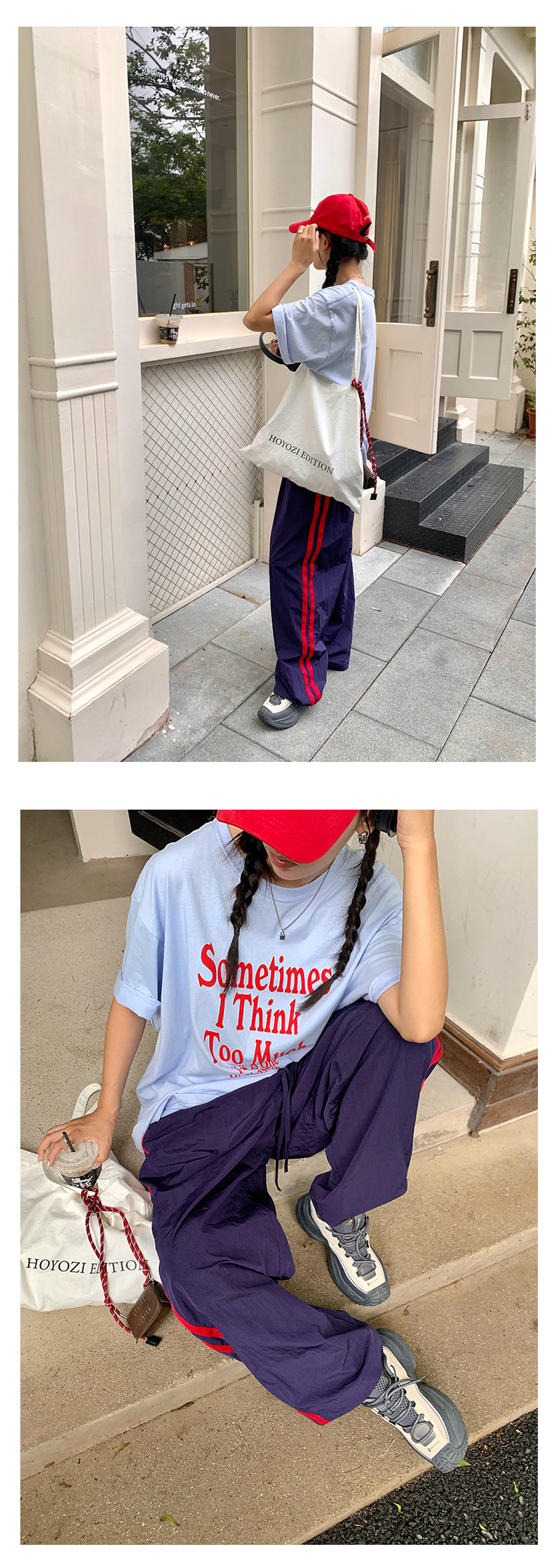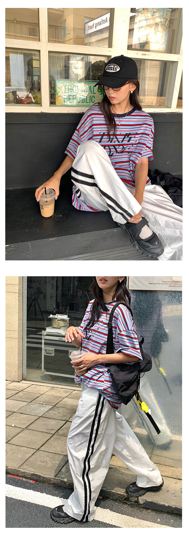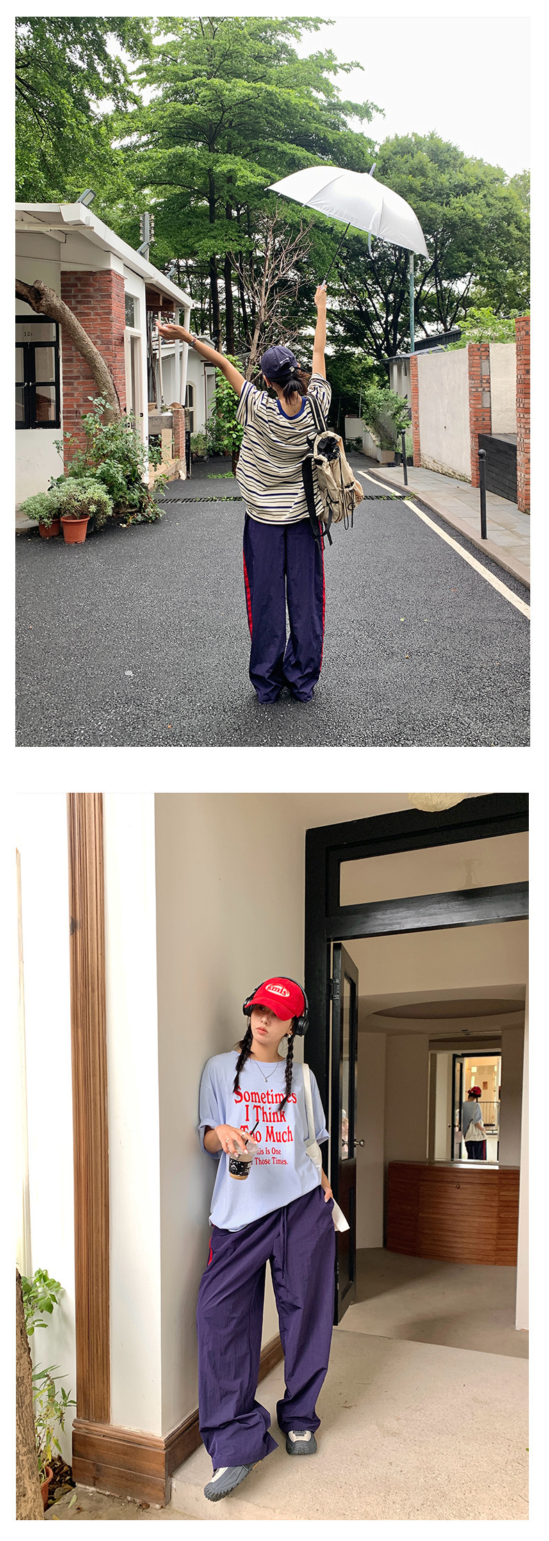 *o-ha-you*【FHZH1GB5020336】韓系撞色槓條休閒褲拖地褲蓬蓬呼吸褲奶酷空氣感闊腿褲-2色
