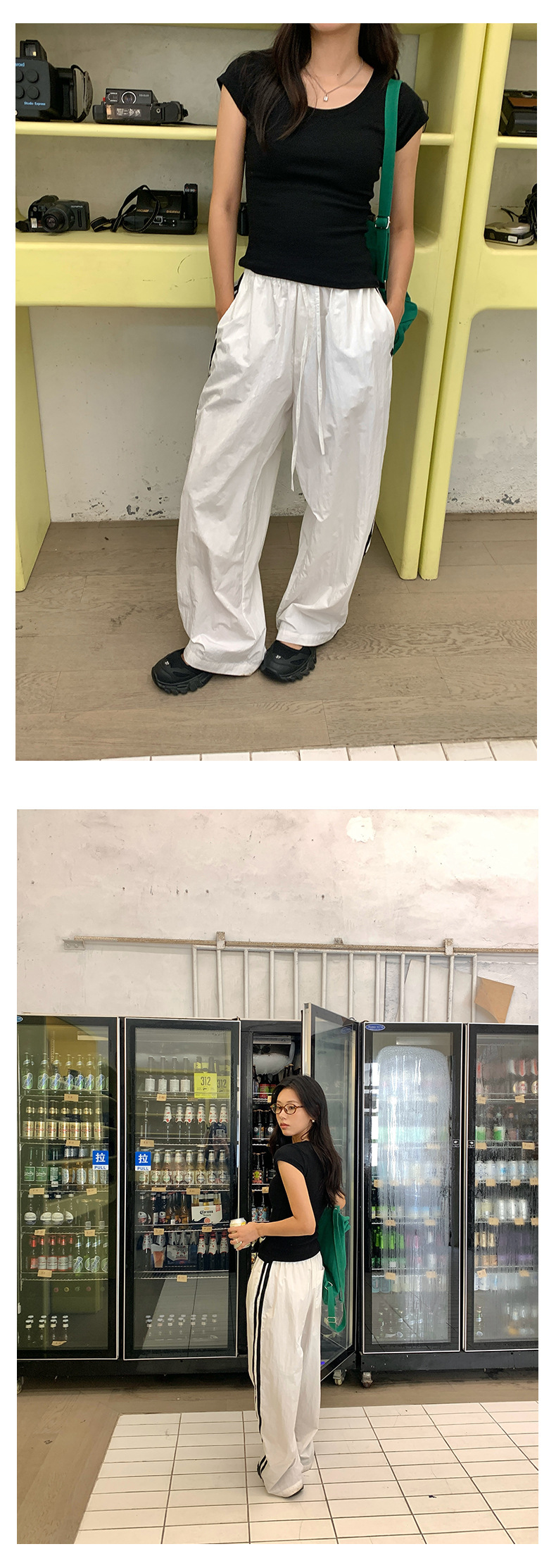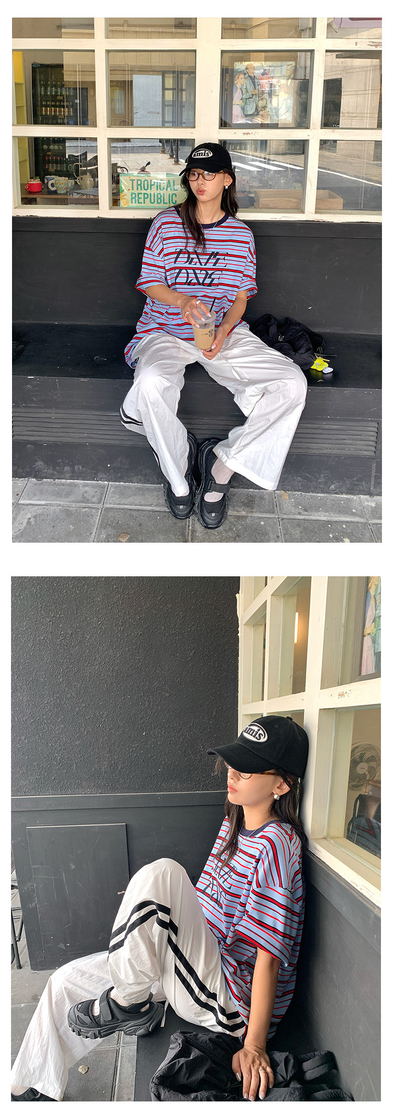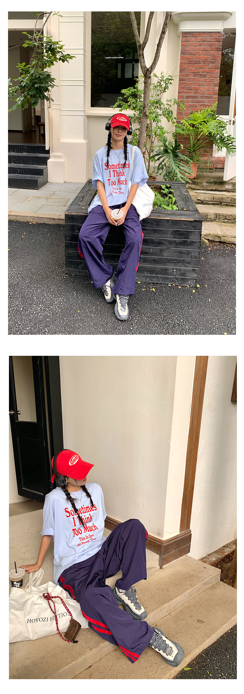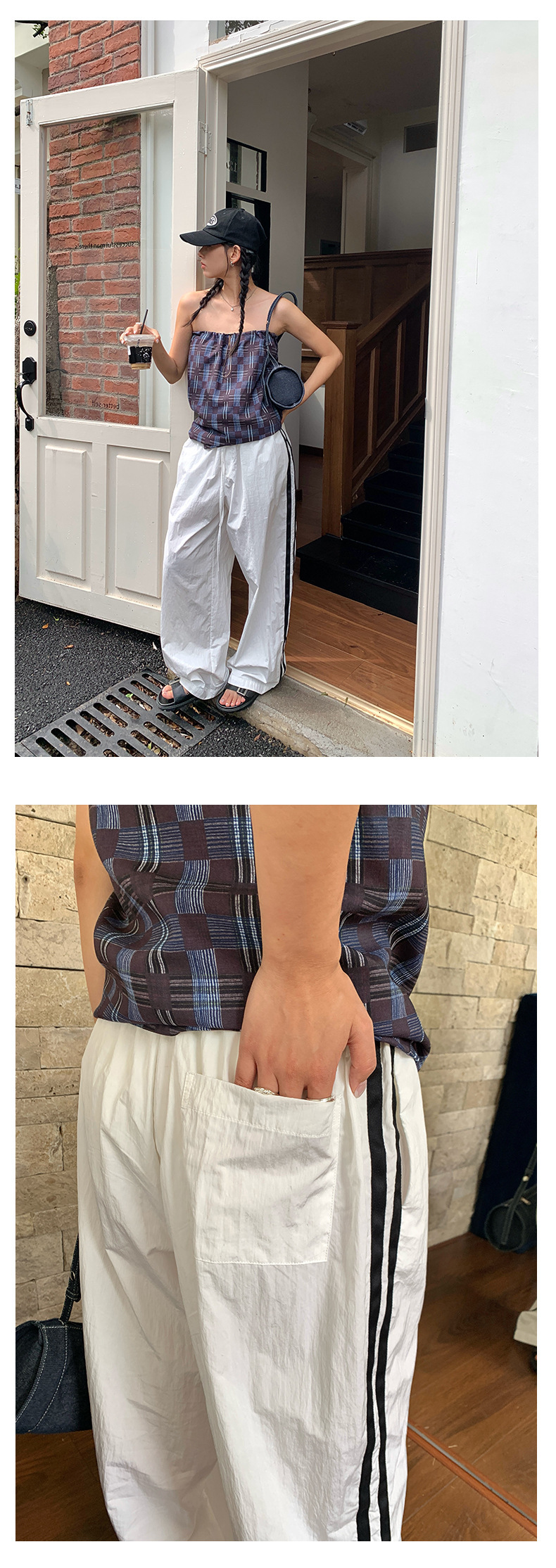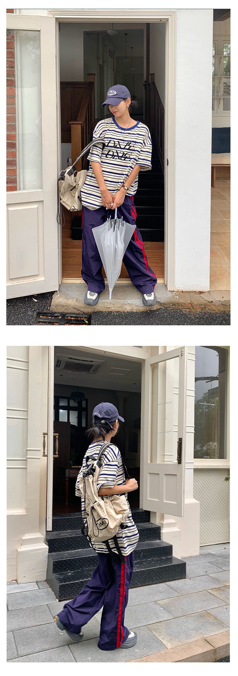 *o-ha-you*【FHZH1GB5020336】韓系撞色槓條休閒褲拖地褲蓬蓬呼吸褲奶酷空氣感闊腿褲-2色