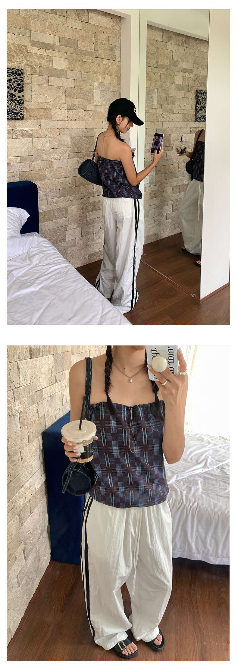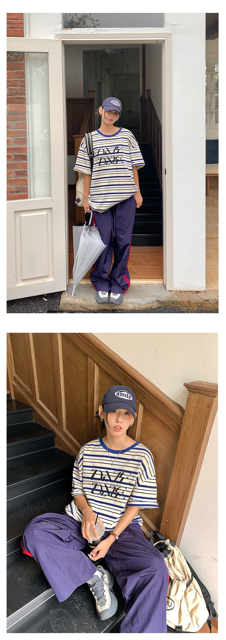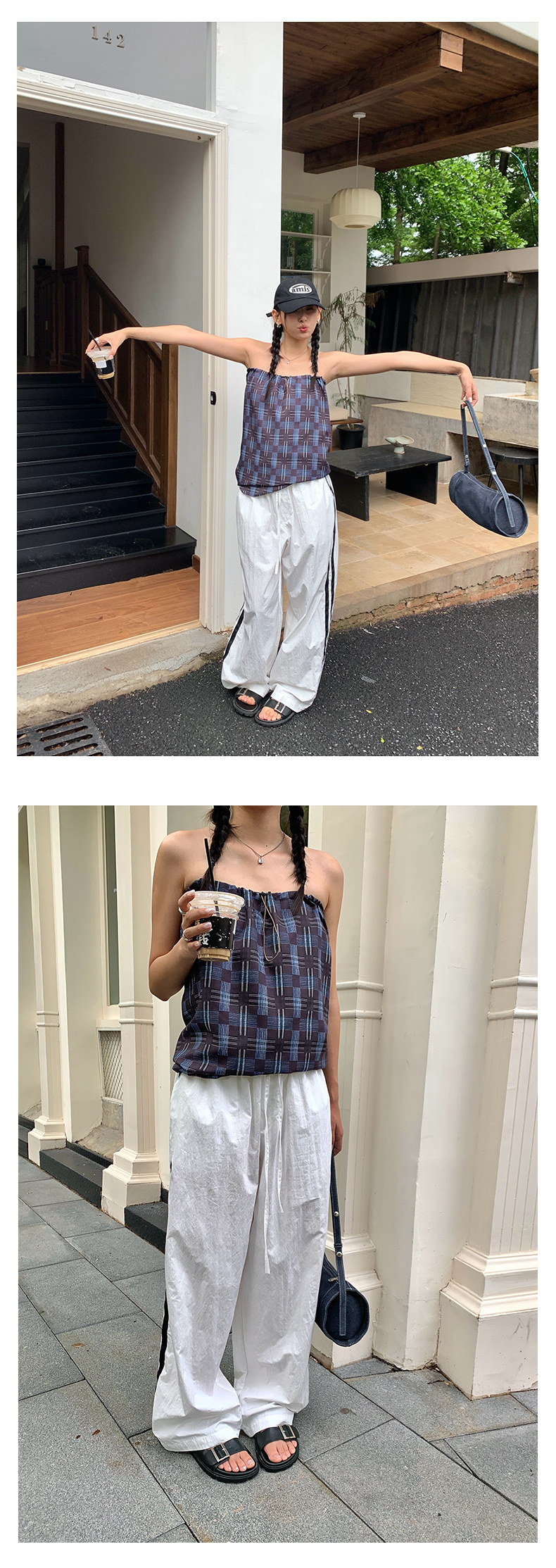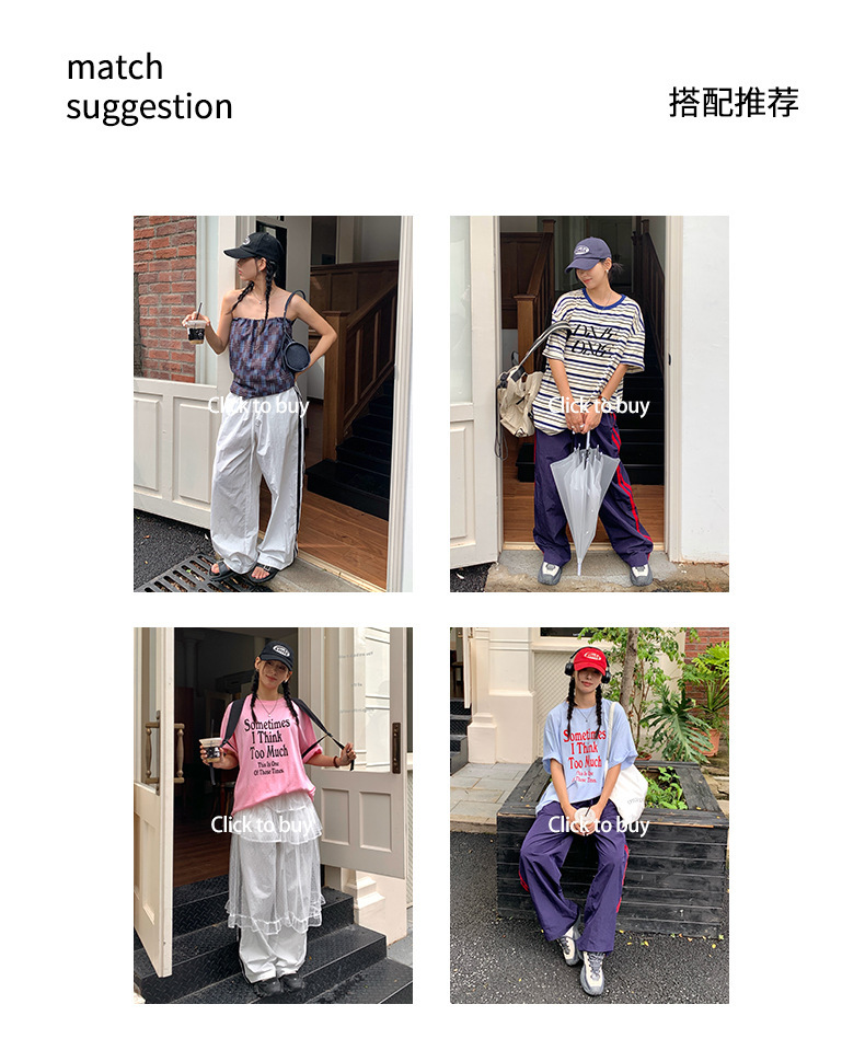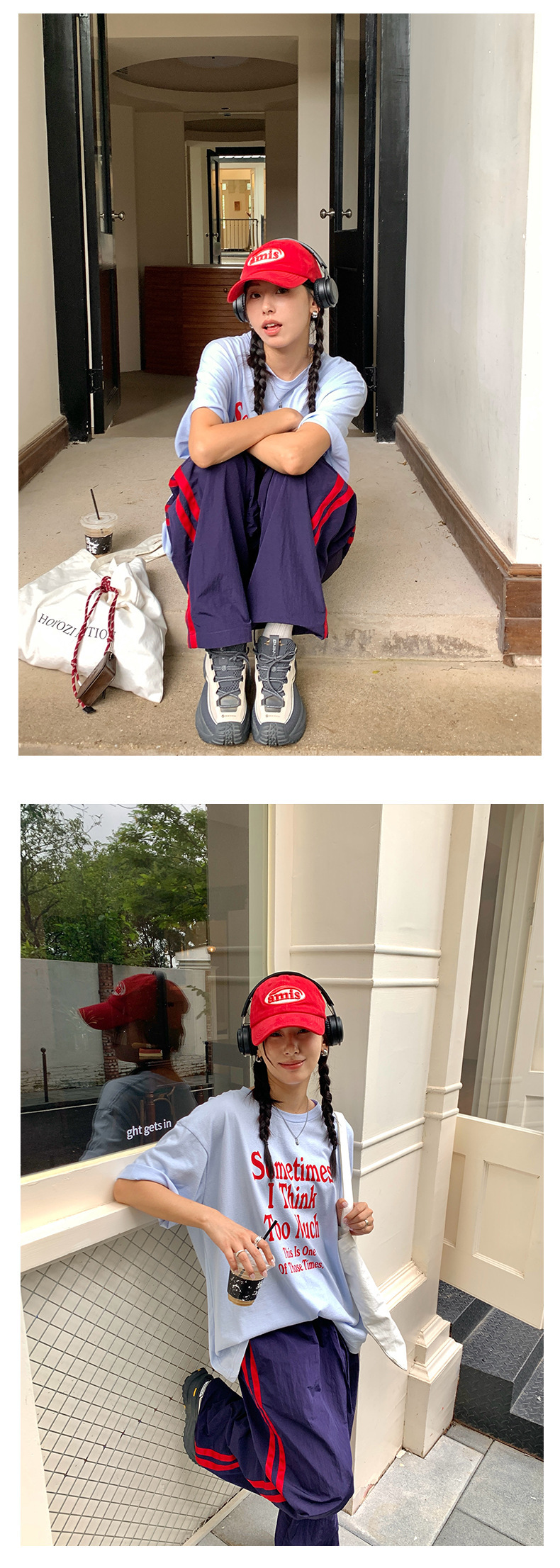 *o-ha-you*【FHZH1GB5020336】韓系撞色槓條休閒褲拖地褲蓬蓬呼吸褲奶酷空氣感闊腿褲-2色