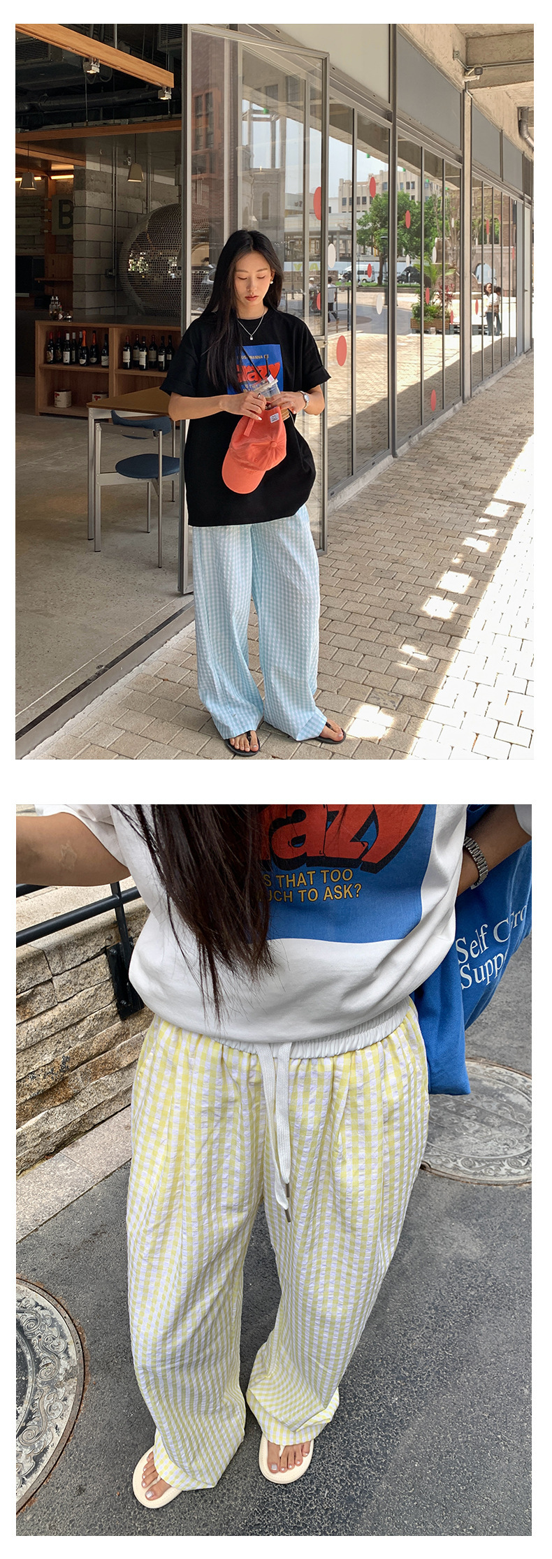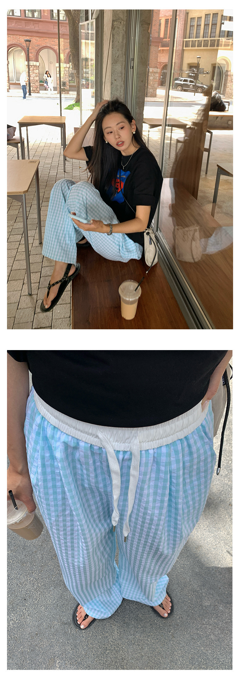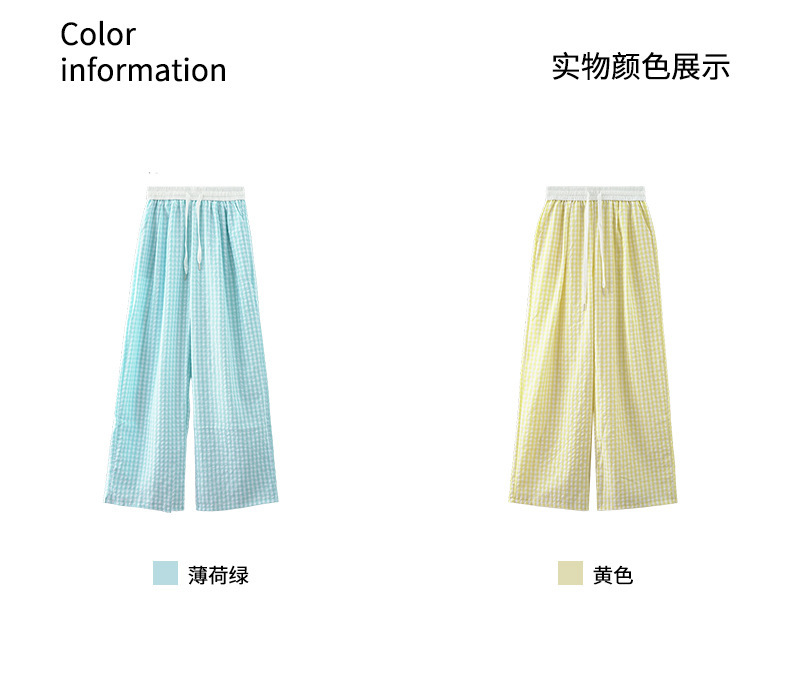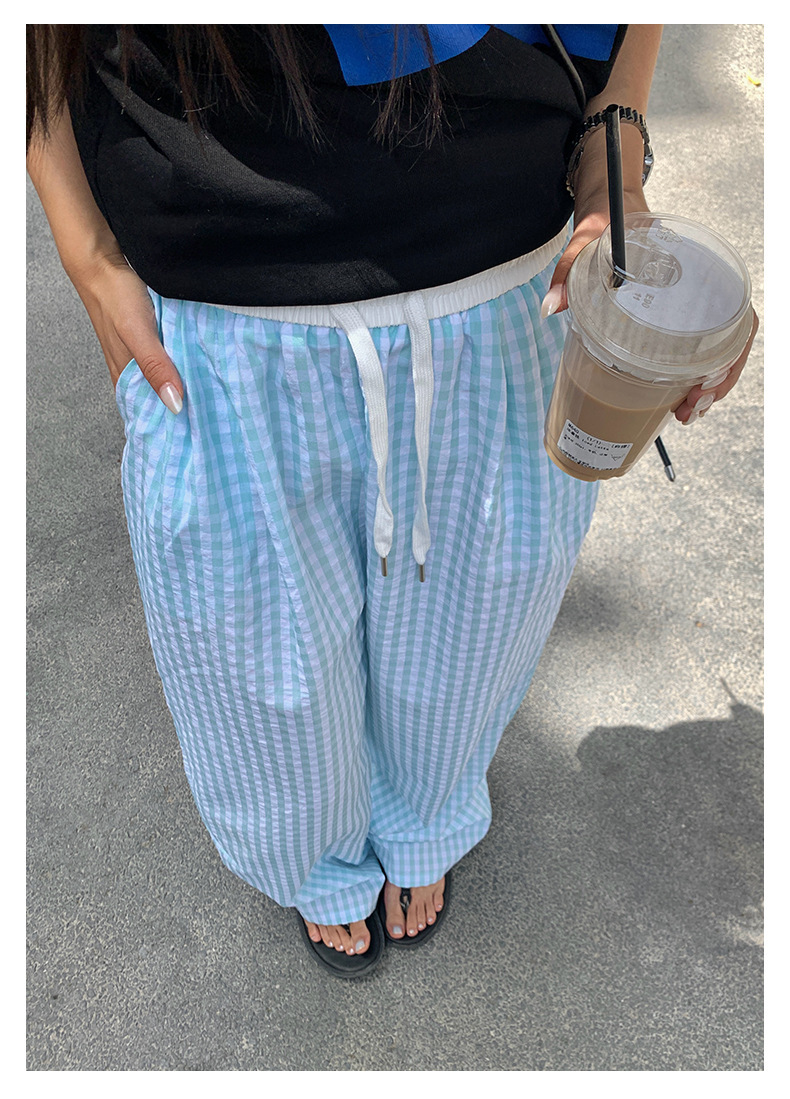 *o-ha-you*【FHZH1GB5020396】格紋抽繩精緻鬆緊腰垂墜感闊腿褲2025夏休閒舒適時尚-2色-如有需要請先諮詢