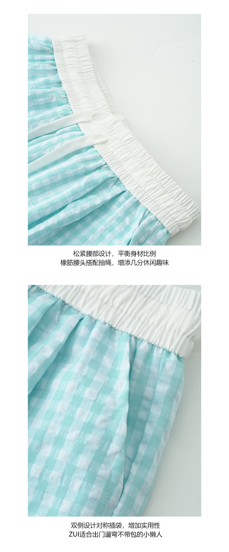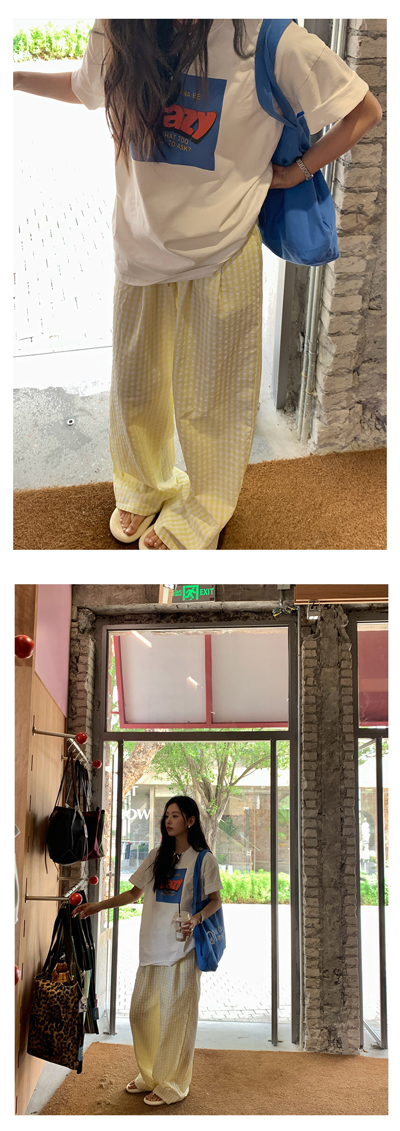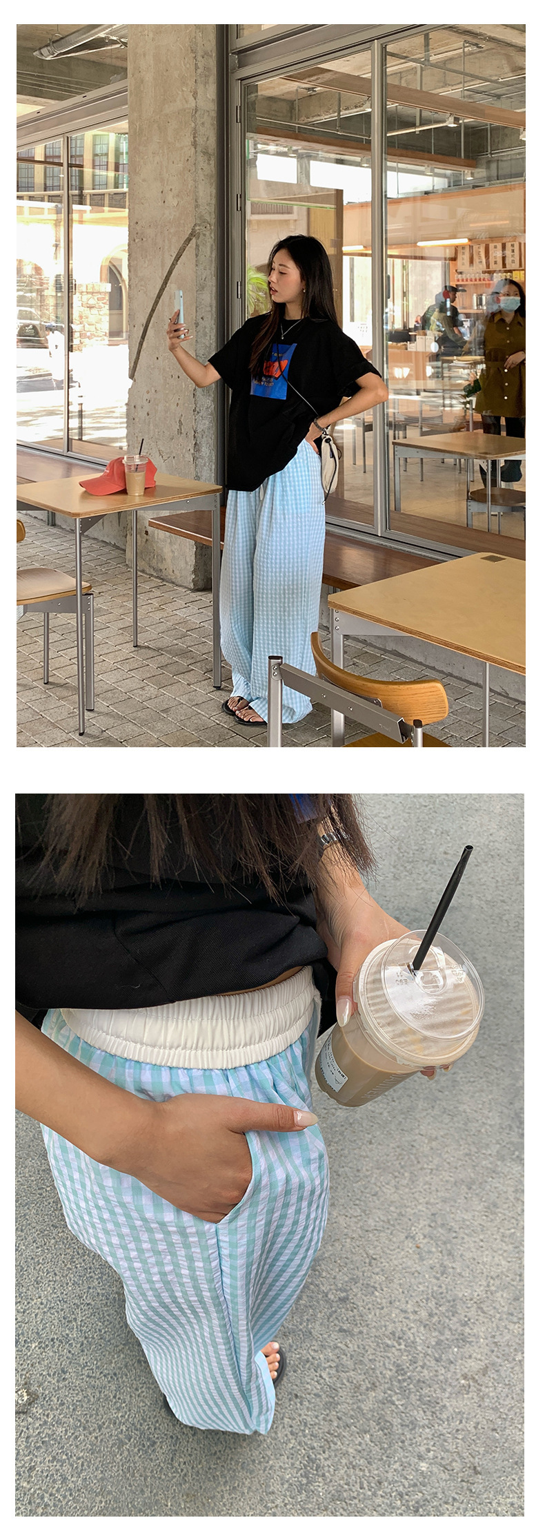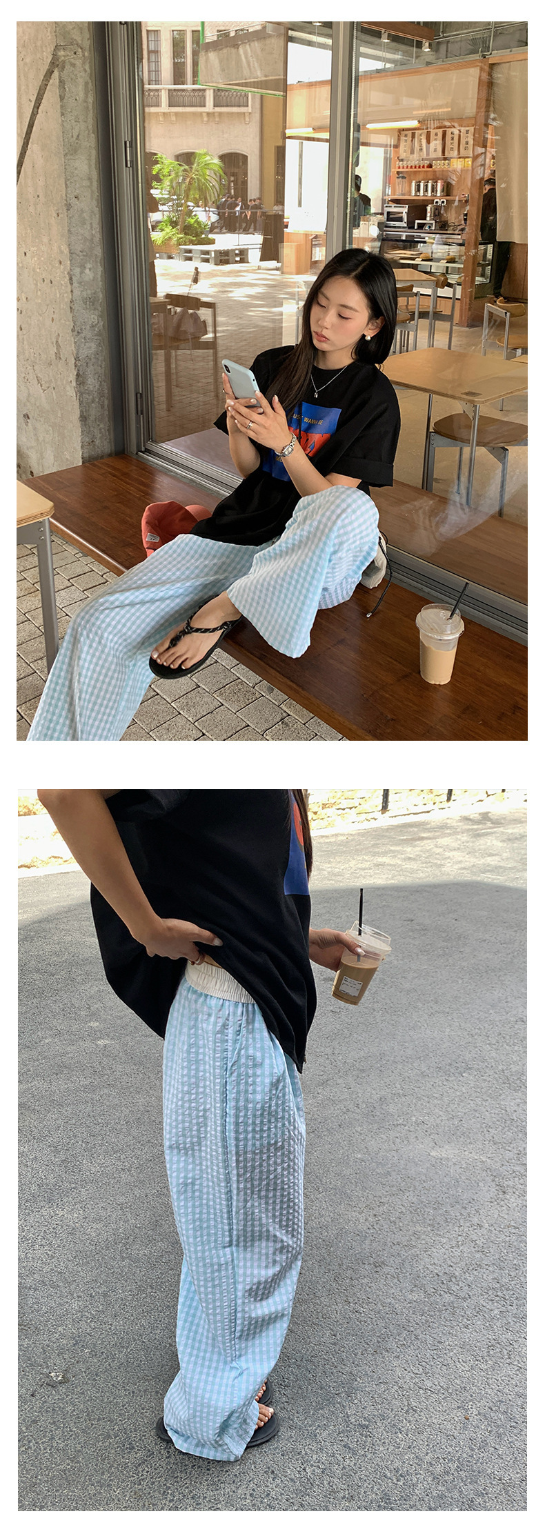*o-ha-you*【FHZH1GB5020396】格紋抽繩精緻鬆緊腰垂墜感闊腿褲2025夏休閒舒適時尚-2色-如有需要請先諮詢