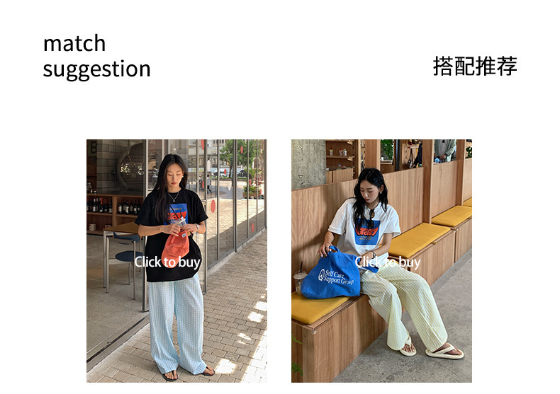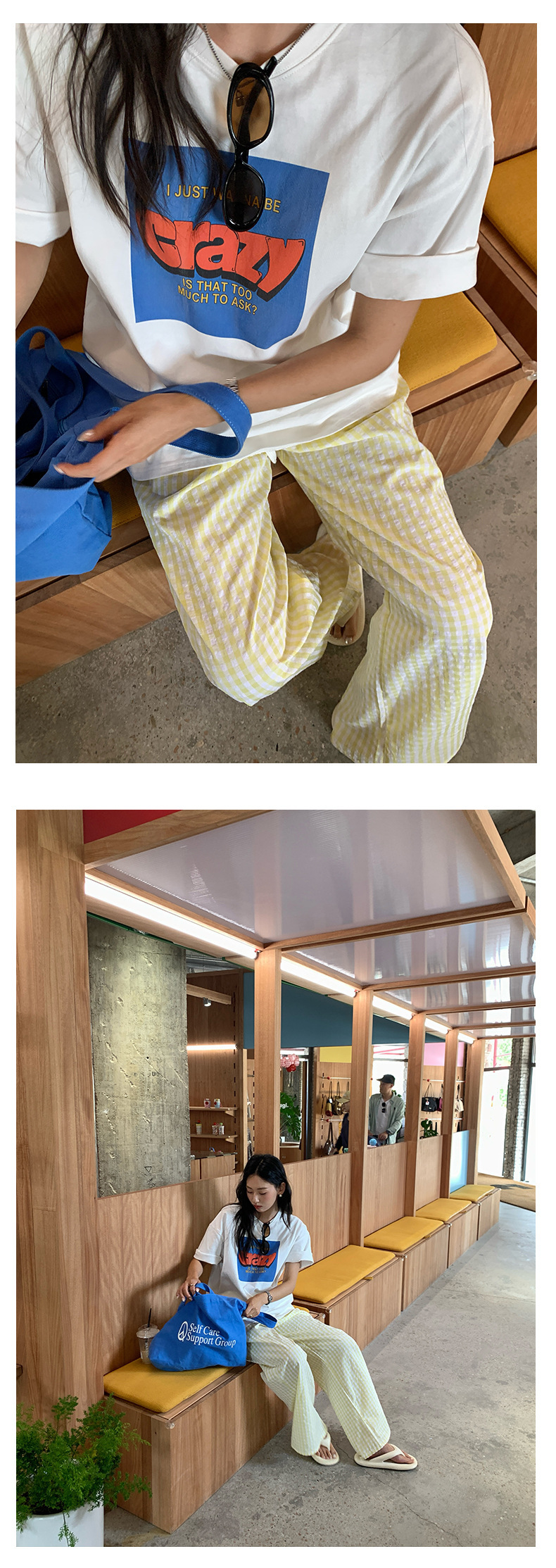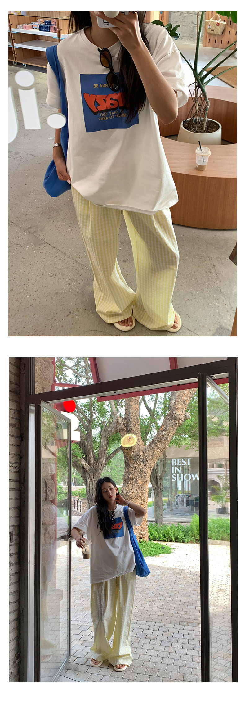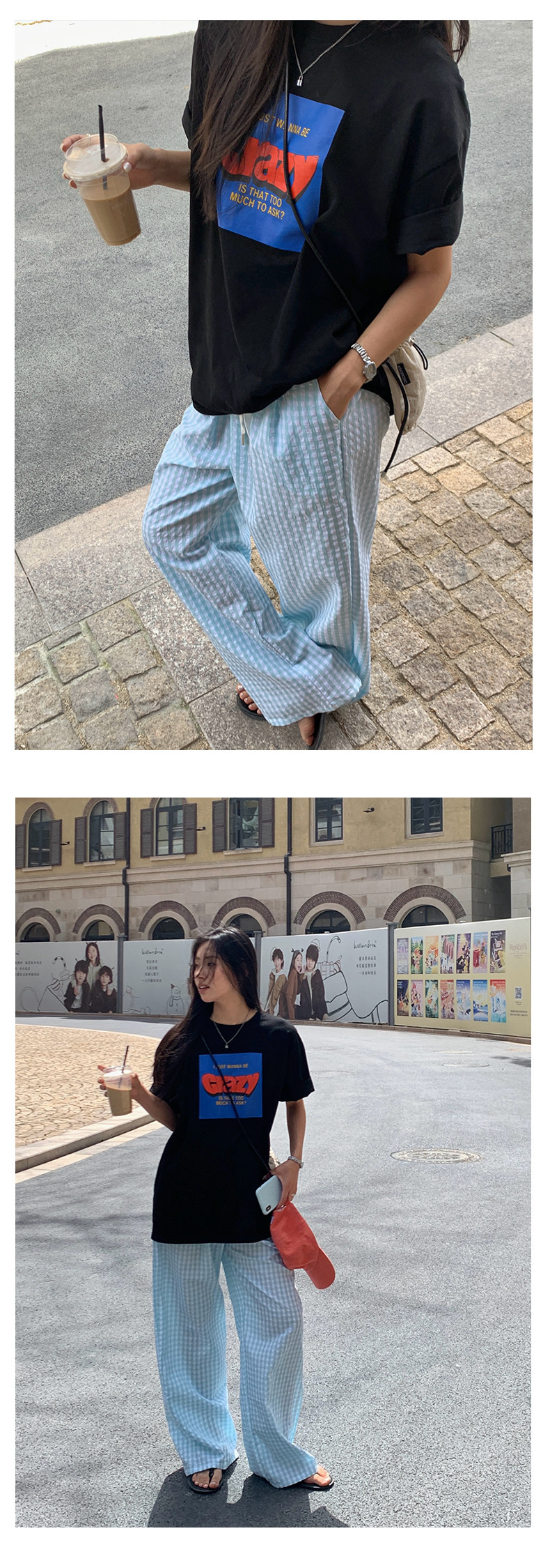 *o-ha-you*【FHZH1GB5020396】格紋抽繩精緻鬆緊腰垂墜感闊腿褲2025夏休閒舒適時尚-2色-如有需要請先諮詢