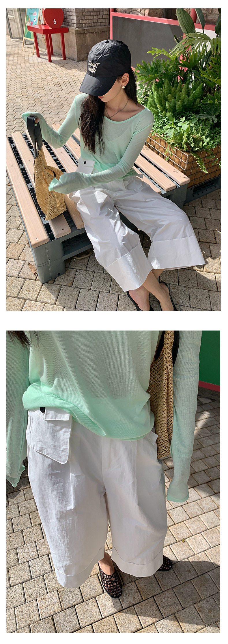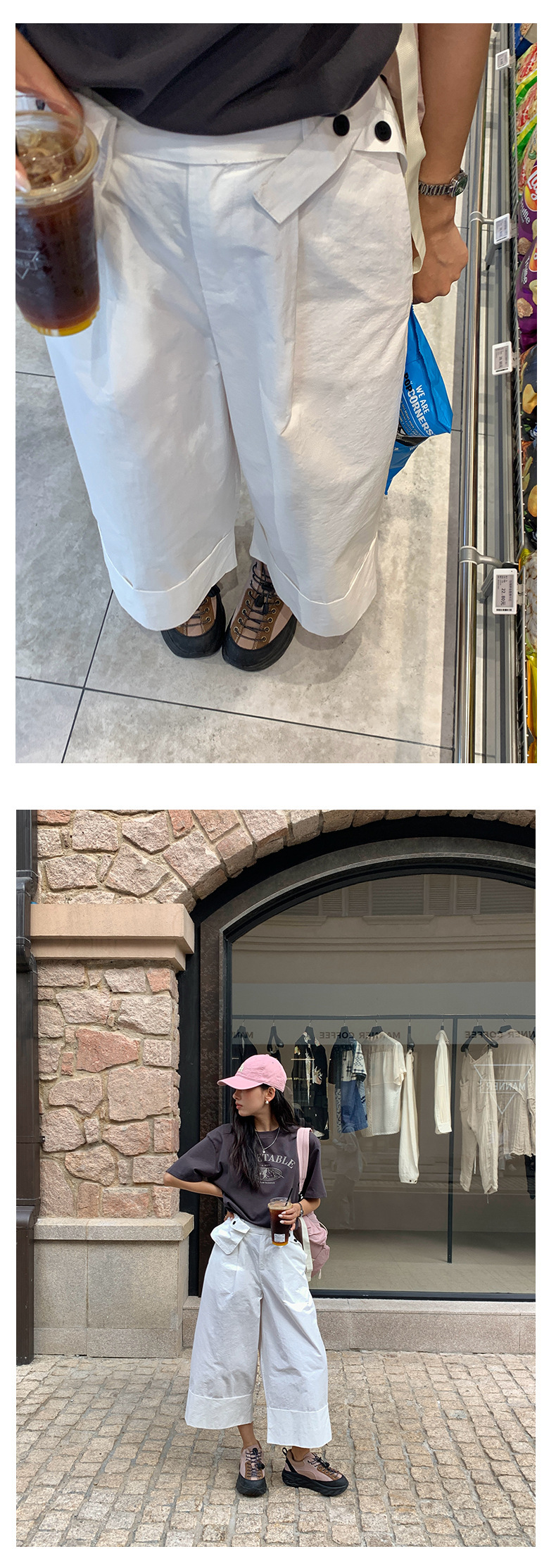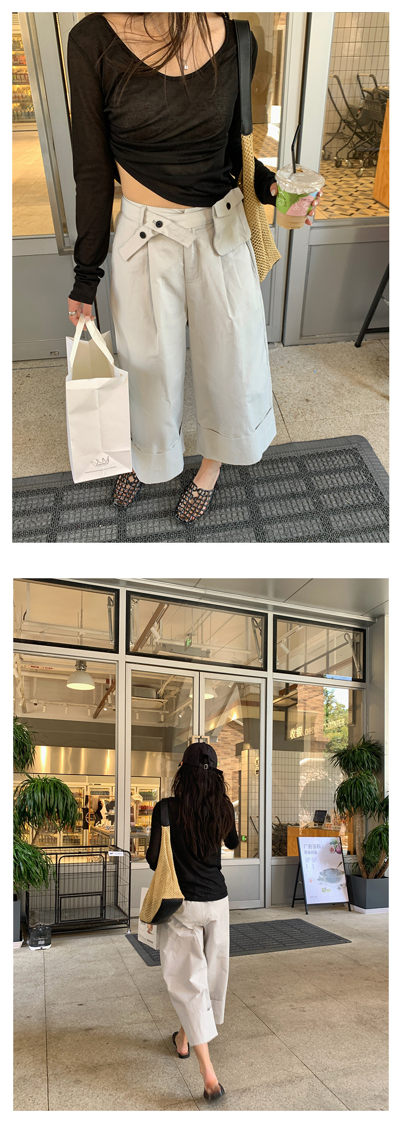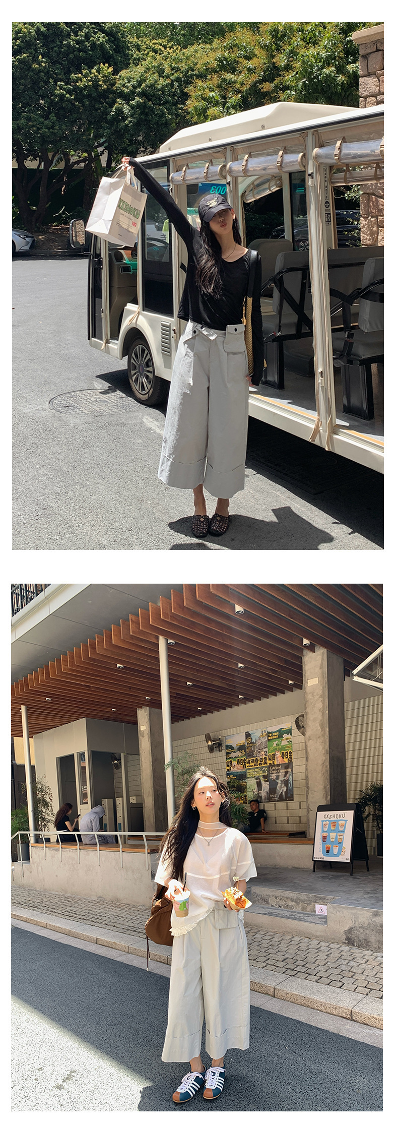 *o-ha-you*【FHZH1GB5020430】時尚腰包點綴高腰寬鬆休閒八分褲2025夏簡約大氣舒適-2色-如有需要請先諮詢