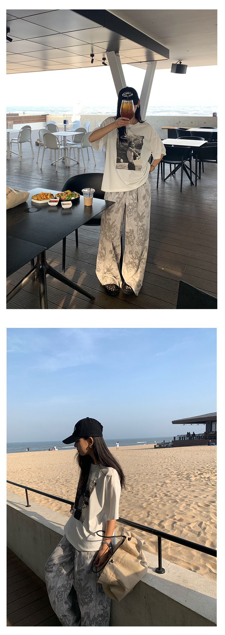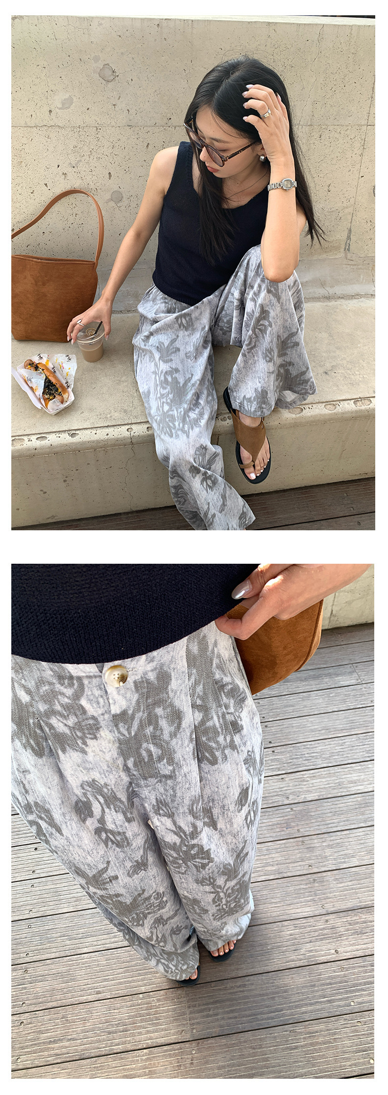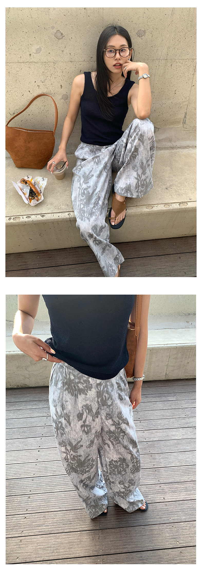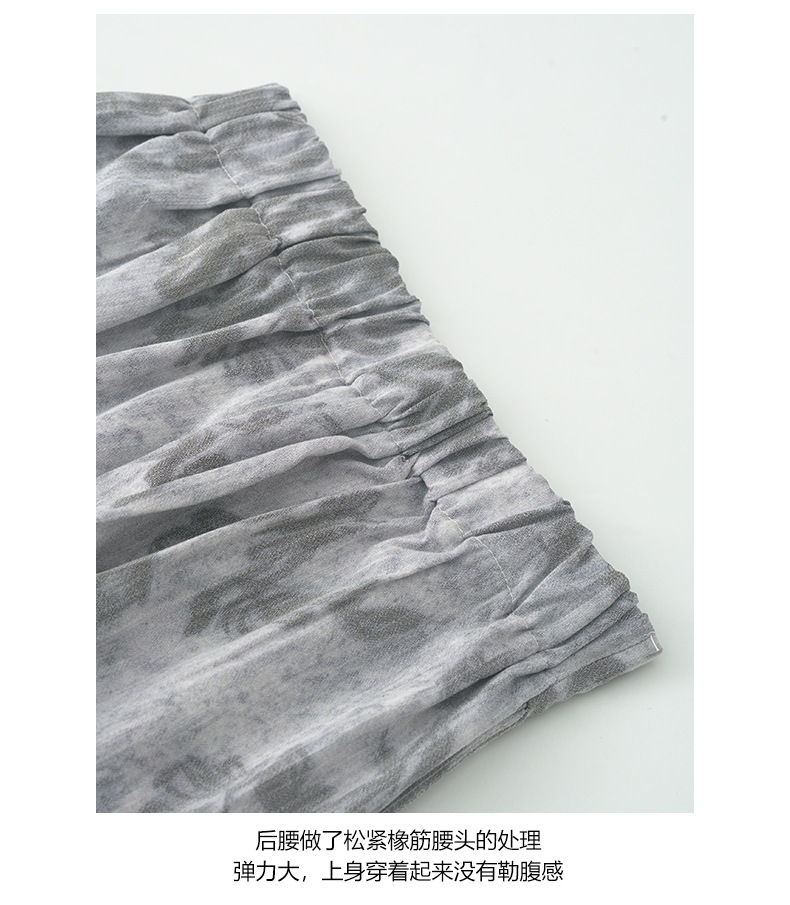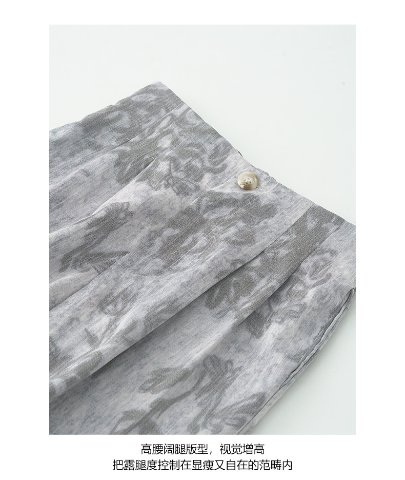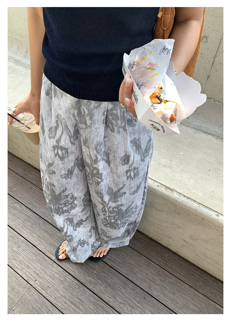*o-ha-you*【FHZH1GB5020621】韓系復古印花高級​​感闊腿褲高腰寬鬆垂感松馳拖地褲